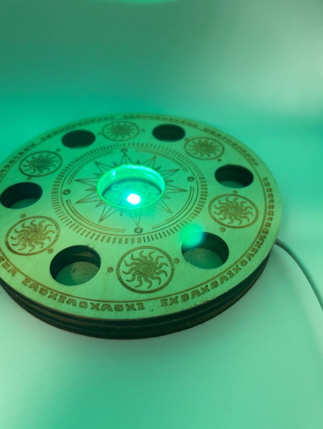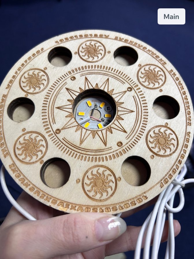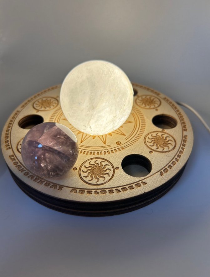 USB connection (plug not included) with a central sphere up lighter and 6 surrounding sphere holders.