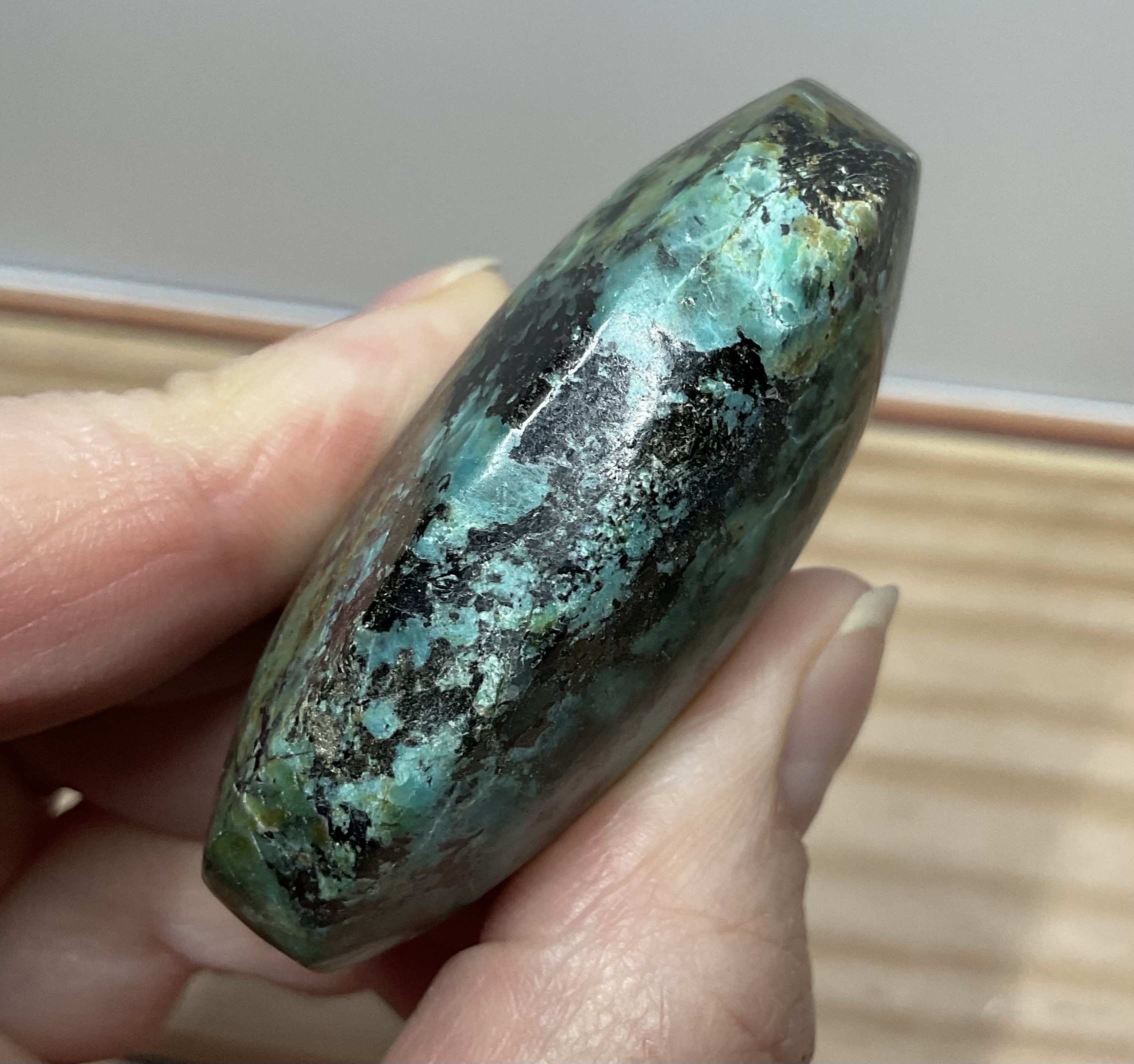 African Turquoise is a stone of self-growth and transformation. It gives one the courage and strength to follow their heart’s desires. It opens the mind to new ideas and possibilities, and renews one’s spirit, energy, and zest for life. It activates the third eye chakra, helping one receive