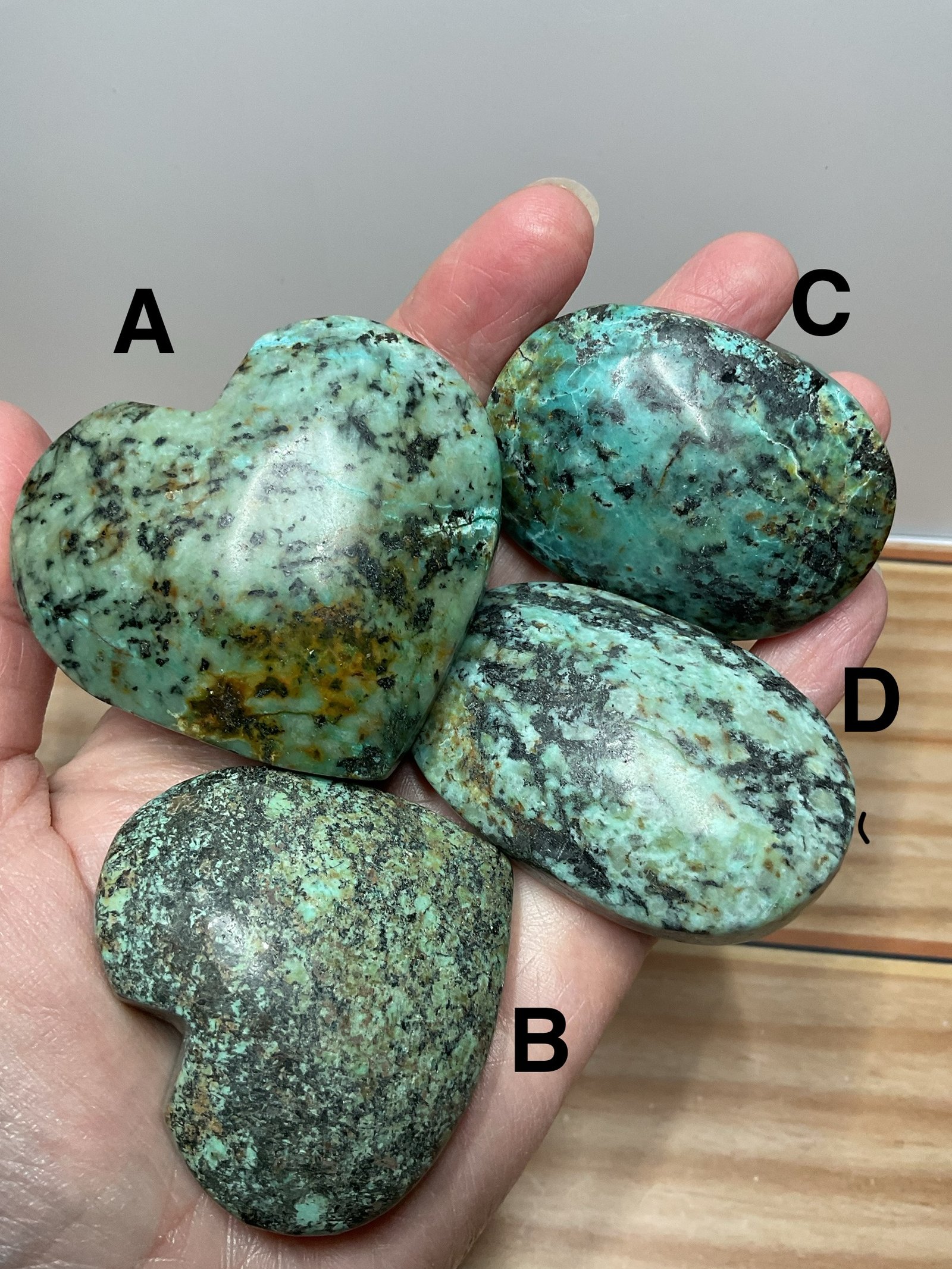 | Option | Heart A, Heart B, Palm stone C, Palm stone D |