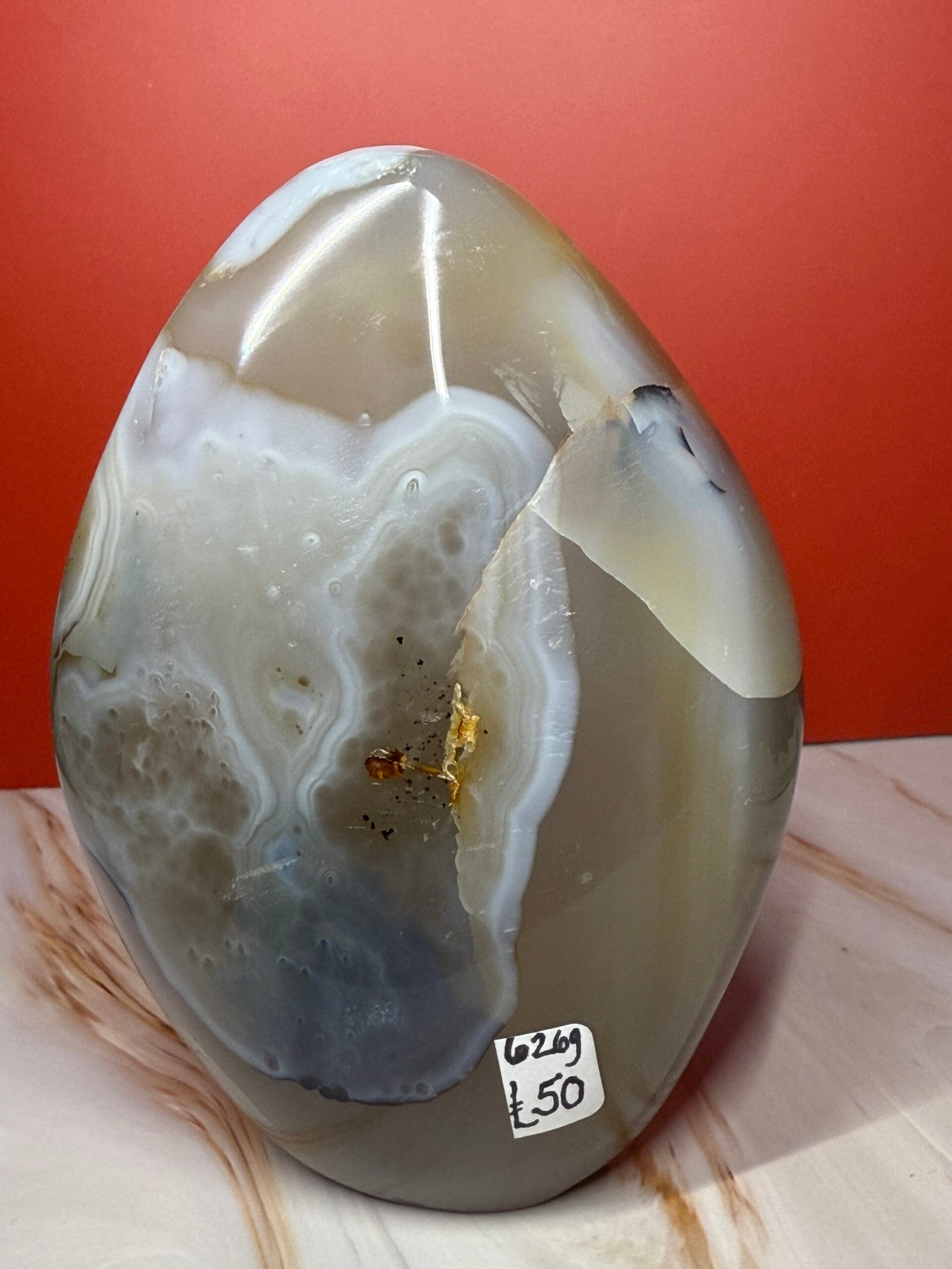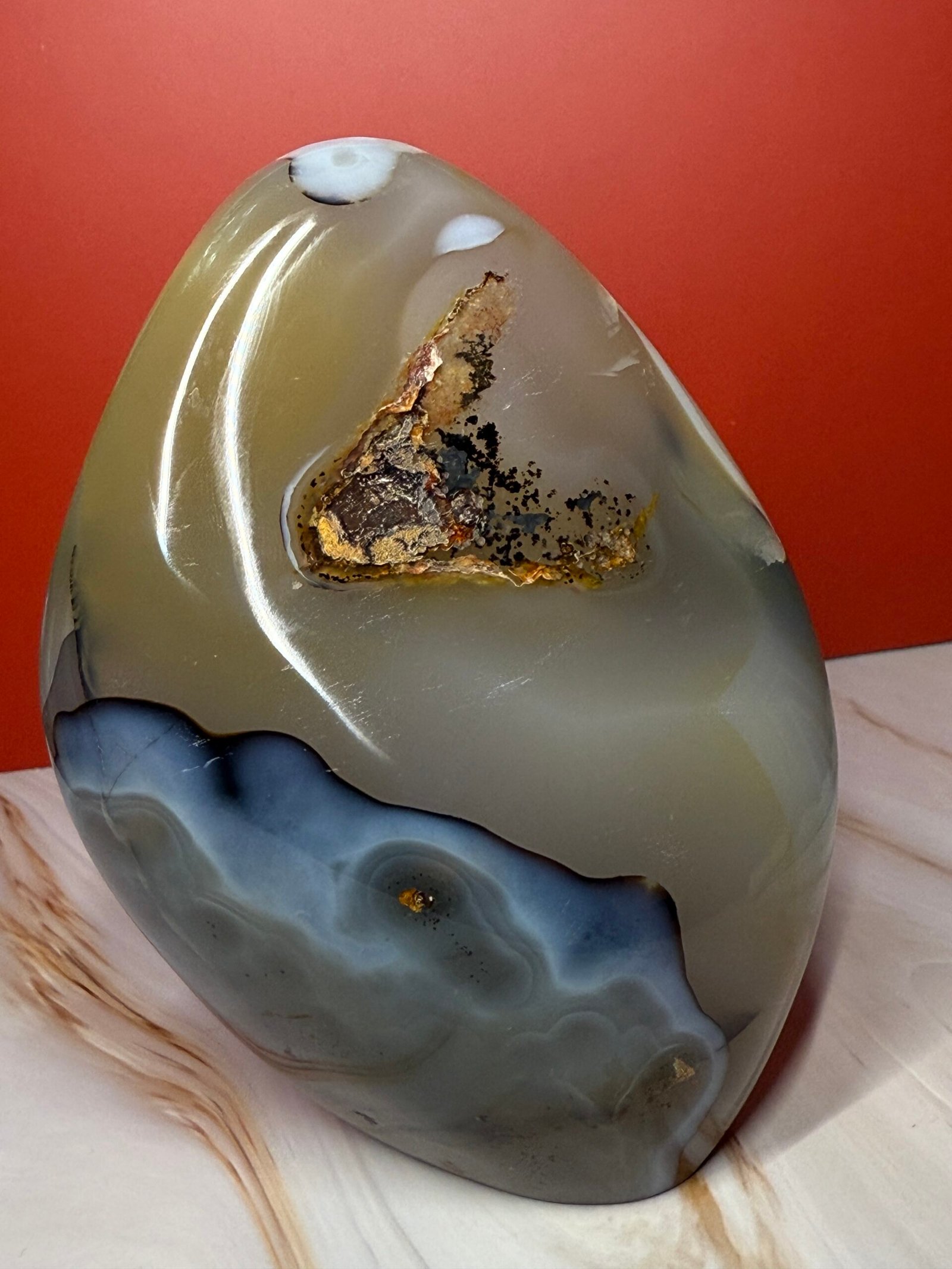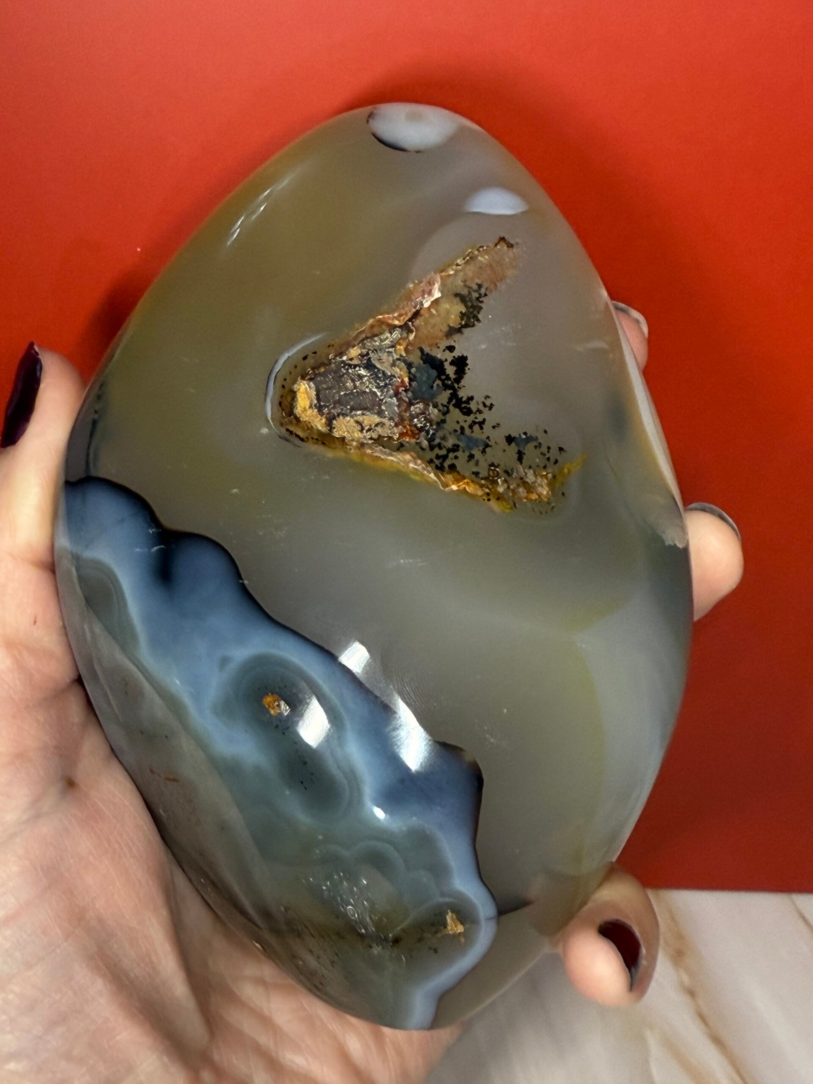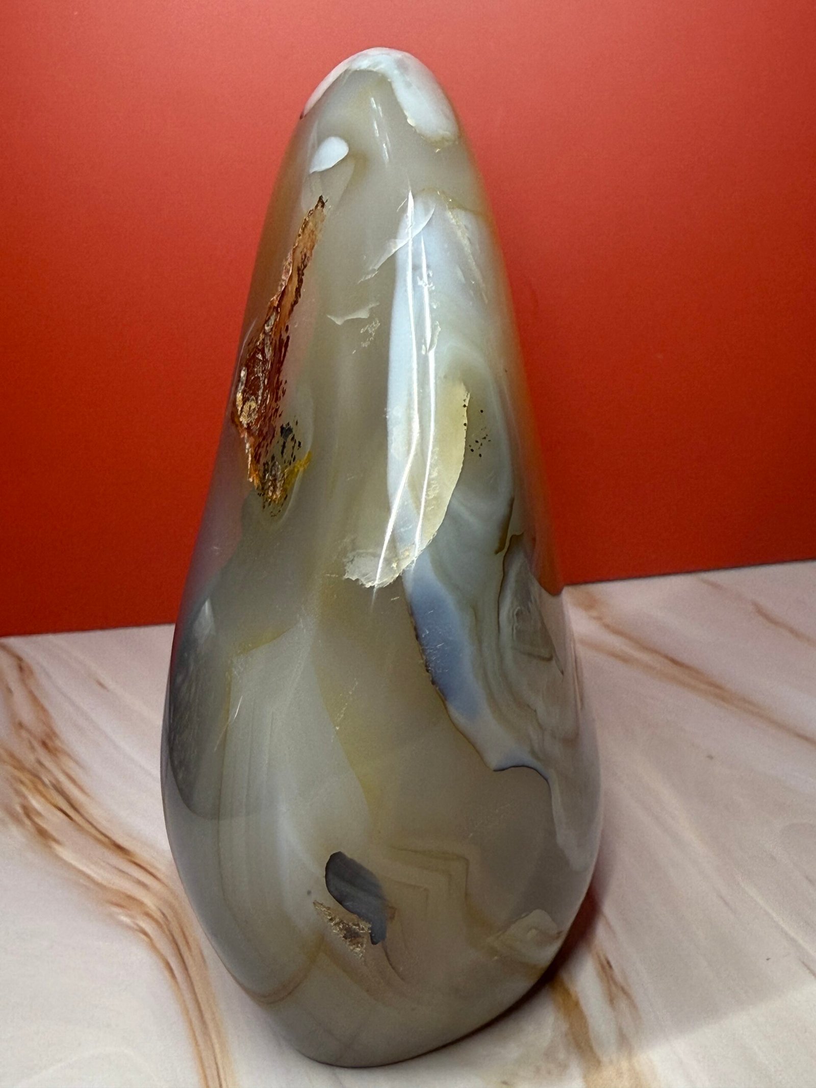 Agate has a soothing and calming energy. It works slowly, but brings great strength. It provides emotional and energetic support, making it beneficial to work with during times of stress. It is a stone of courage and