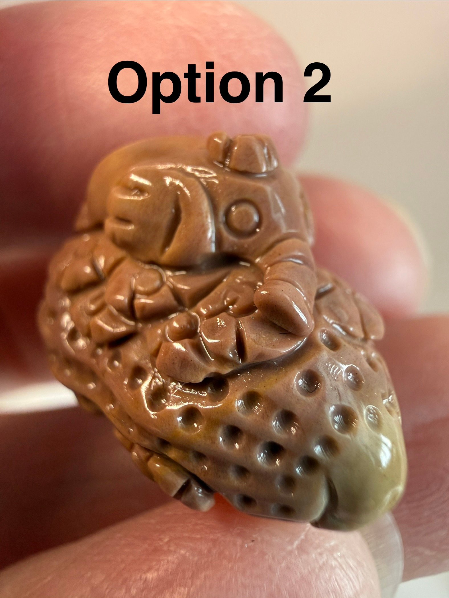 These beautifully carved little elephants lying on a peanut are adorable and would make an ideal gift.
