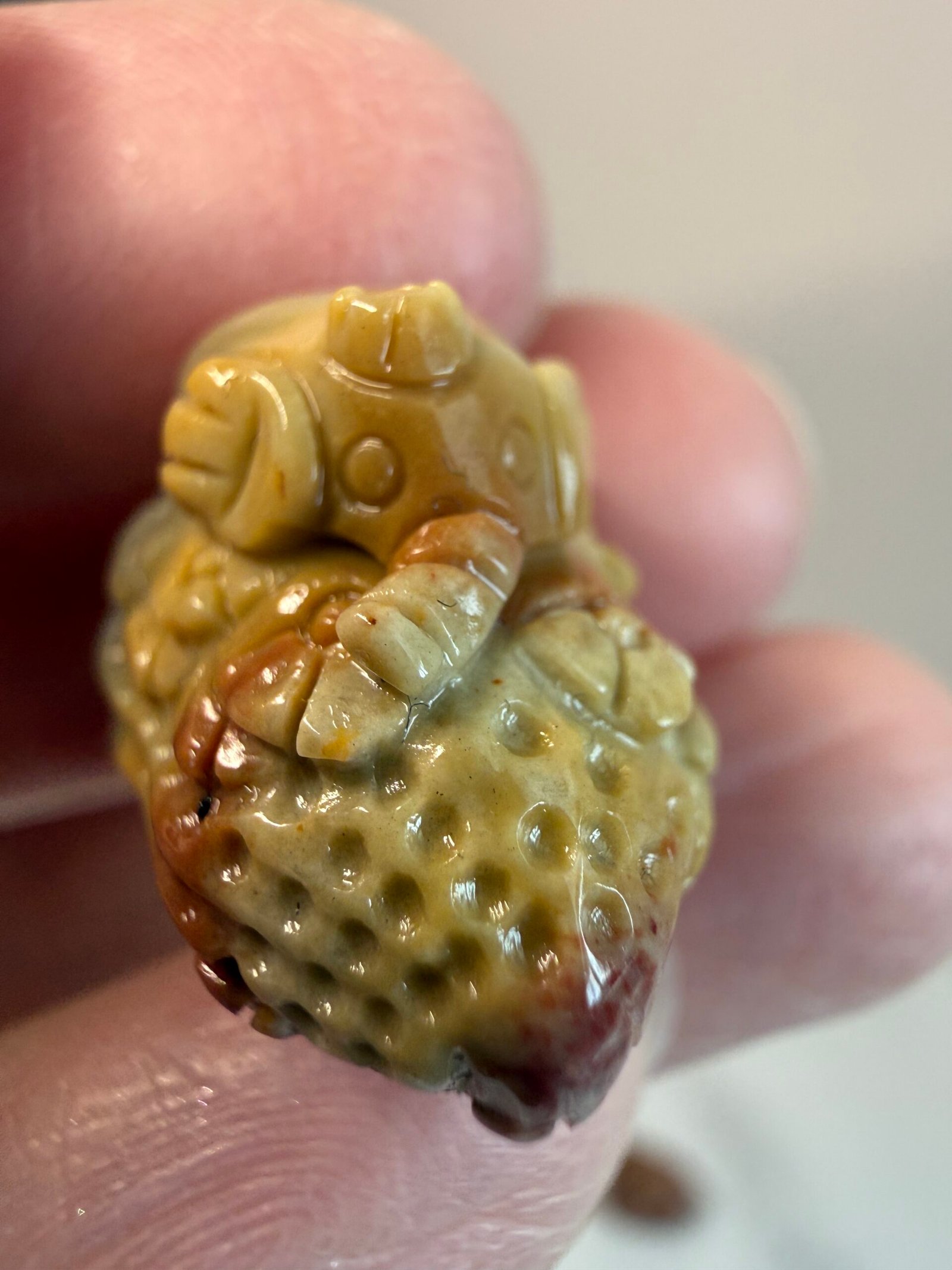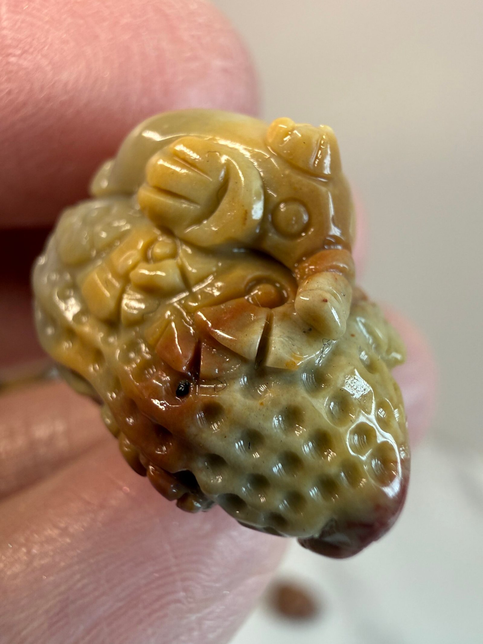 A Chinese elephant on or with a peanut symbolises a wish for abundant prosperity, good fortune, and long-lasting health. Combining the auspicious elephant (representing strength and wisdom) with the peanut (often called “longevity fruit” or “flowering life”) brings together two powerful symbols of wealth and joy in Chinese culture.