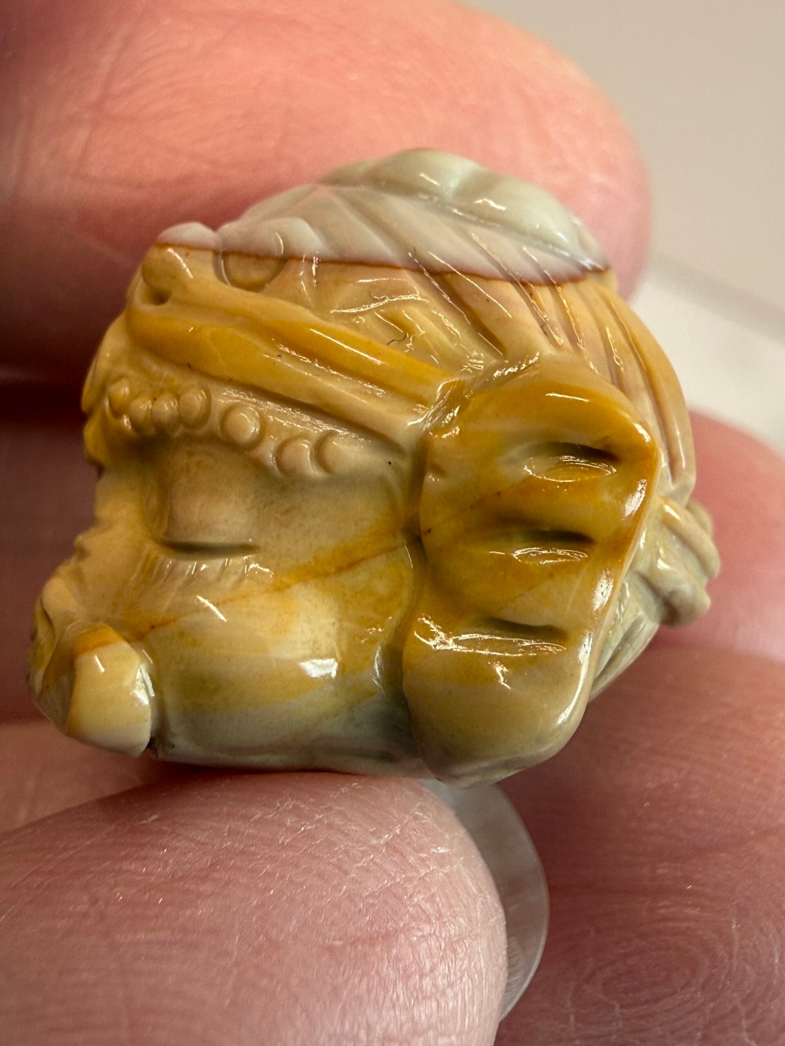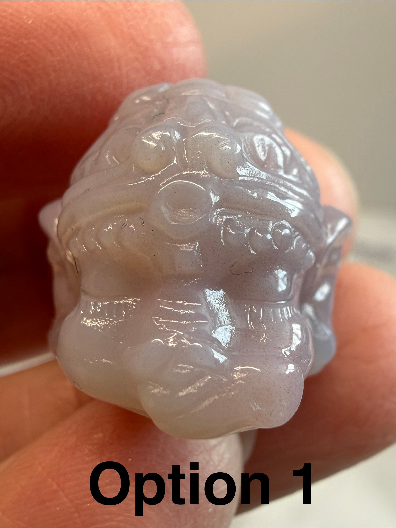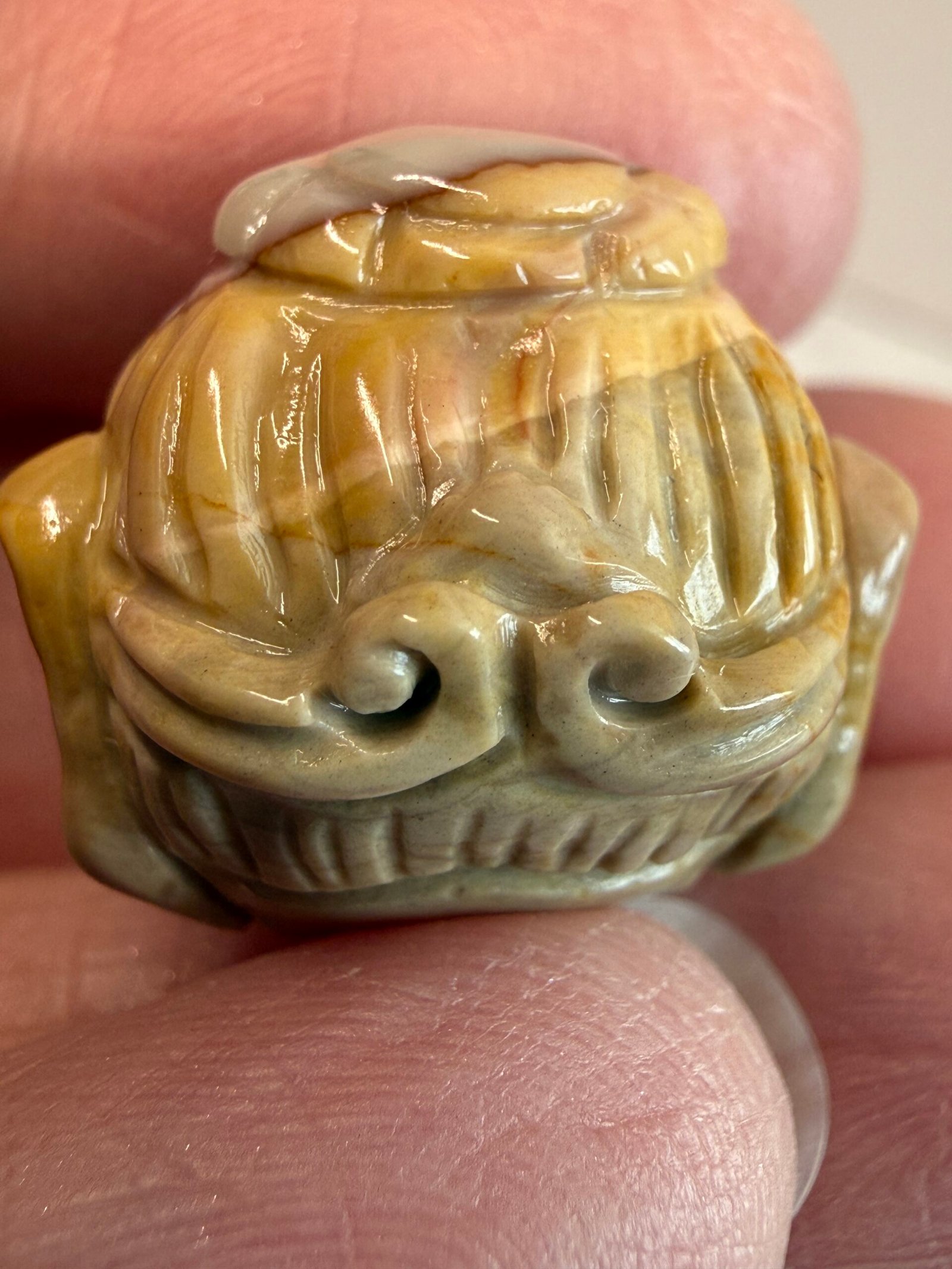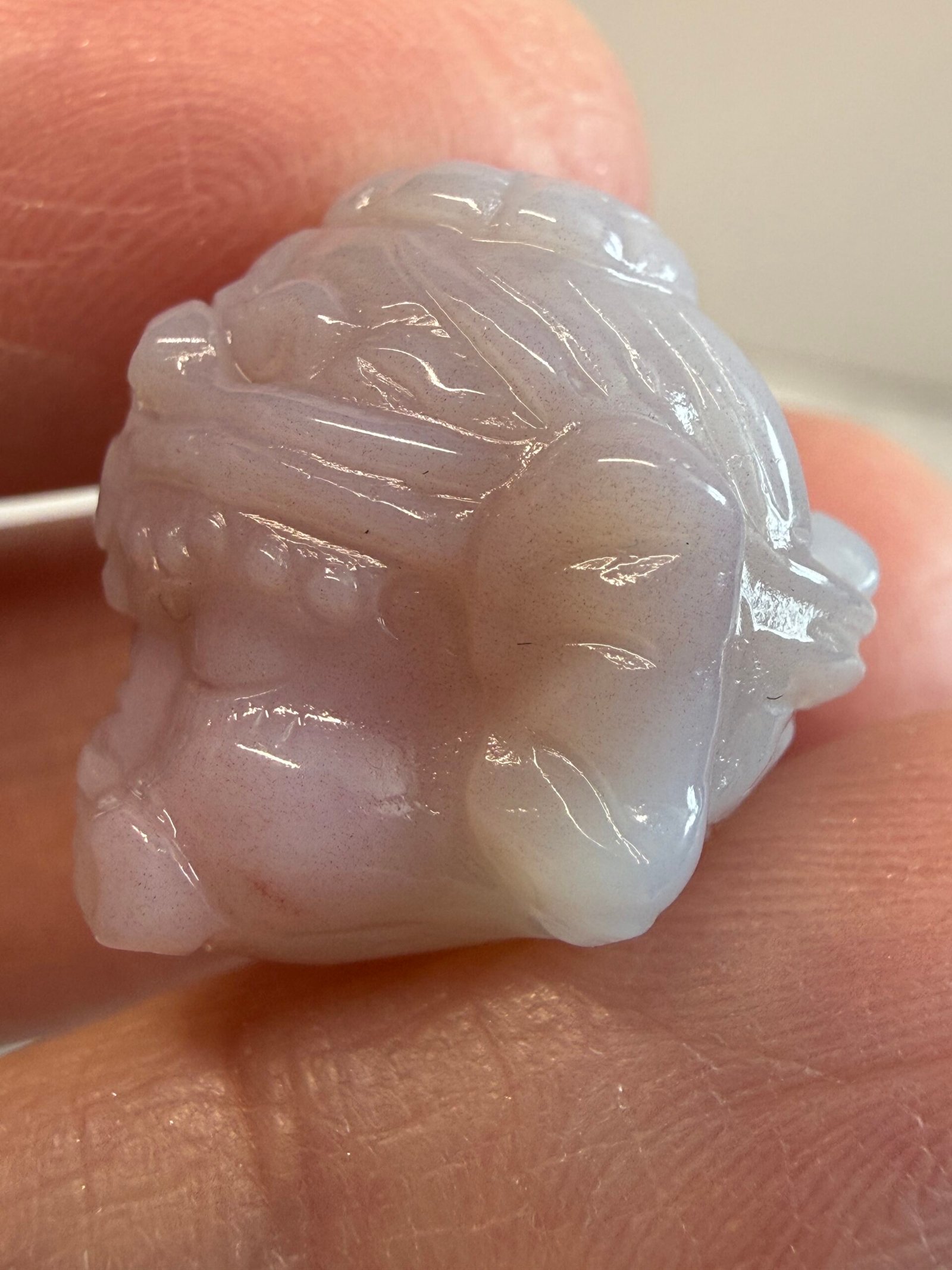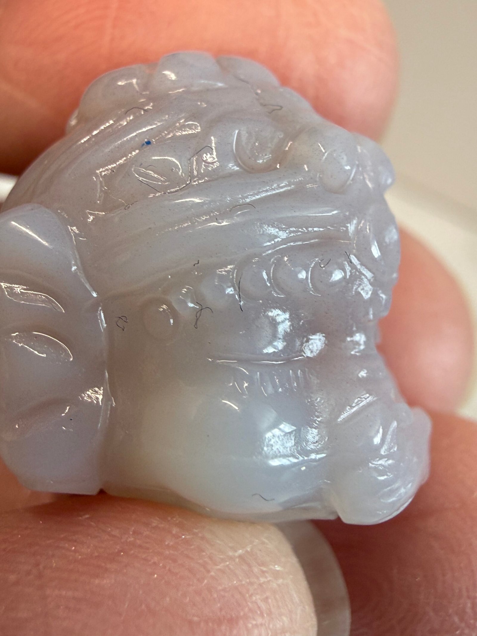These exquisitely carved mini Alashan Agate Ganesh head carvings have so much detail. The tiny details are amazing, down to the Ruyi carving on the back of their heads.