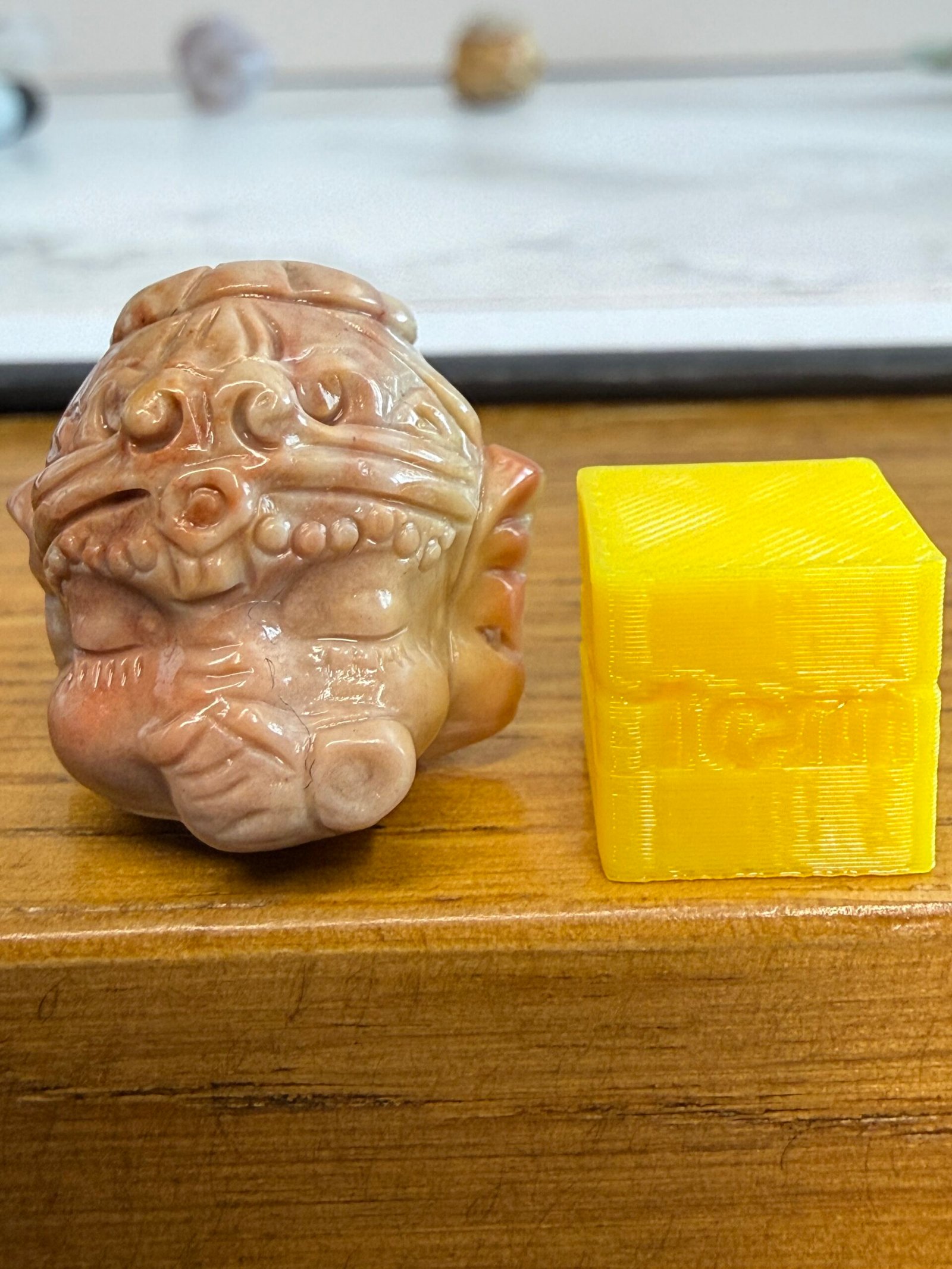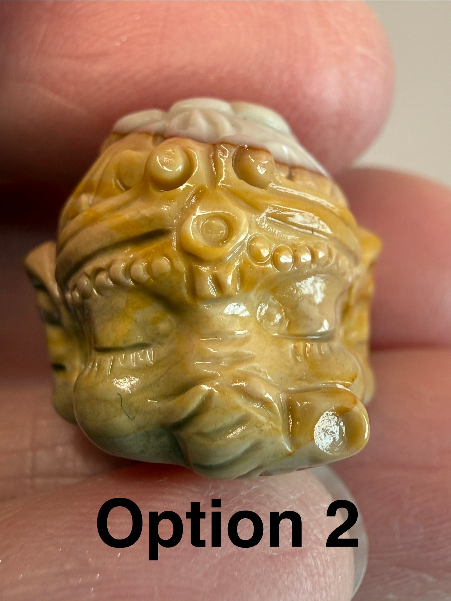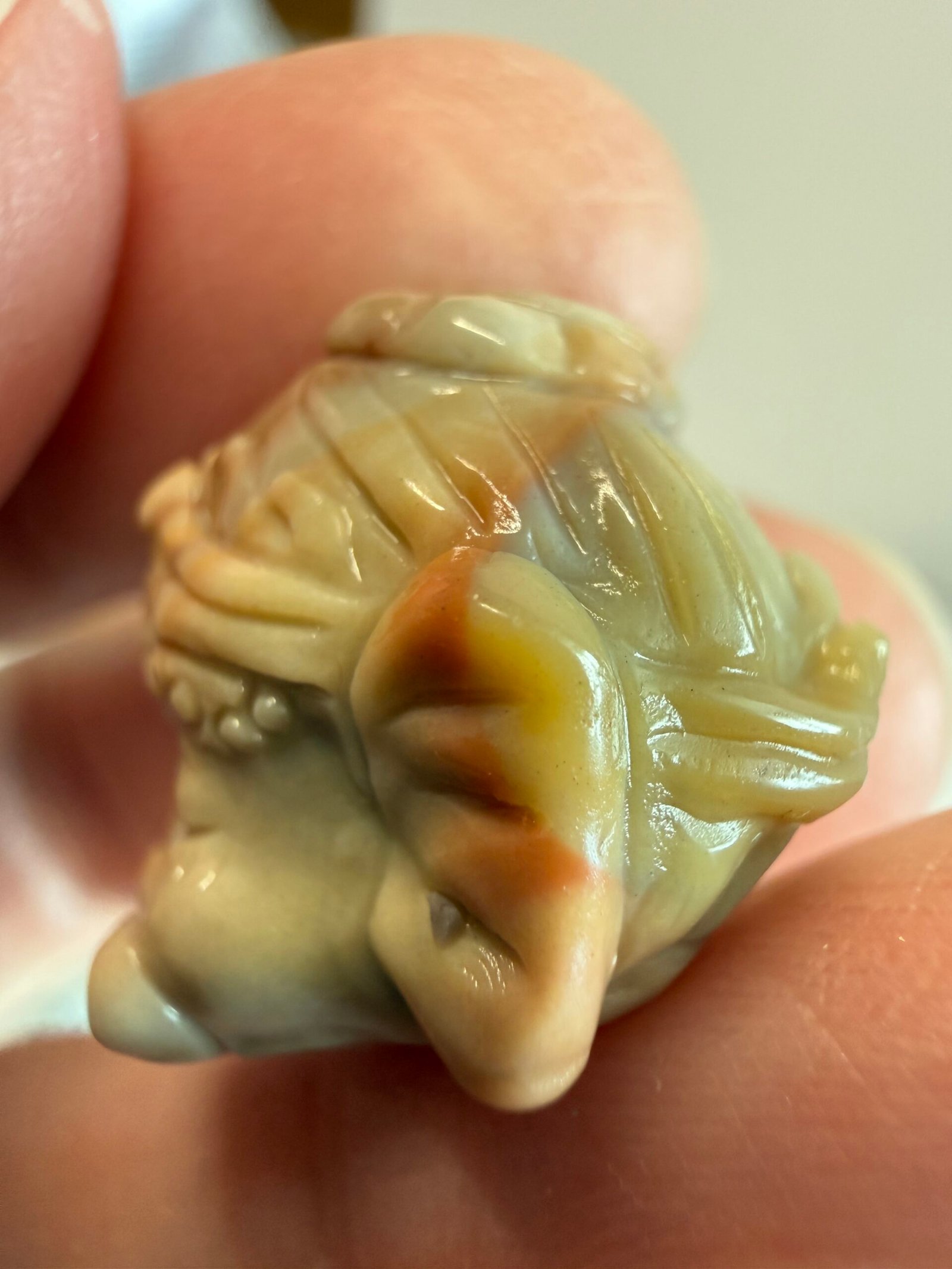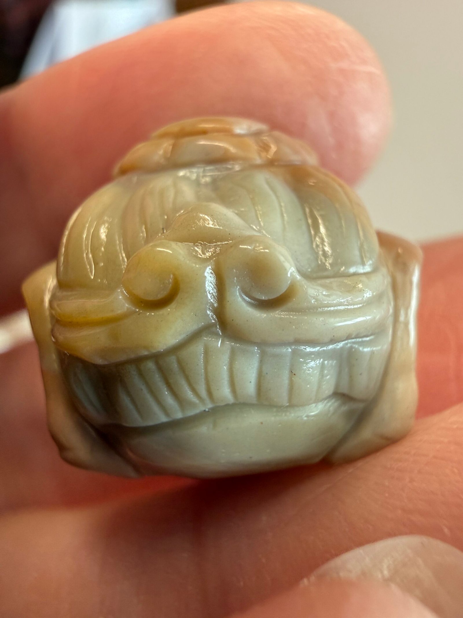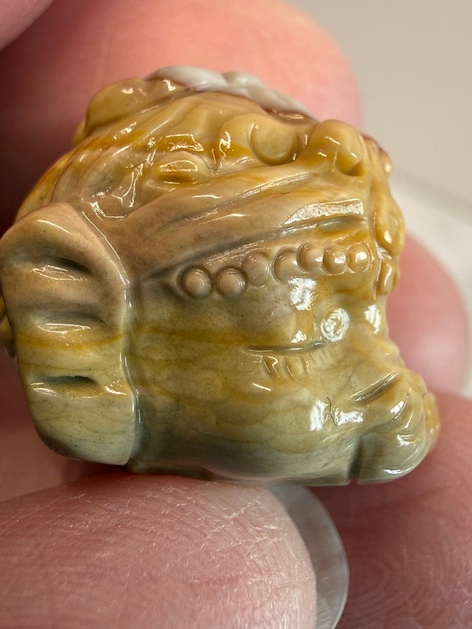 These exquisitely carved mini Alashan Agate Ganesh head carvings have so much detail. The tiny details are amazing, down to the Ruyi carving on the back of their heads.