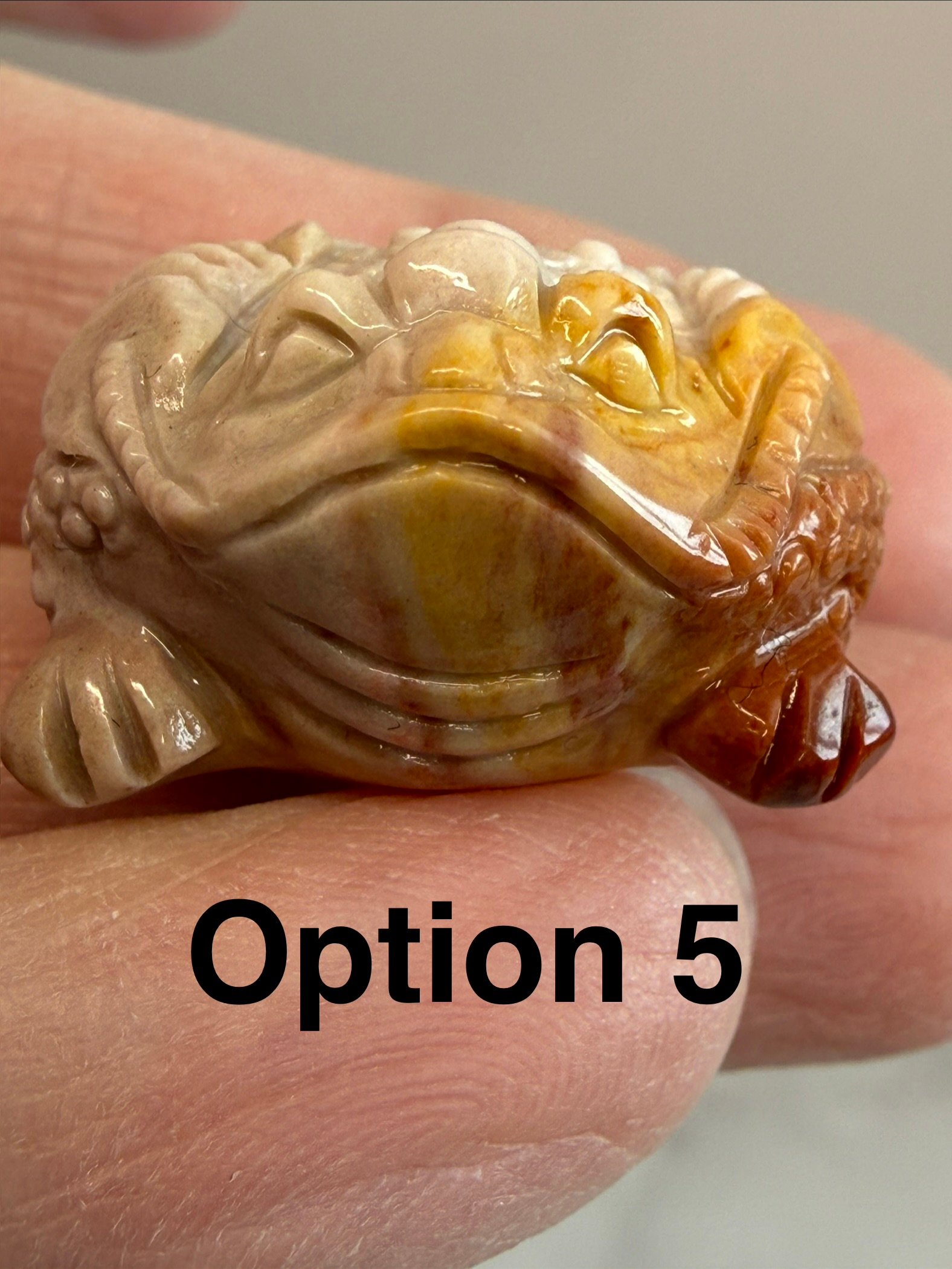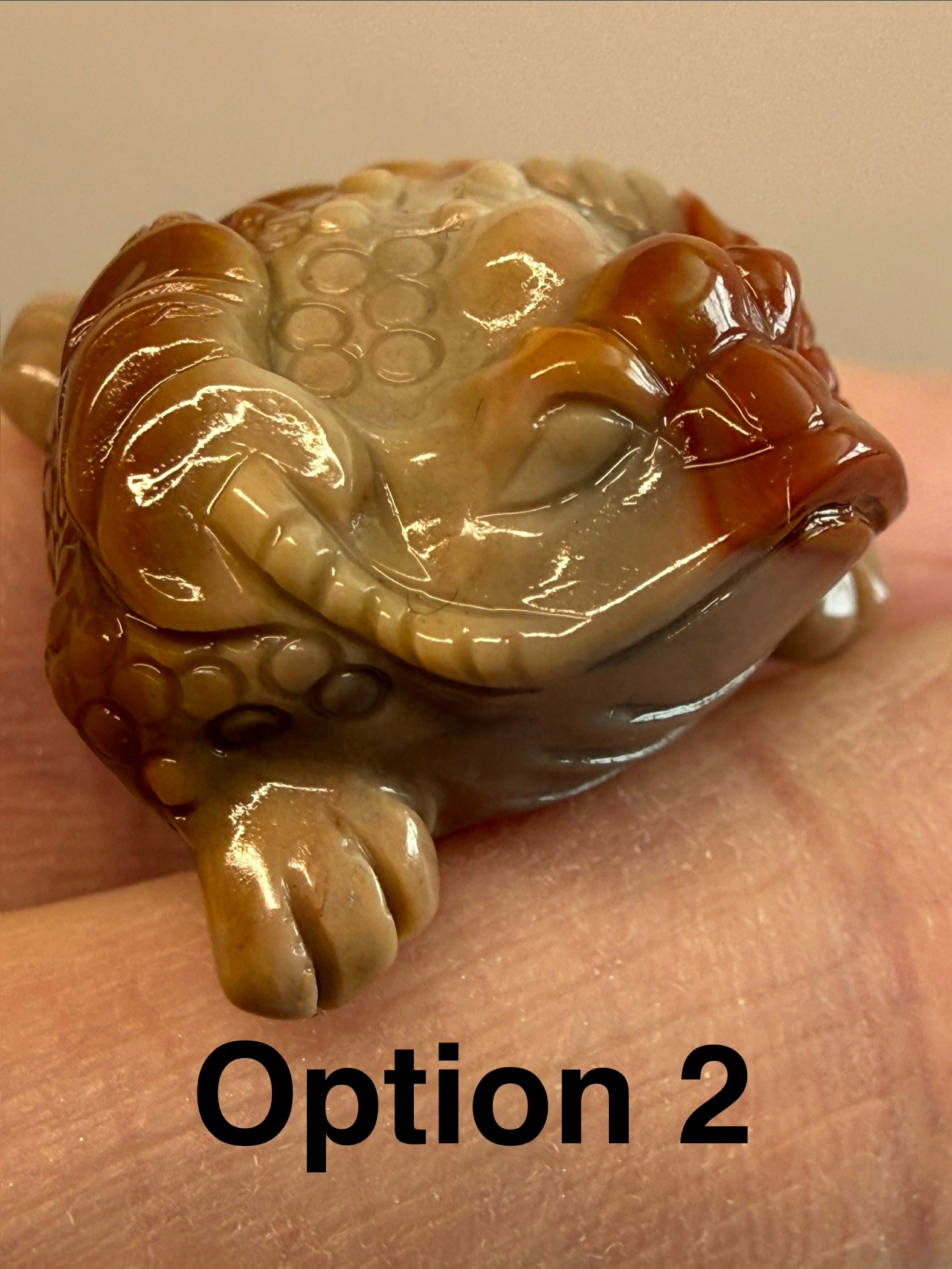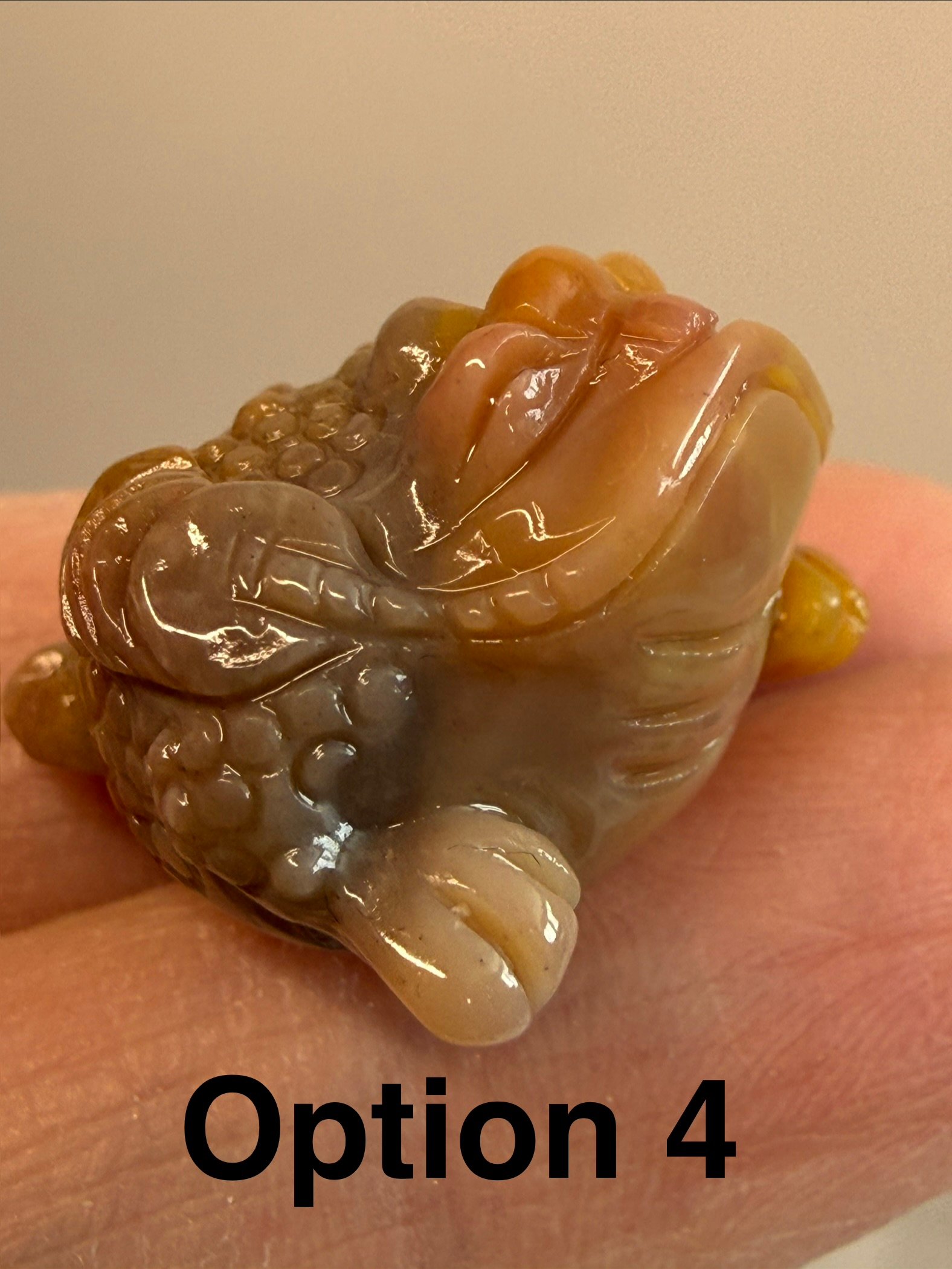 These beautifully carved mini Alashan agate three legged toads are such lovely and unique colours. Choose from 6 lucky toads.
