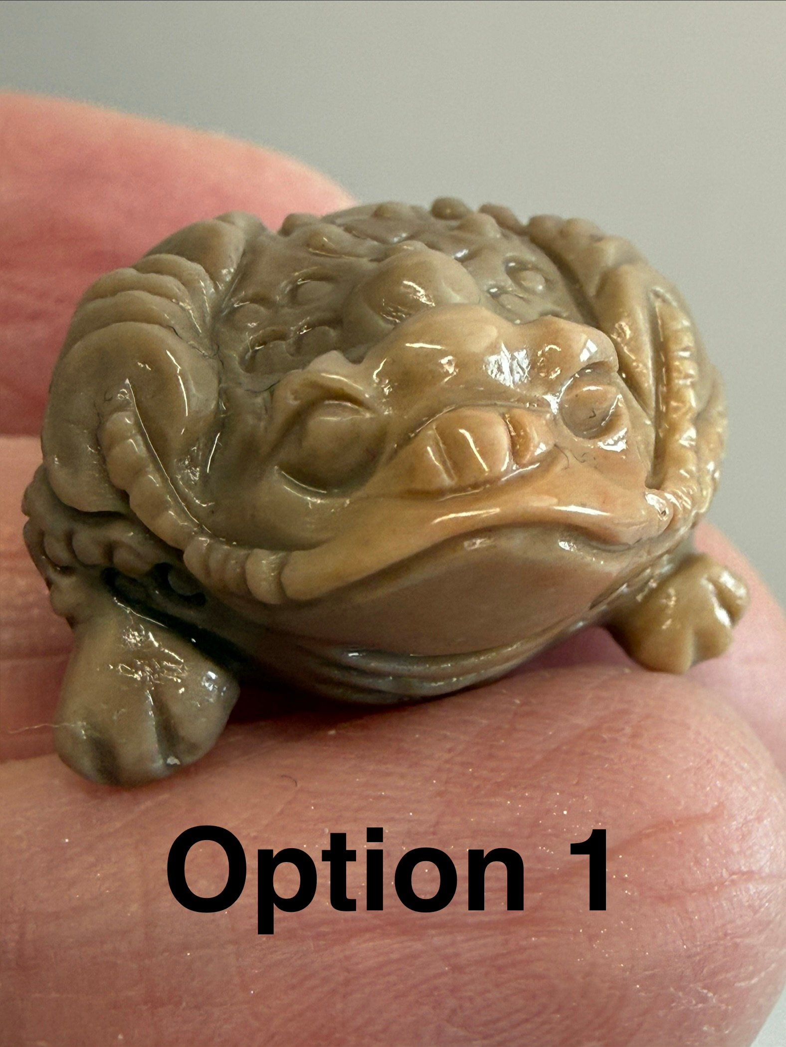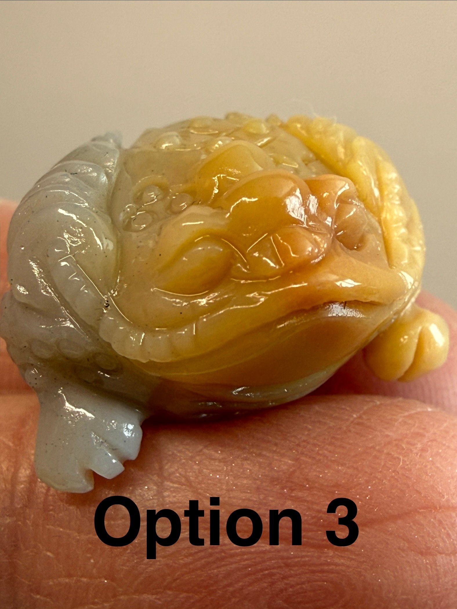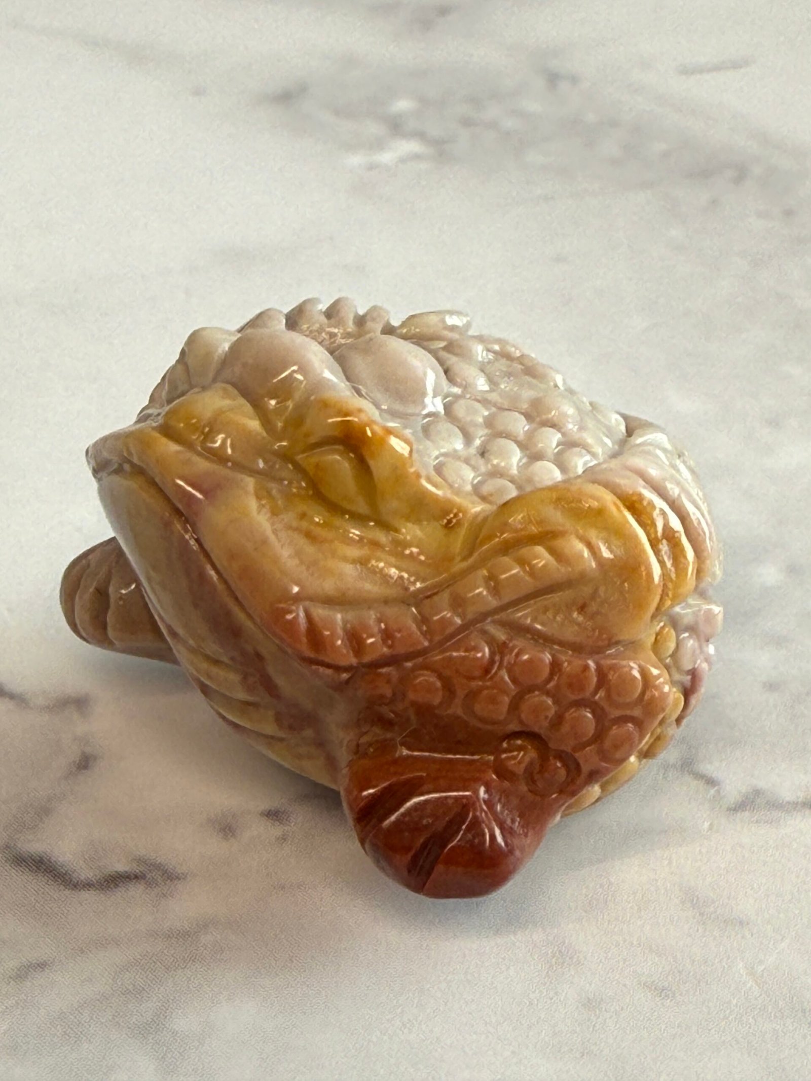 These beautifully carved mini Alashan agate three legged toads are such lovely and unique colours. Choose from 6 lucky toads.