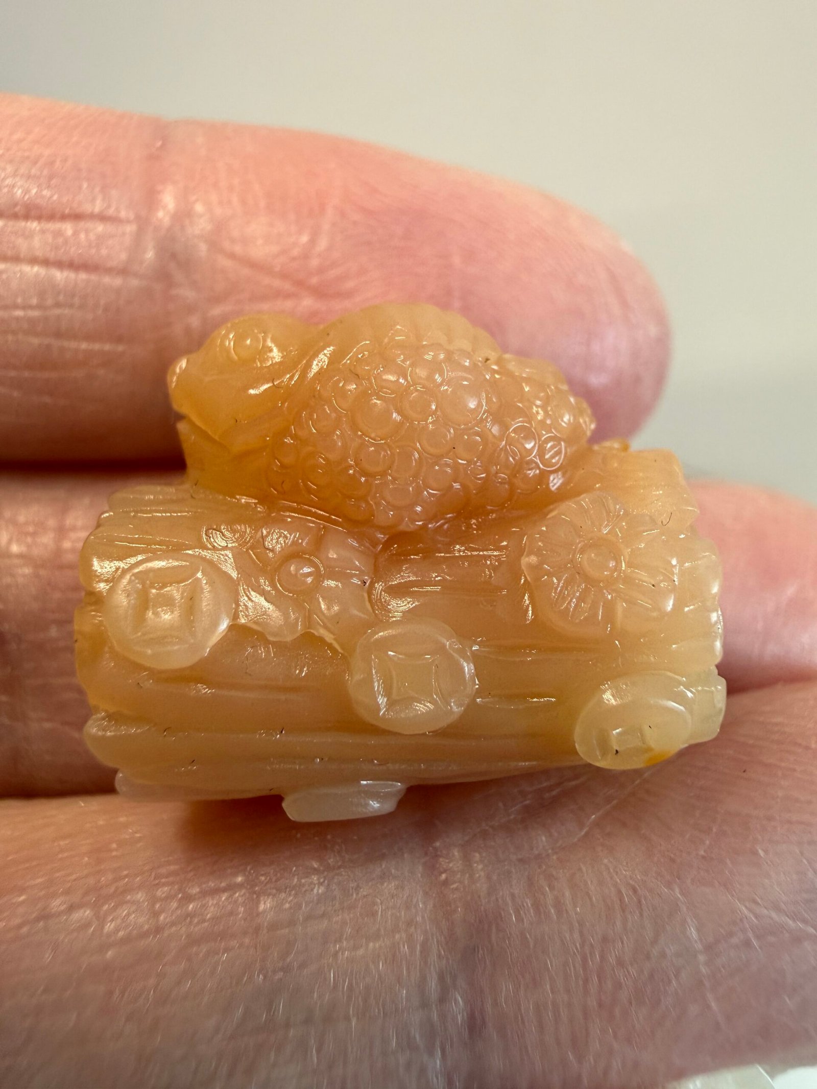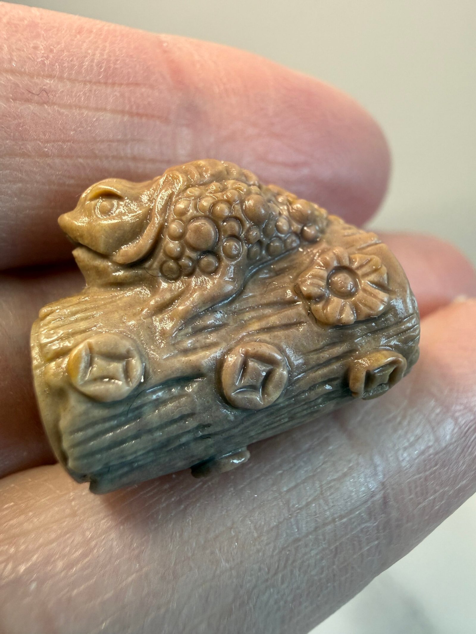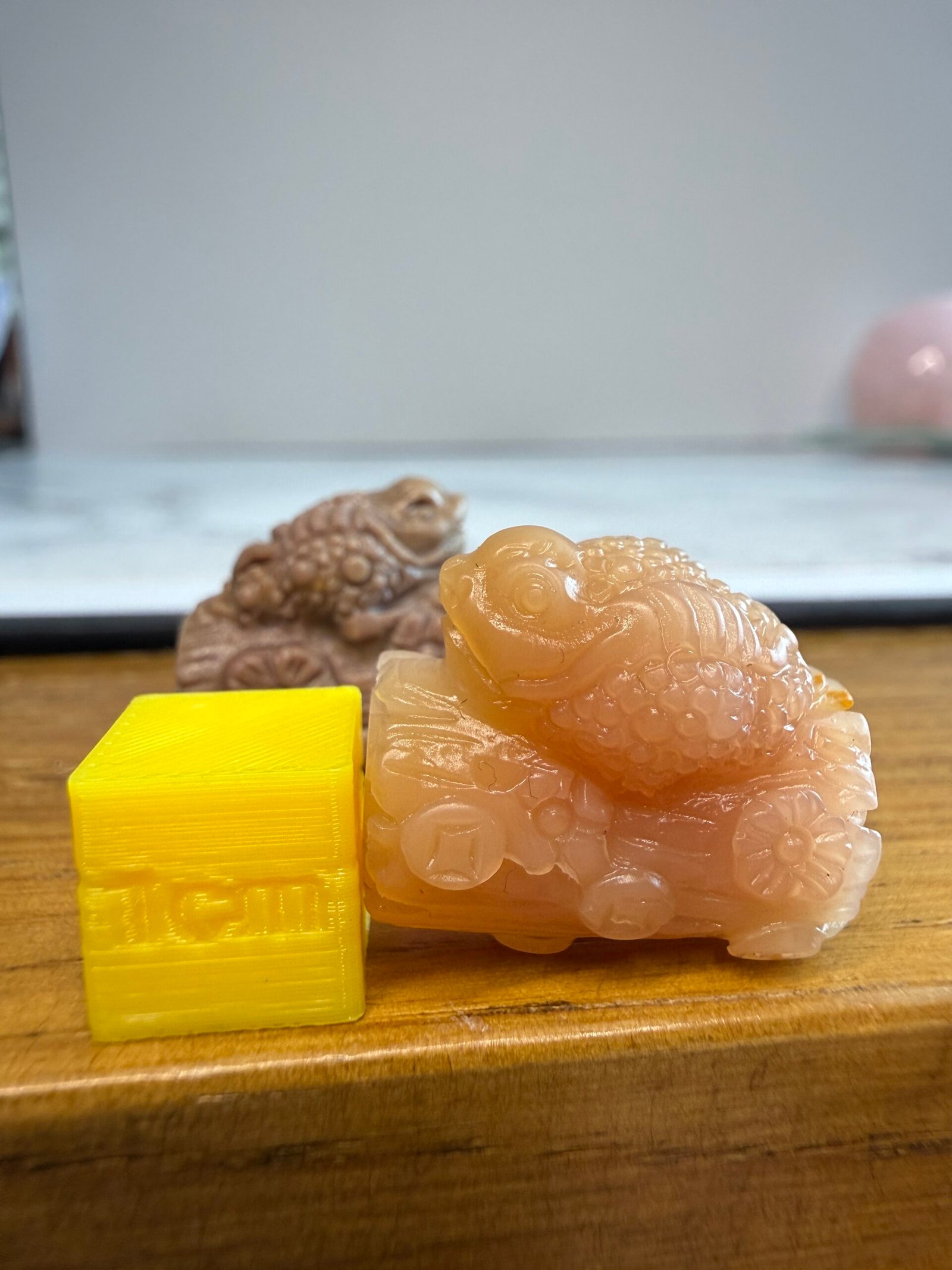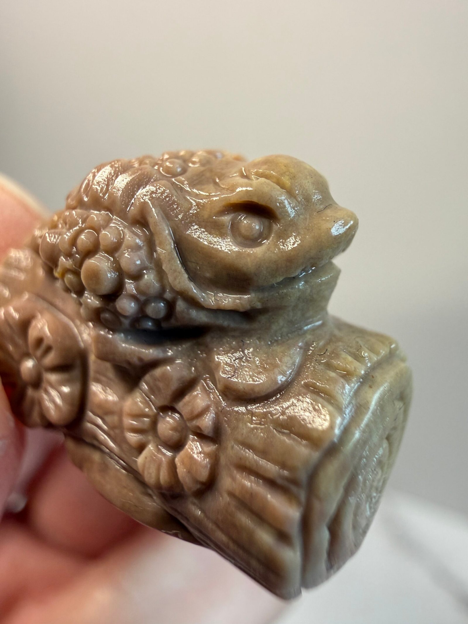 A three-legged money toad (Jin Chan) on a tree trunk symbolises a solid, growing foundation for wealth, longevity, and career advancement. Combining the toad’s wealth-attracting, protective energy with the tree’s representation of growth, stability, and rising fortune, this depiction enhances the accumulation of financial abundance.