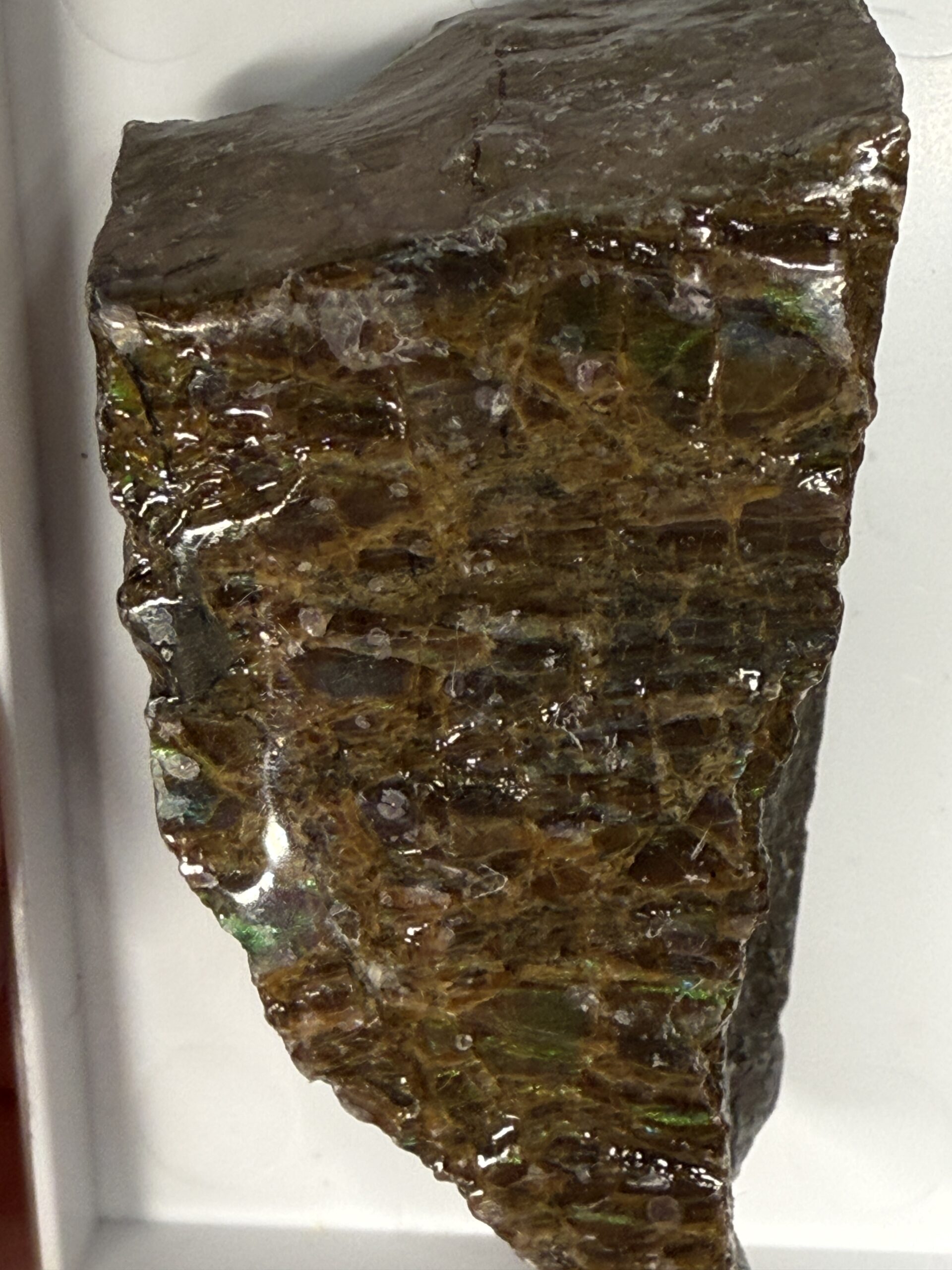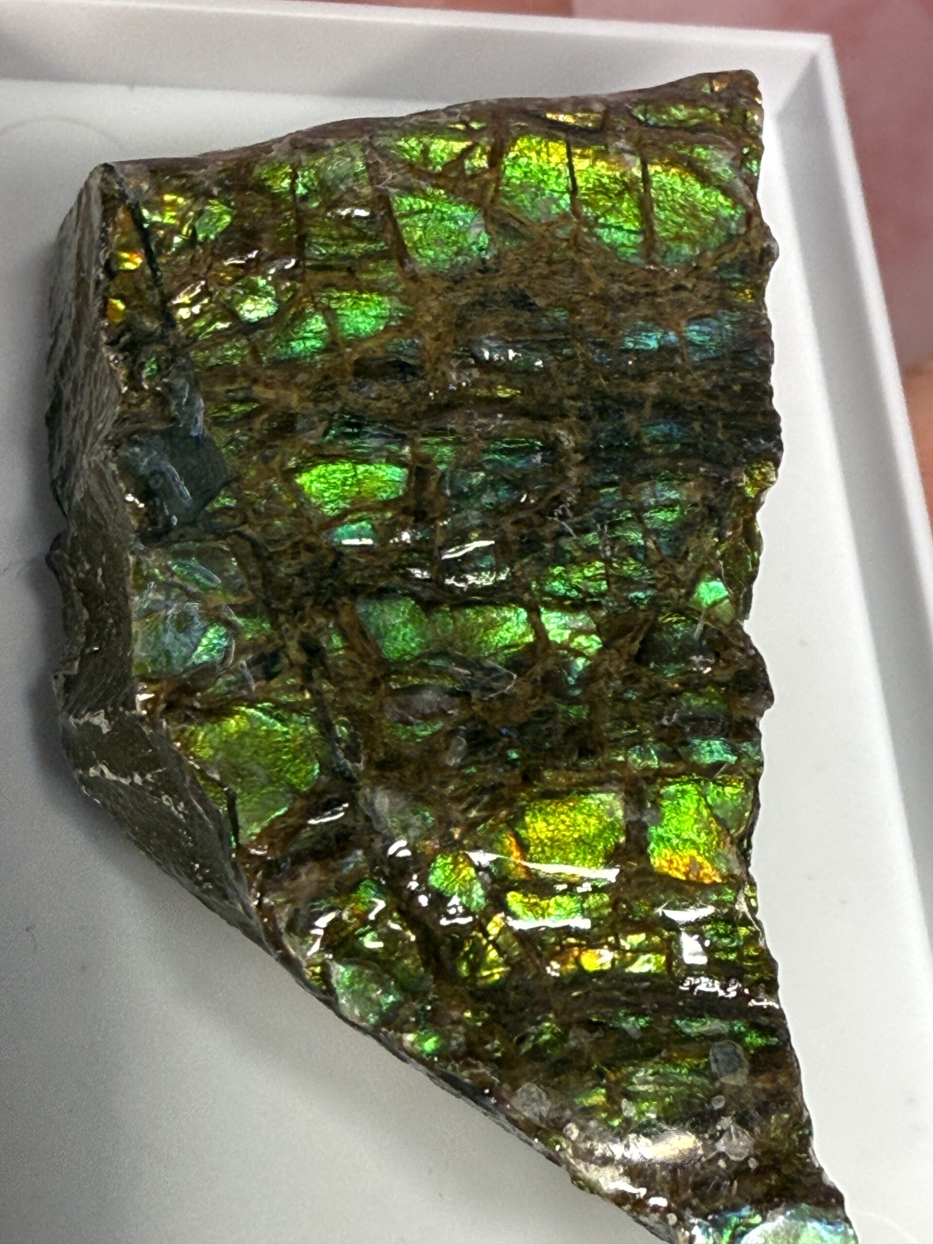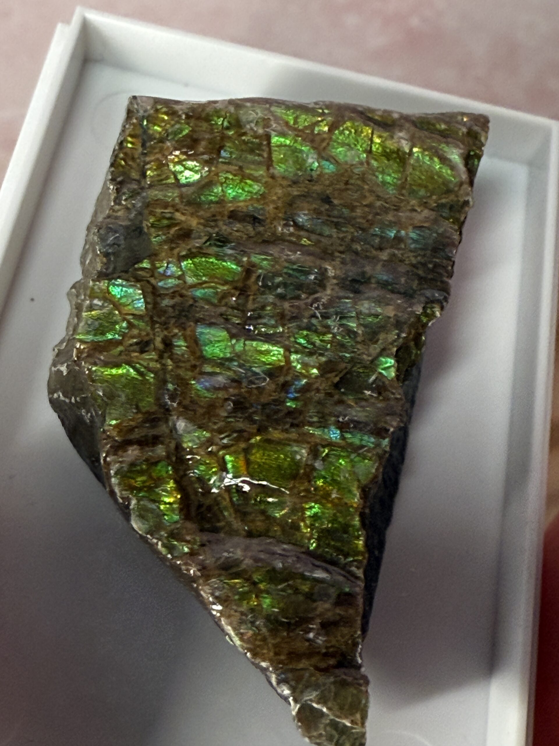 Ammolite is a rare material. All of the world’s commercial production comes from a small area along the St. Mary River in southwestern Alberta, Canada, in the Bearpaw Formation where the ammonite fossils are found.