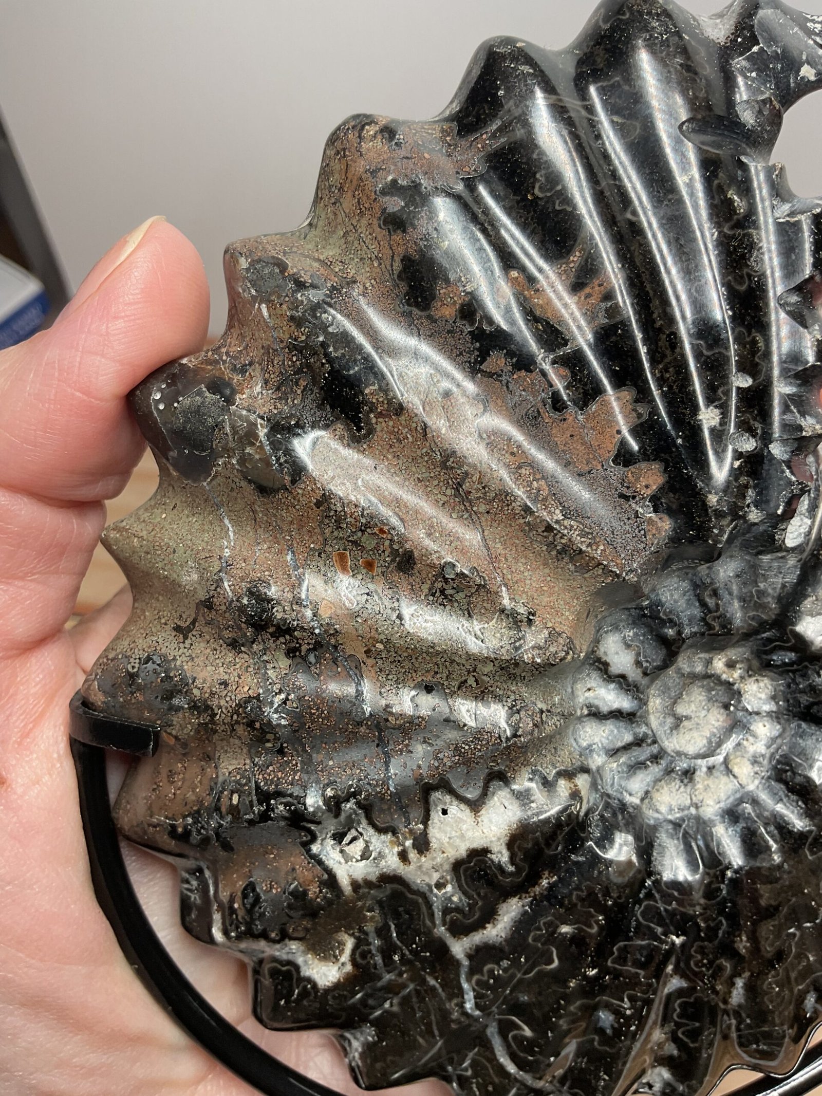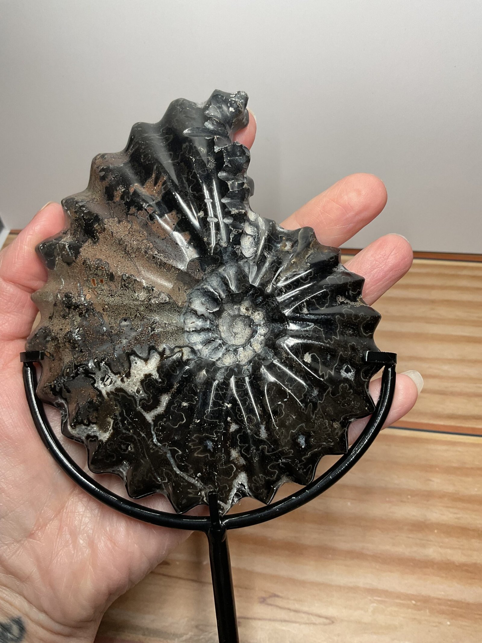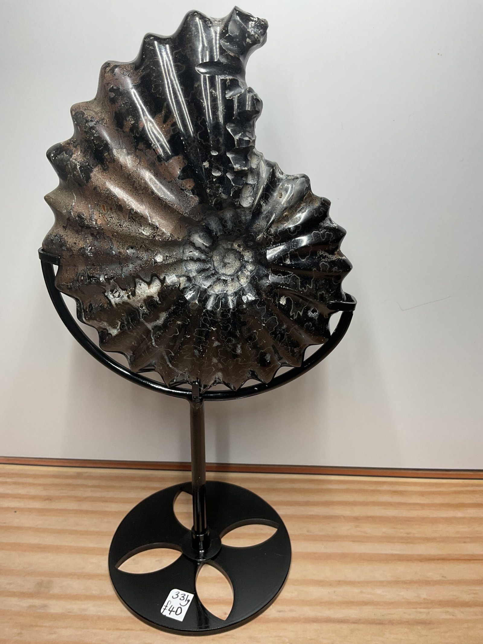 Beautifully curated ammonite fossil with wonderful natural patterning.