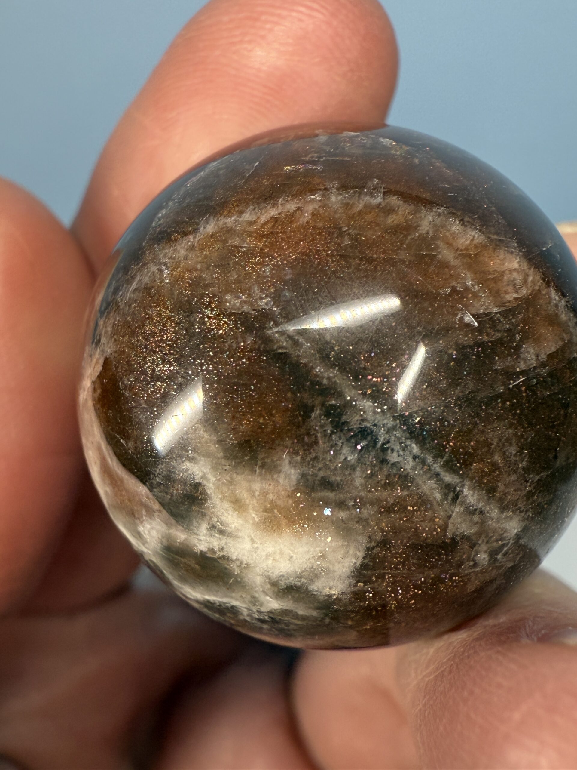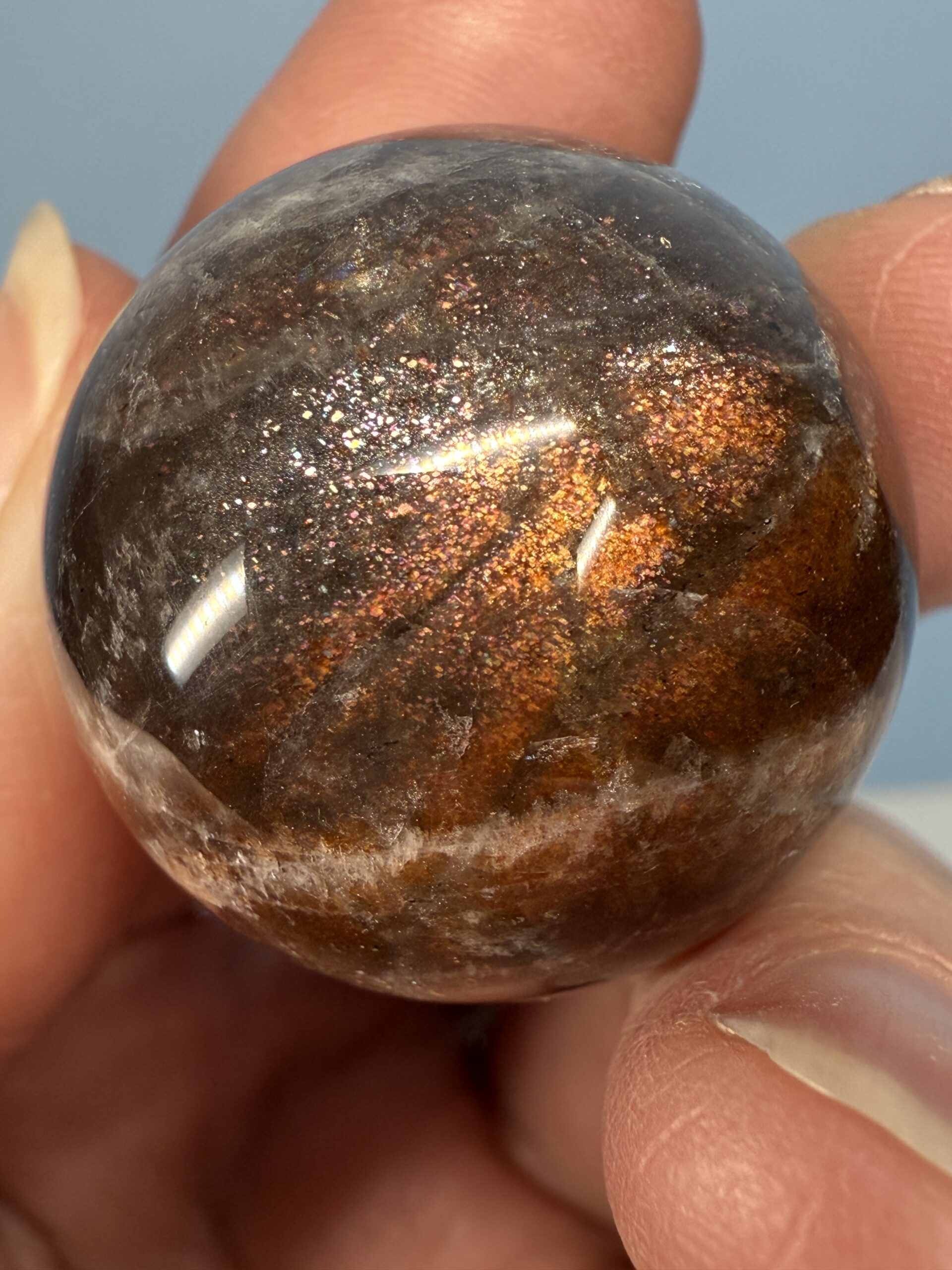 Black Moonstone with Sunstone Small Sphere