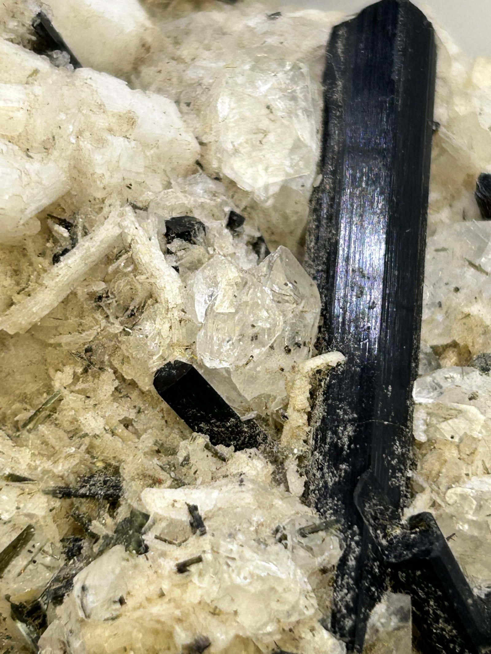 A fabulous specimen of Black Tourmaline, or Schorl, in Albite and Quartz.