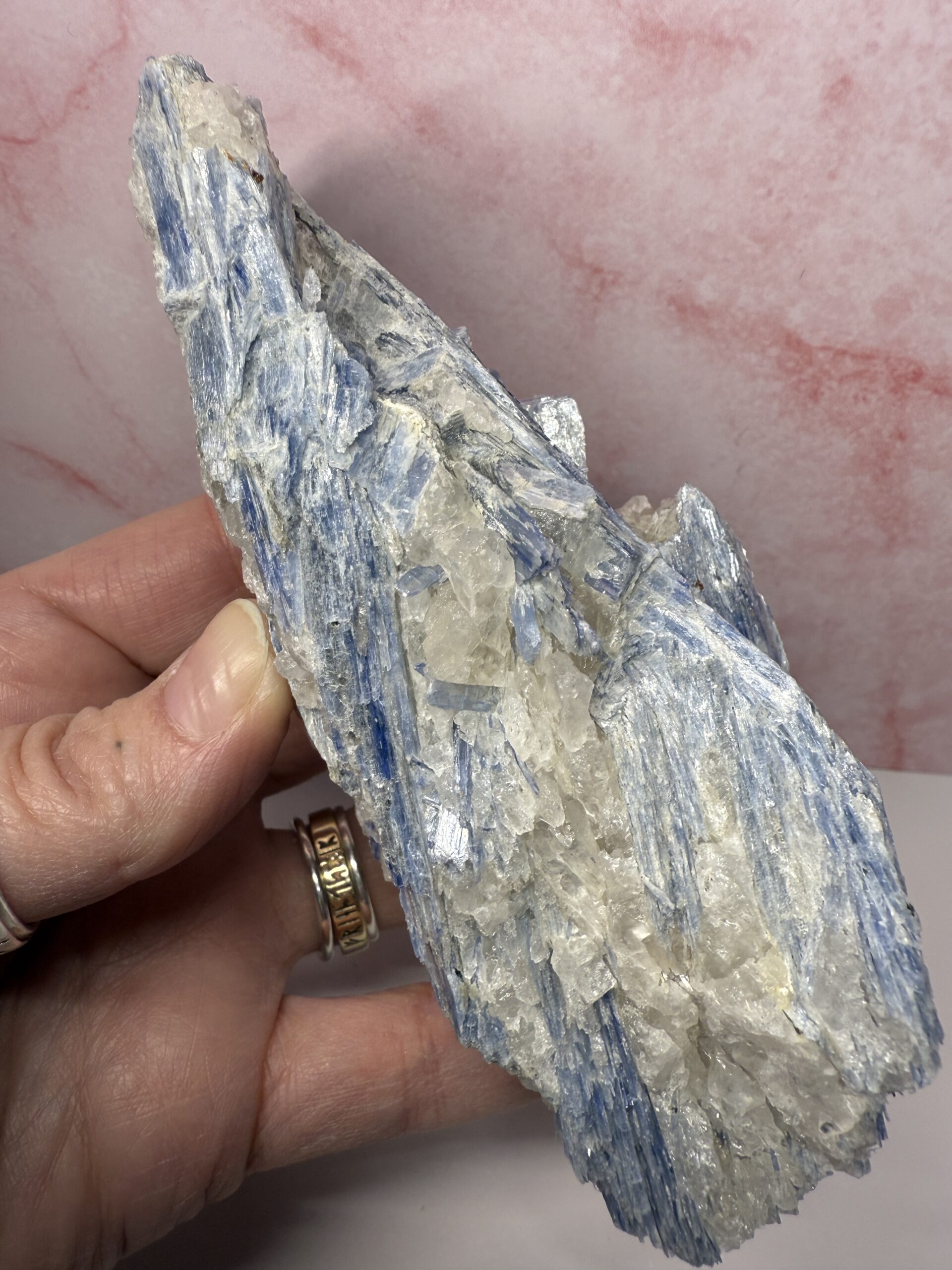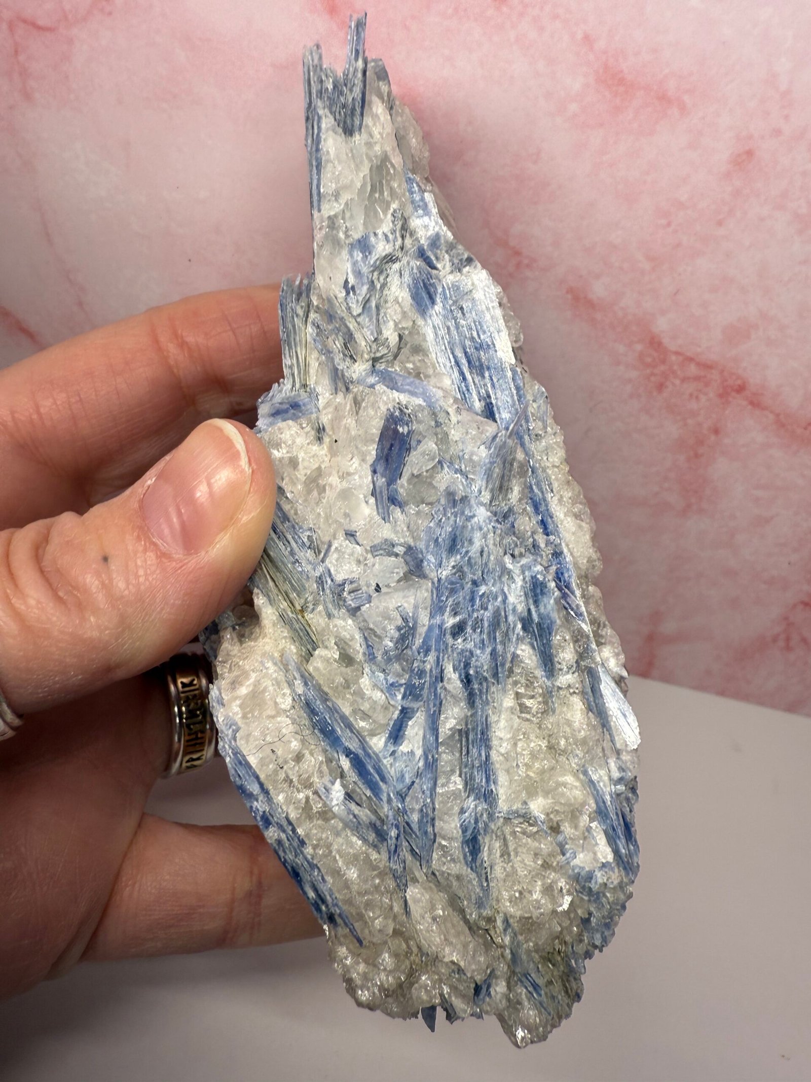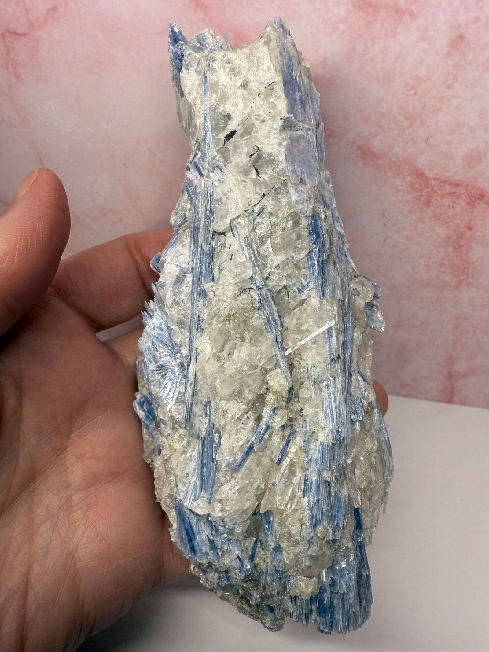 is a great stone for healers as it places a protective shield around the healer and grounds spiritual energy. As Blue Kyanite does not absorb negativity, it is one of the very few stones that does not require cleansing.