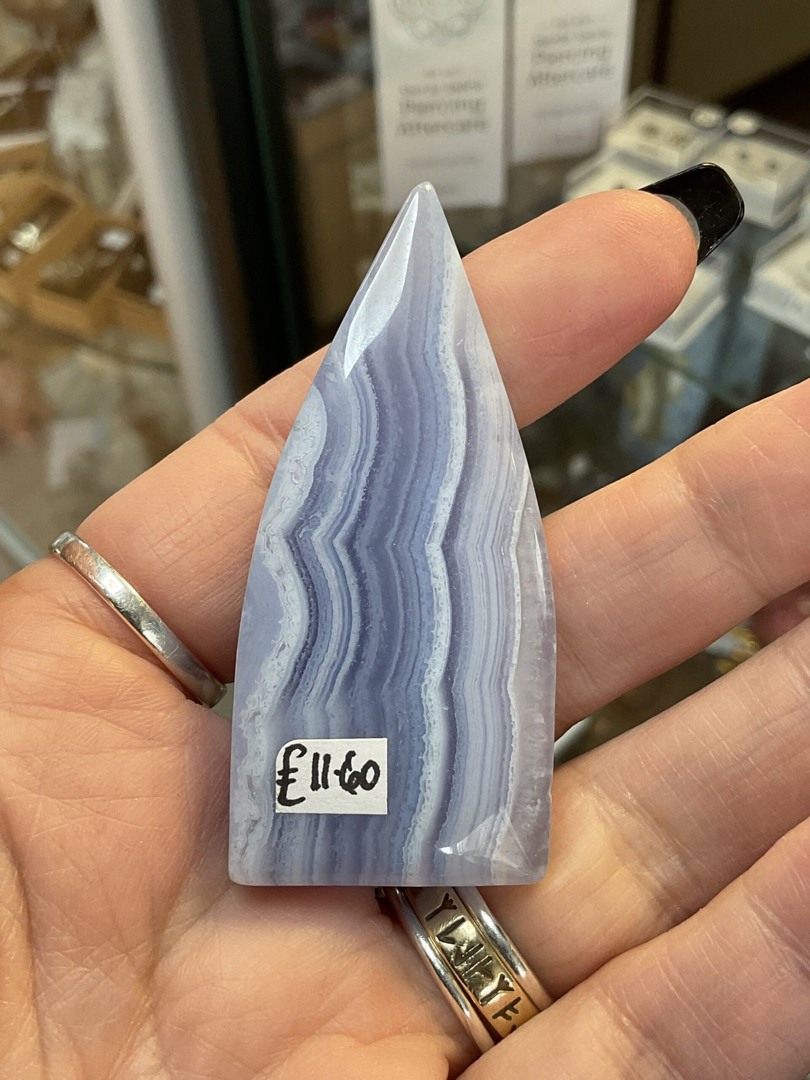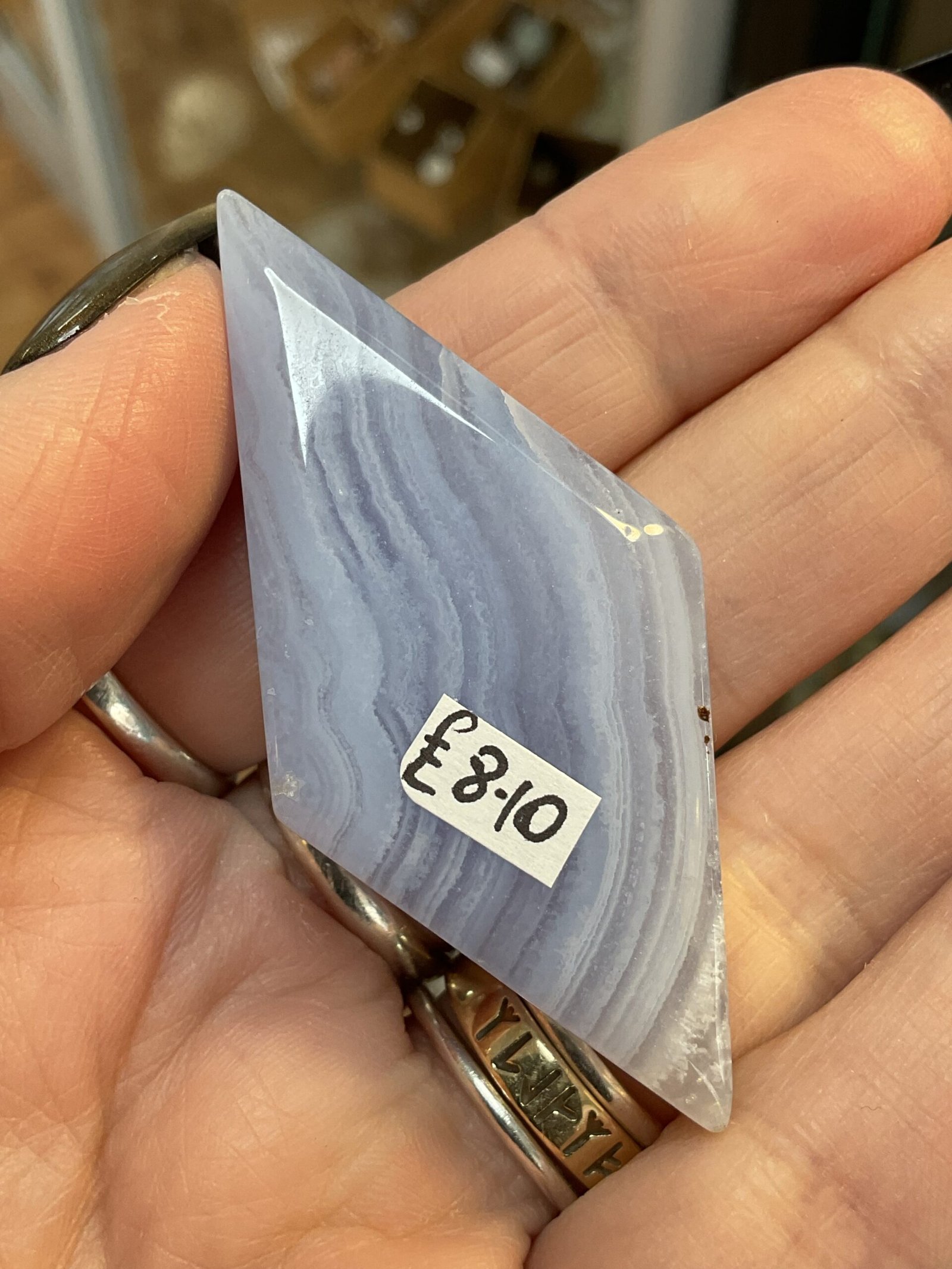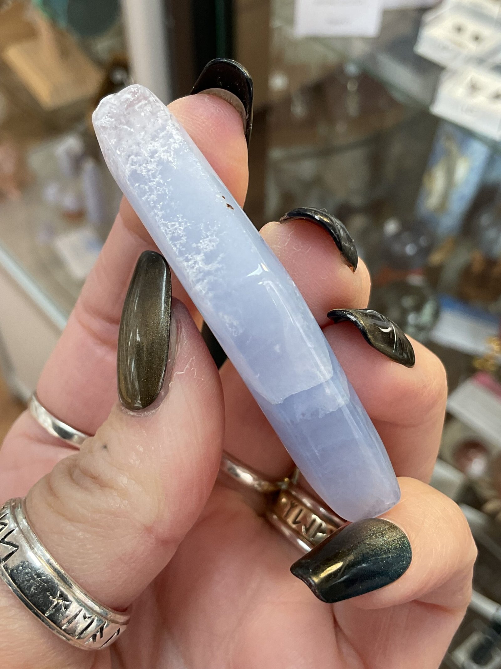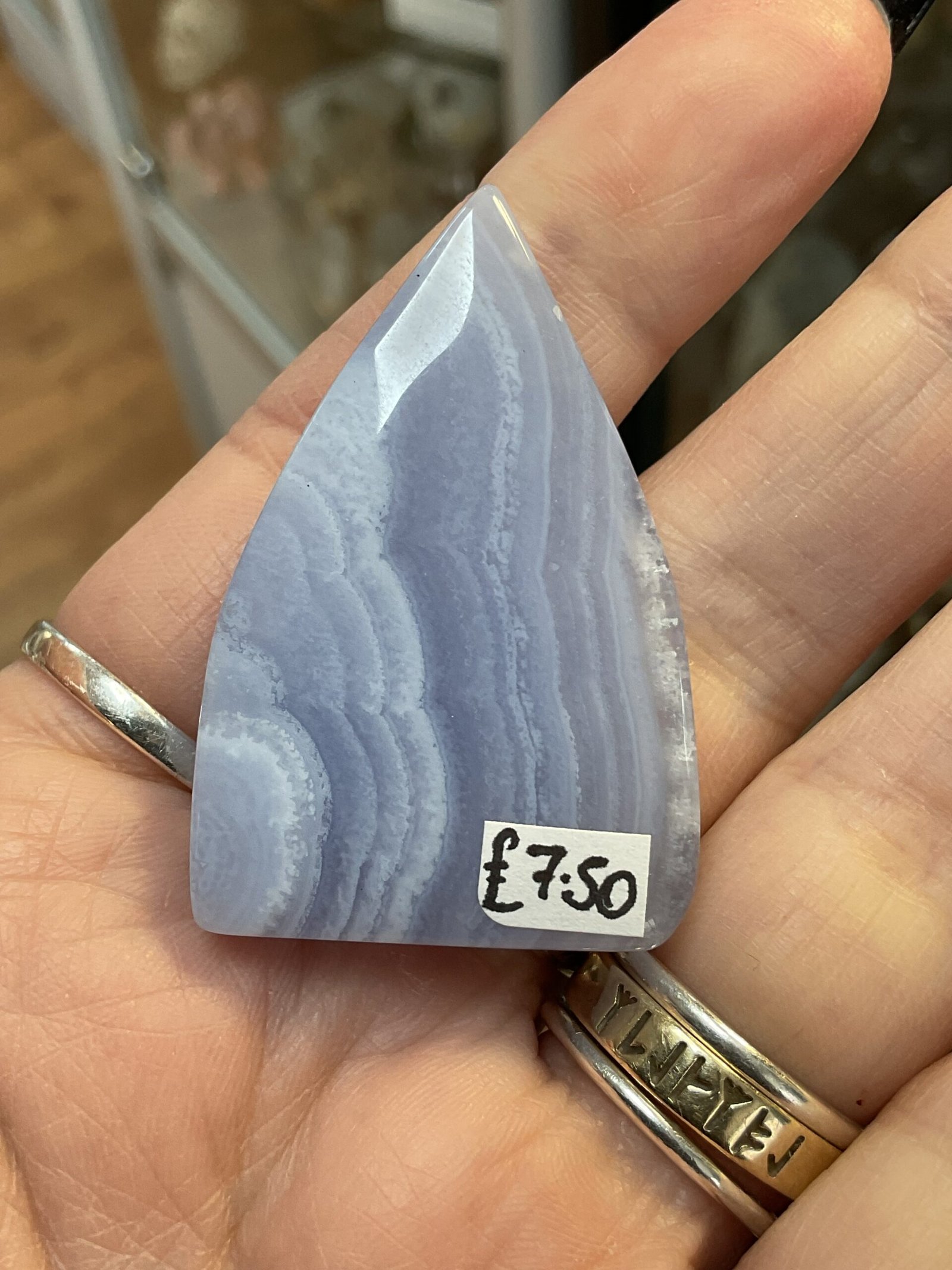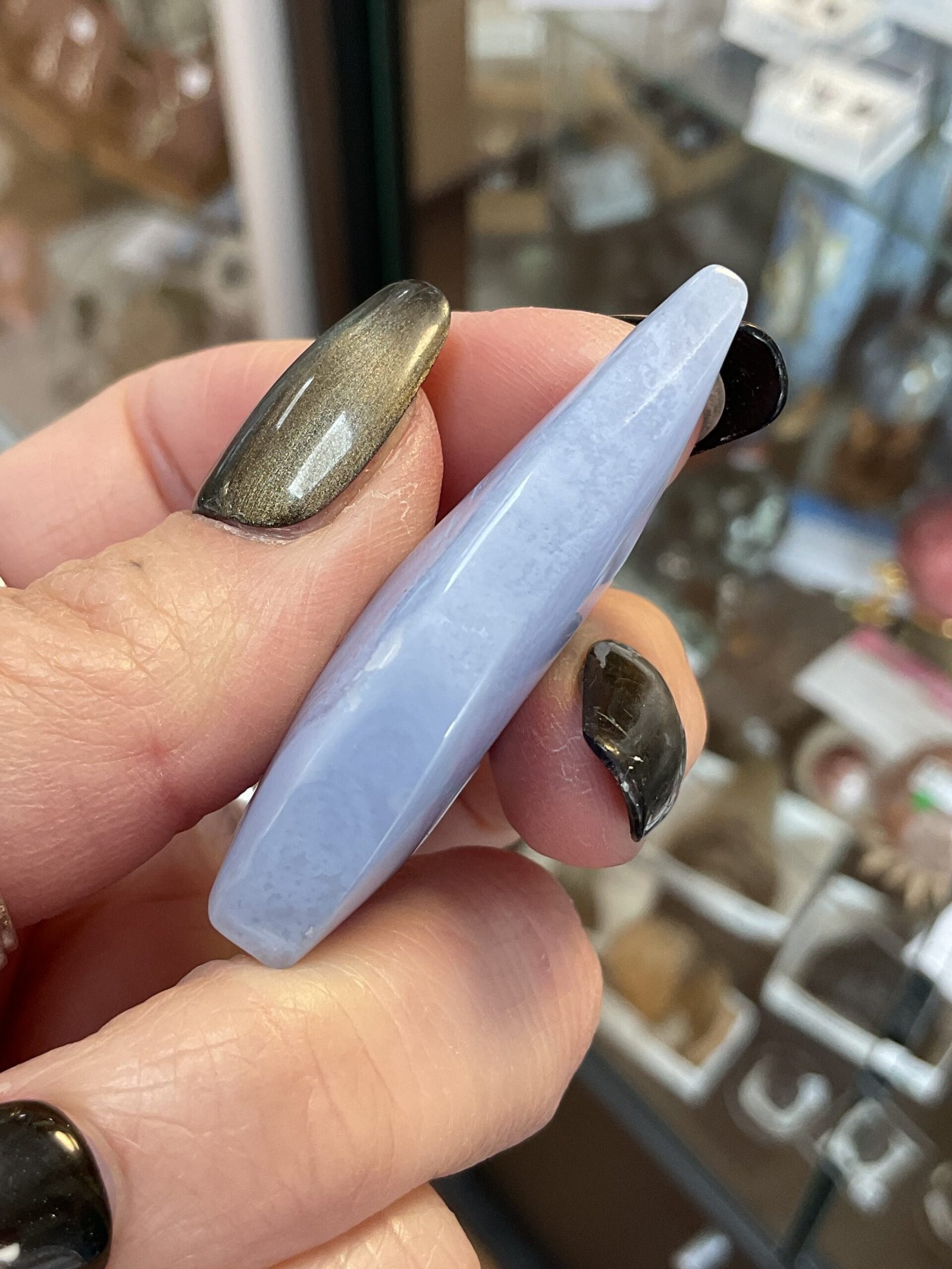Blue Lace Agate is an incredibly soothing stone, giving one a sense of inner peace, serenity, and tranquility. It is effective in calming an overactive mind, relieving insomnia, and soothing tension headaches. It allows one to speak clearly and calmly, and not concern themselves with the opinions of other people. This stone is believed to work at a very slow and steady pace, making it beneficial to use over the long term.
