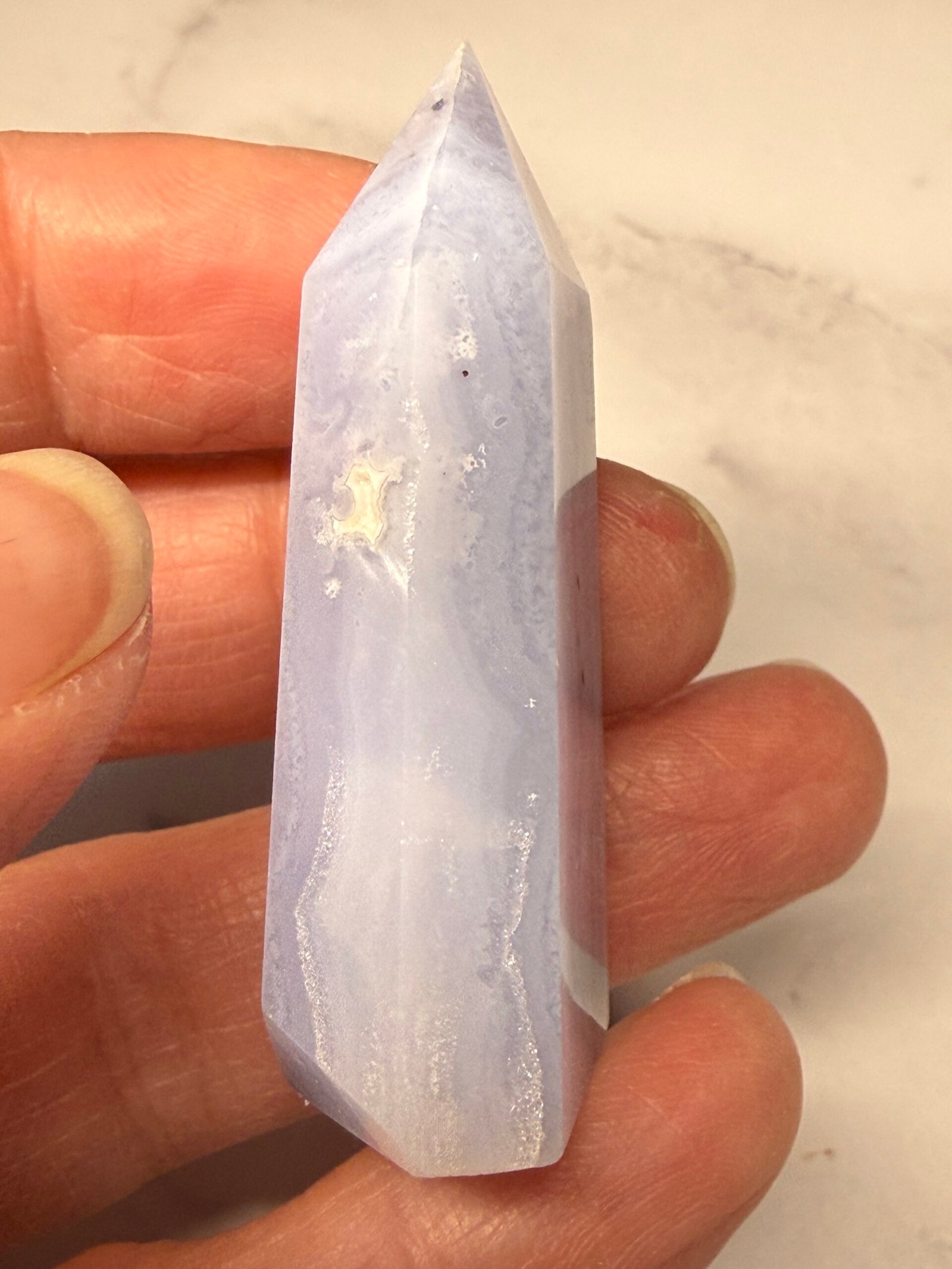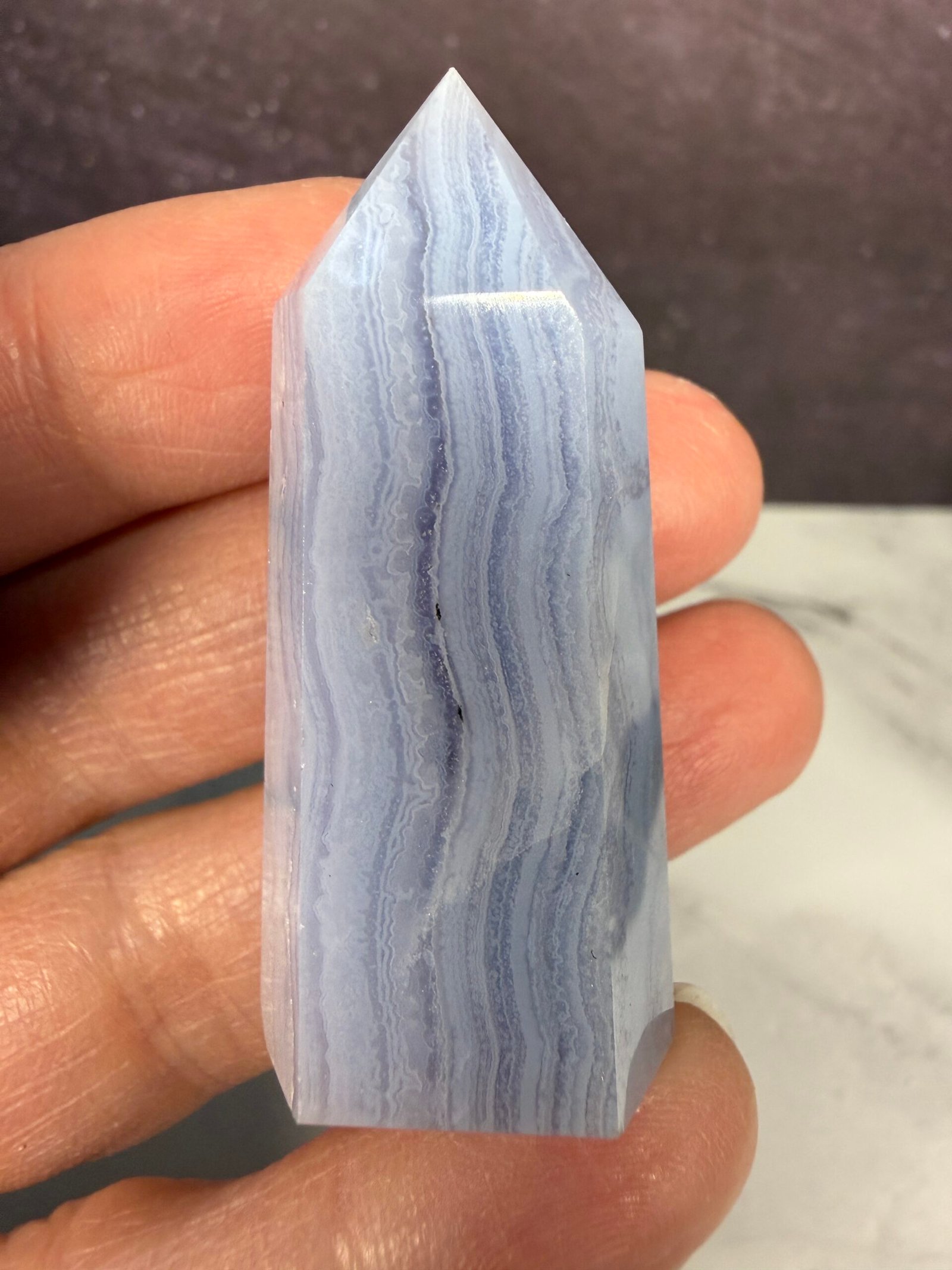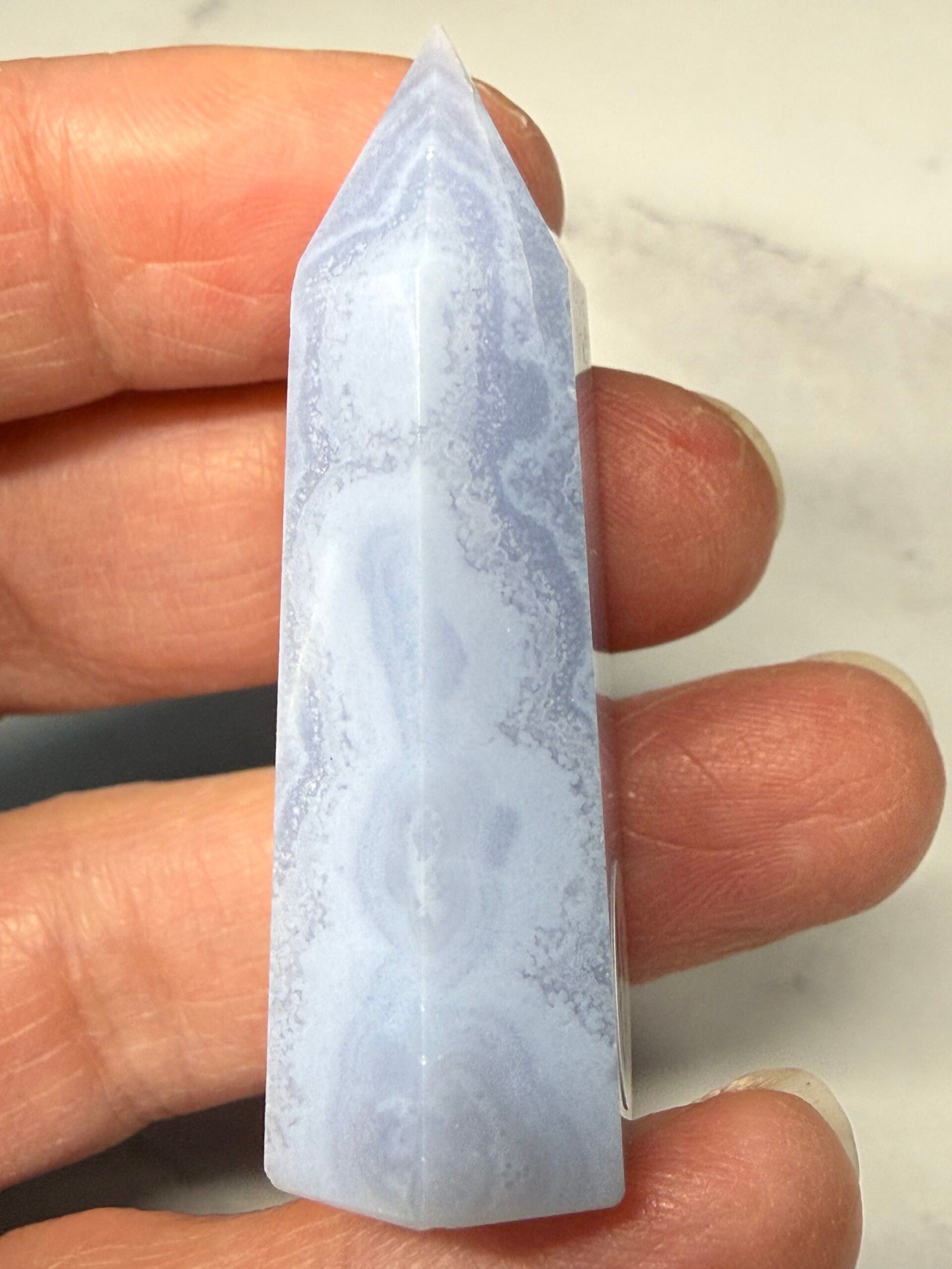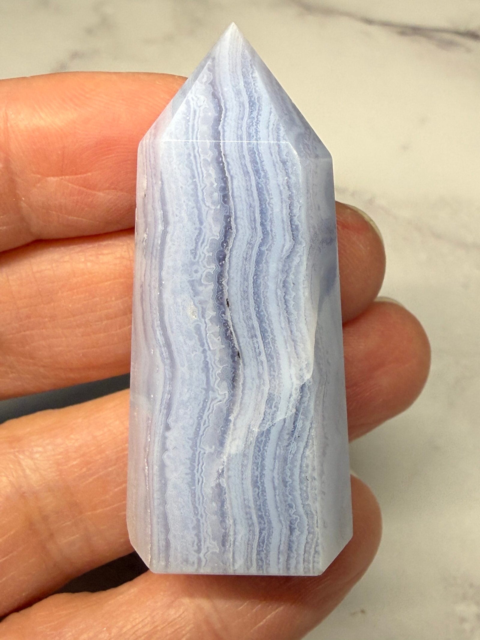 This is a lovely blue lace agate small tower, or point.