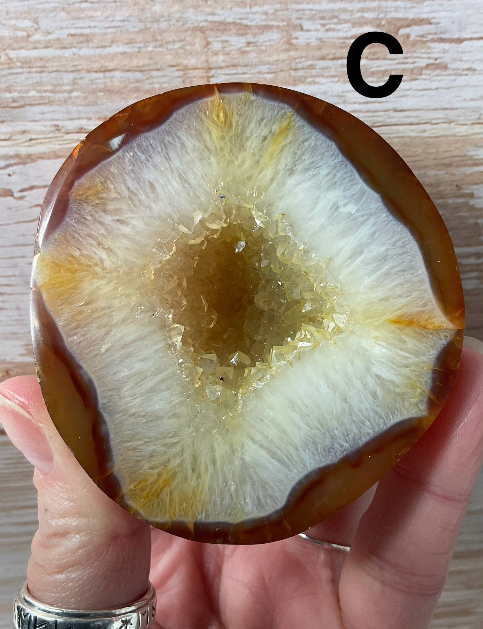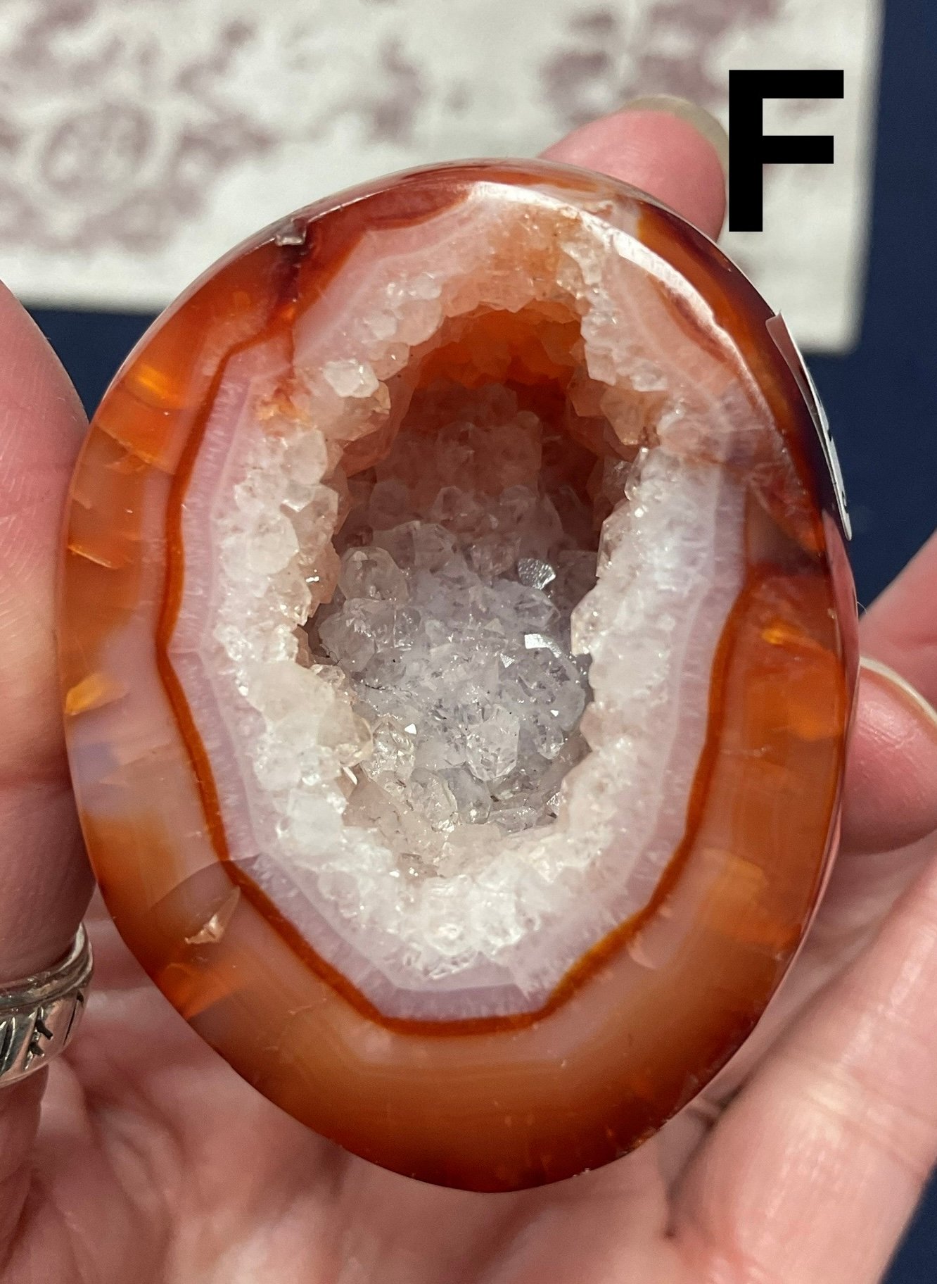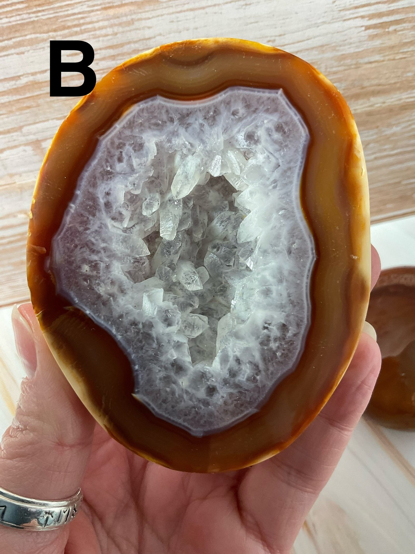 Carnelian geodes with sparkly druse and patterning.