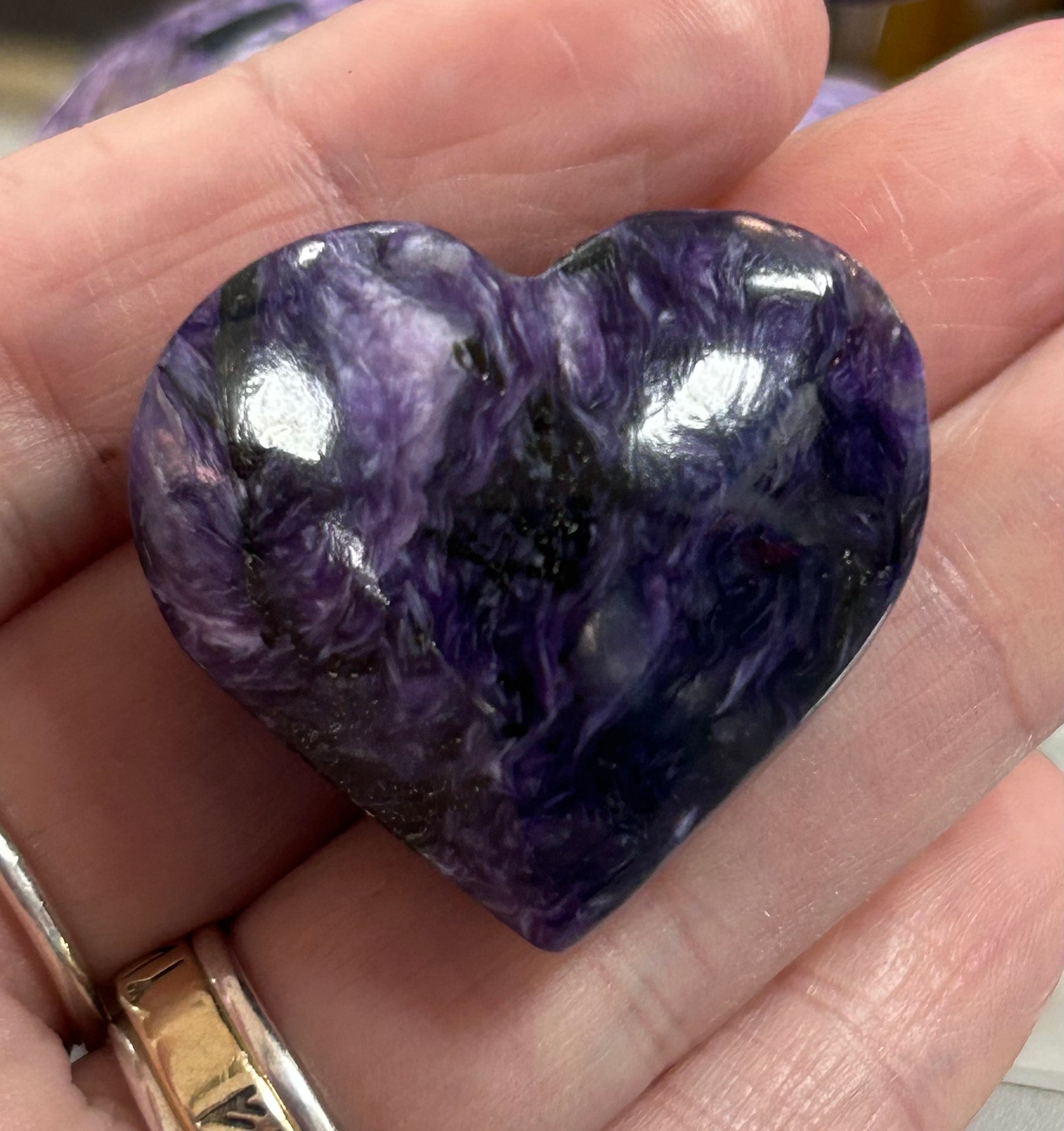 Charoite is known for its powerful emanation of the Purple Ray. It stimulates inner vision and spiritual insight, enhances one’s psychic gifts, and encourages one to follow the path of their soul’s calling. It is an empowering stone that promotes transformation and deep self-reflection, helping one discover the answers that lie within. It promotes open-