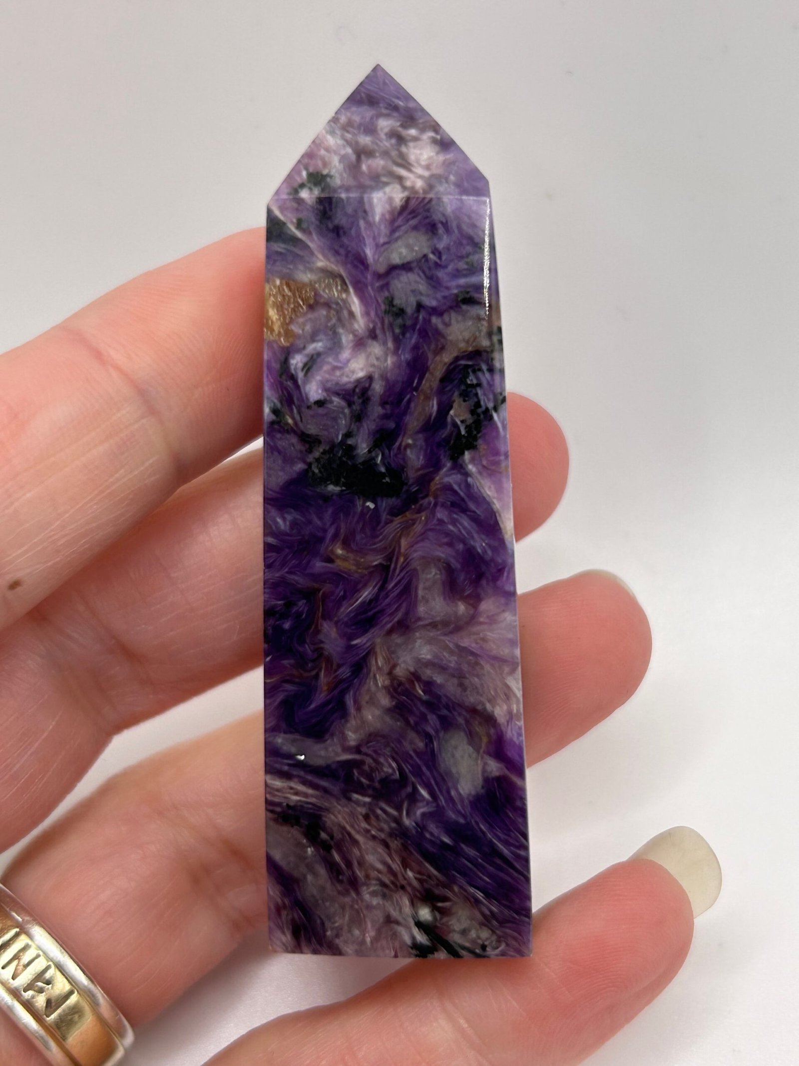 Charoite is known for its powerful emanation of the Purple Ray. It stimulates inner vision and spiritual insight, enhances one’s psychic gifts,