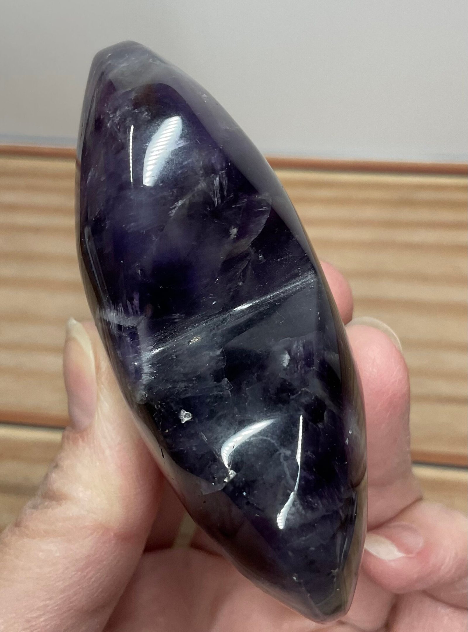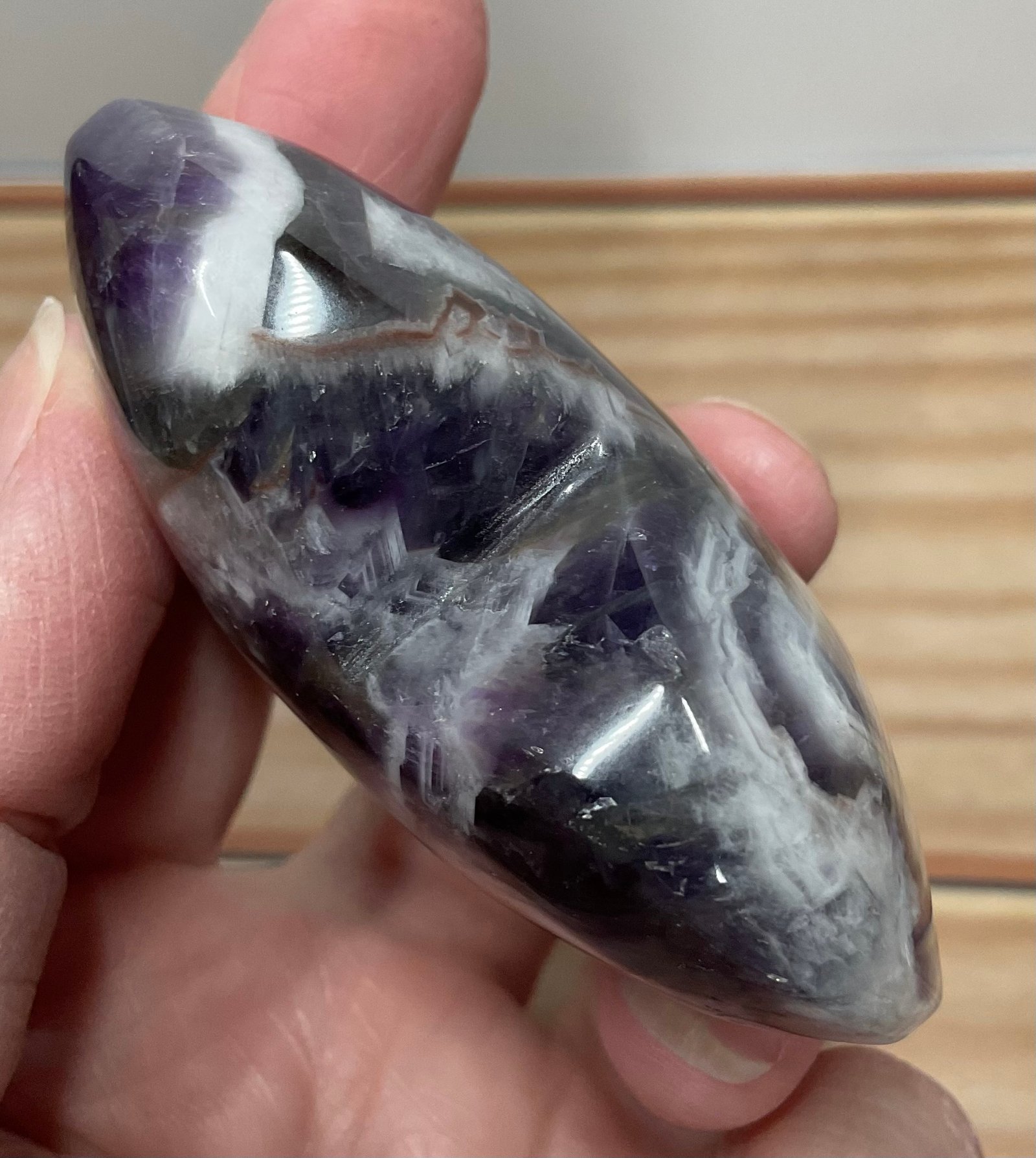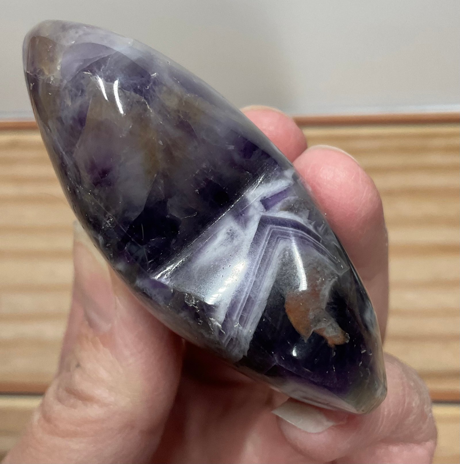 Chevron Amethyst combines the high spirituality of Amethyst, and the gentle support of White Quartz, creating a unique energy for self-reflection and personal growth. It gives one the courage they need to follow their spiritual callings and reach their highest potential. It cleanses