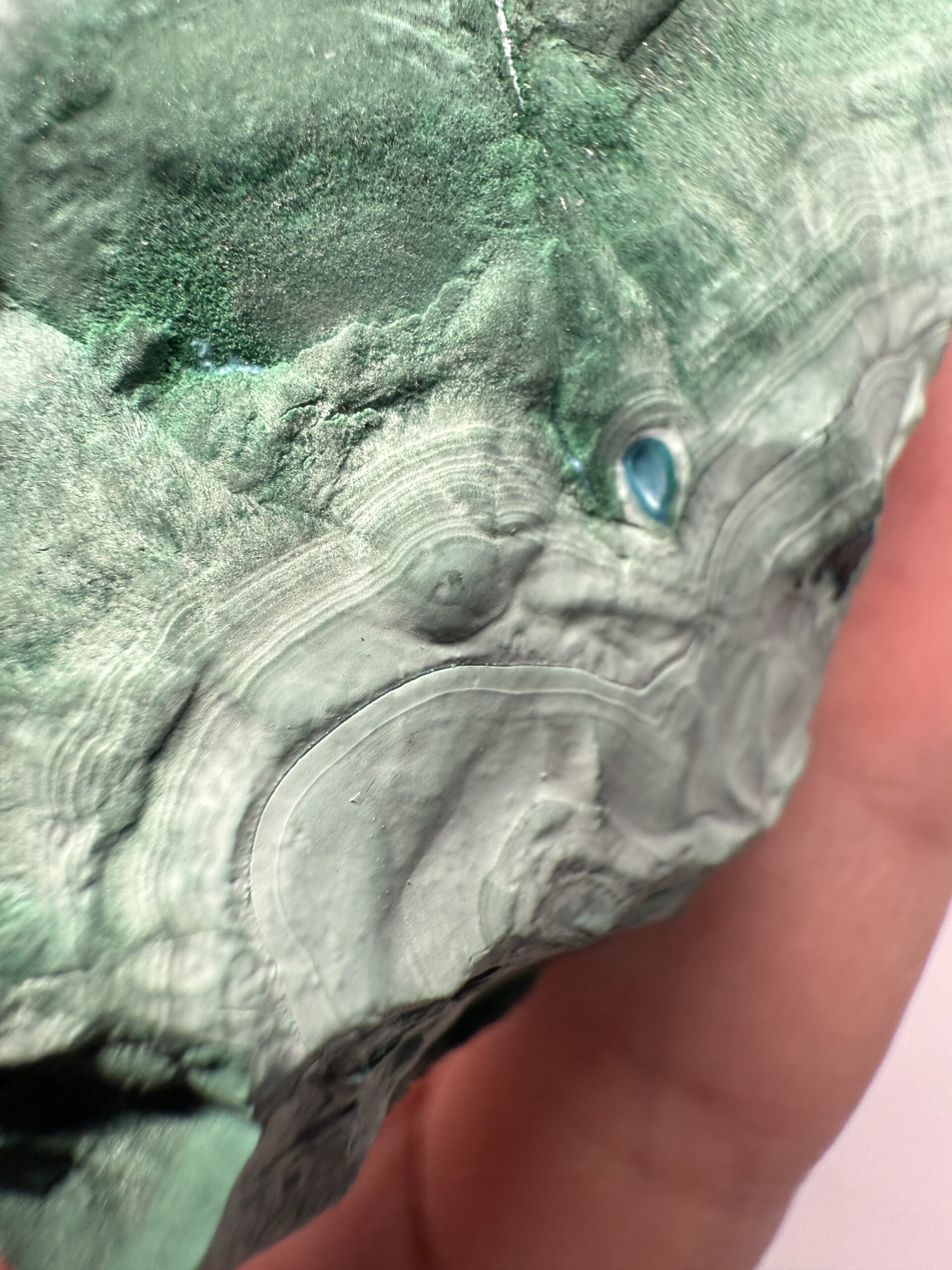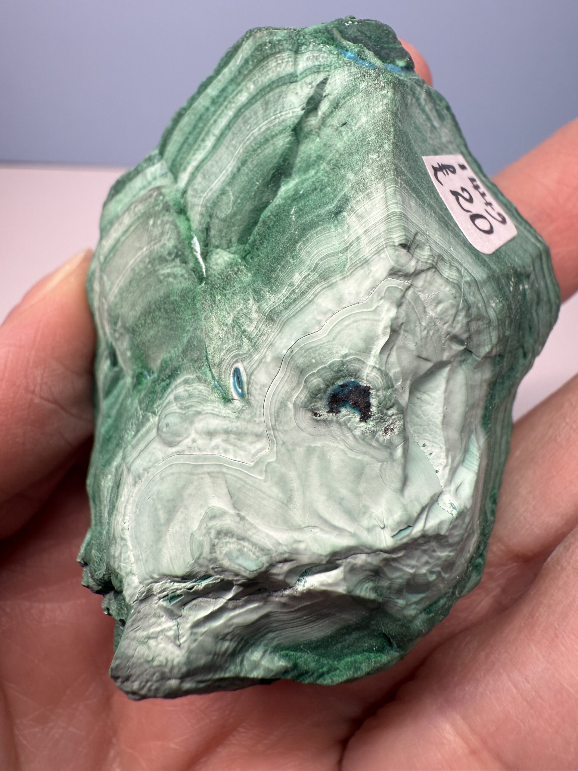 positive and negative energies. It eases heartache and promotes deep emotional healing. Place this stone on the third eye chakra to enhance visualisation and psychic vision, and to assist in receiving insights from the subconscious mind. Malachite absorbs negative energy but does not