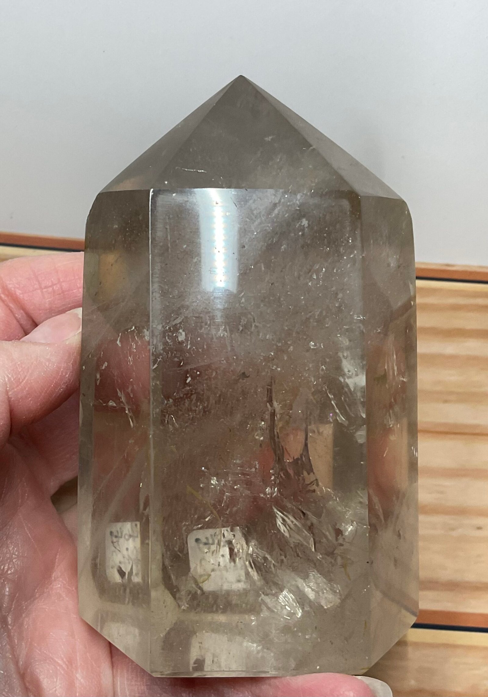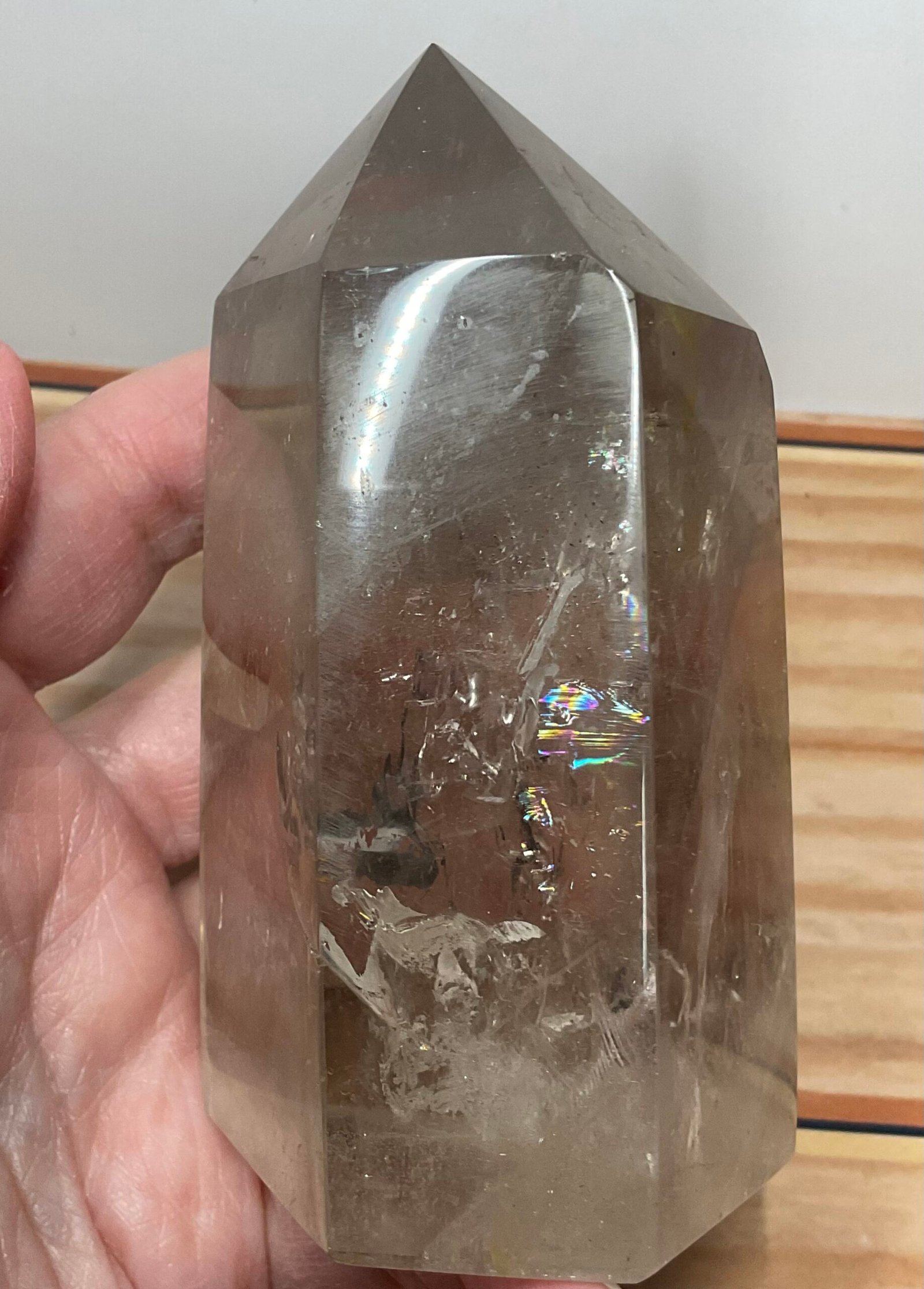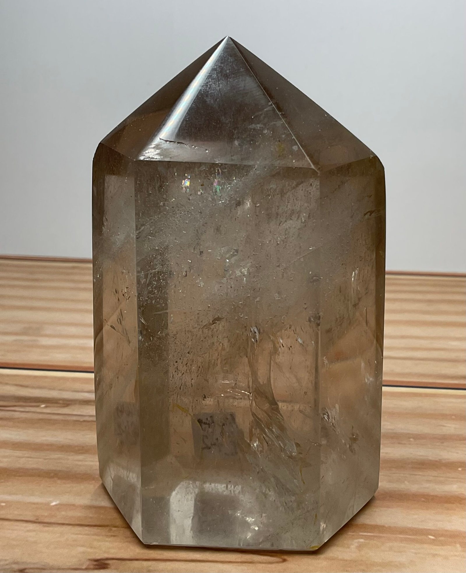 Lovely lightly hued, high quality smoky Quartz chunky tower with great clarity and a smattering of rainbows.