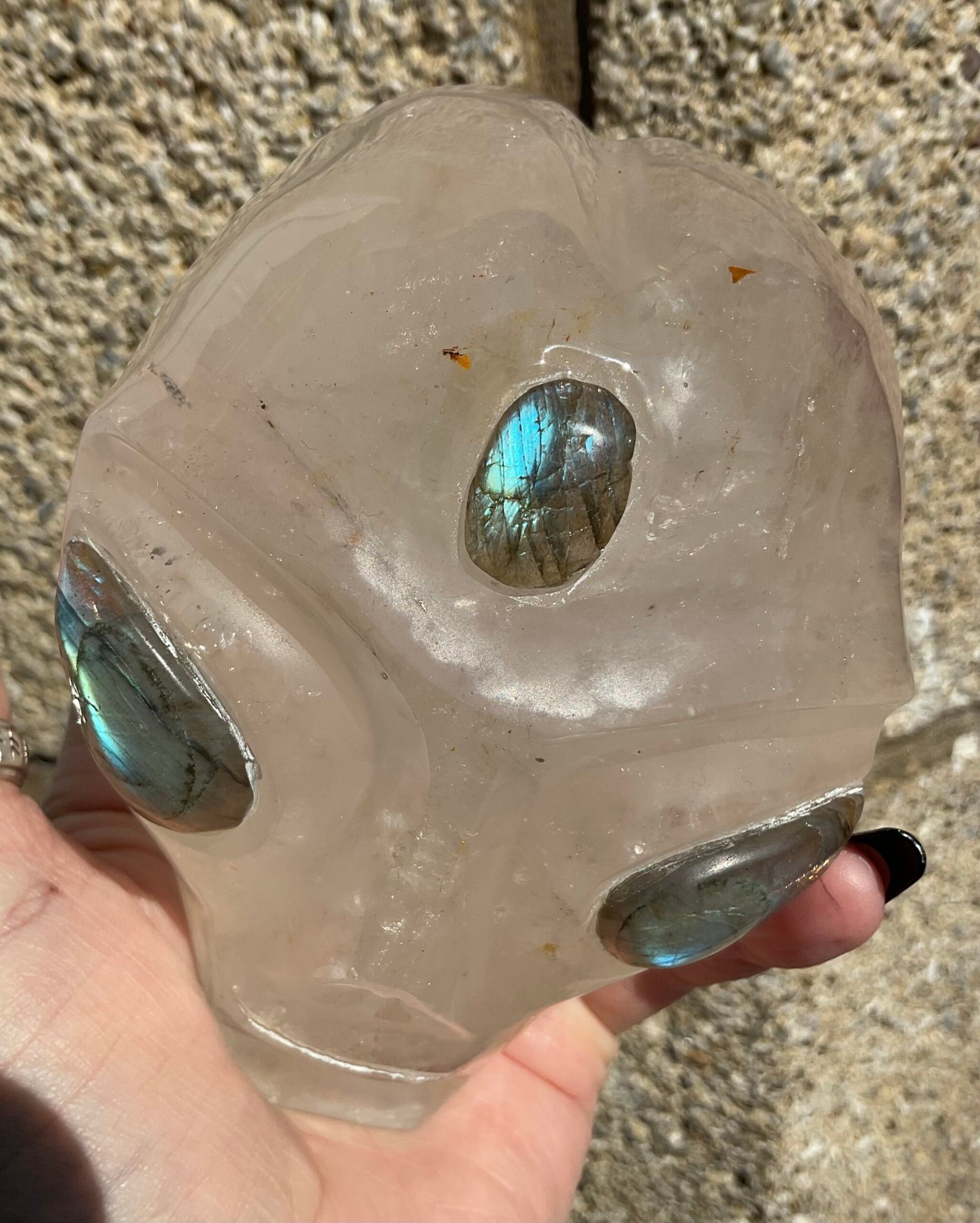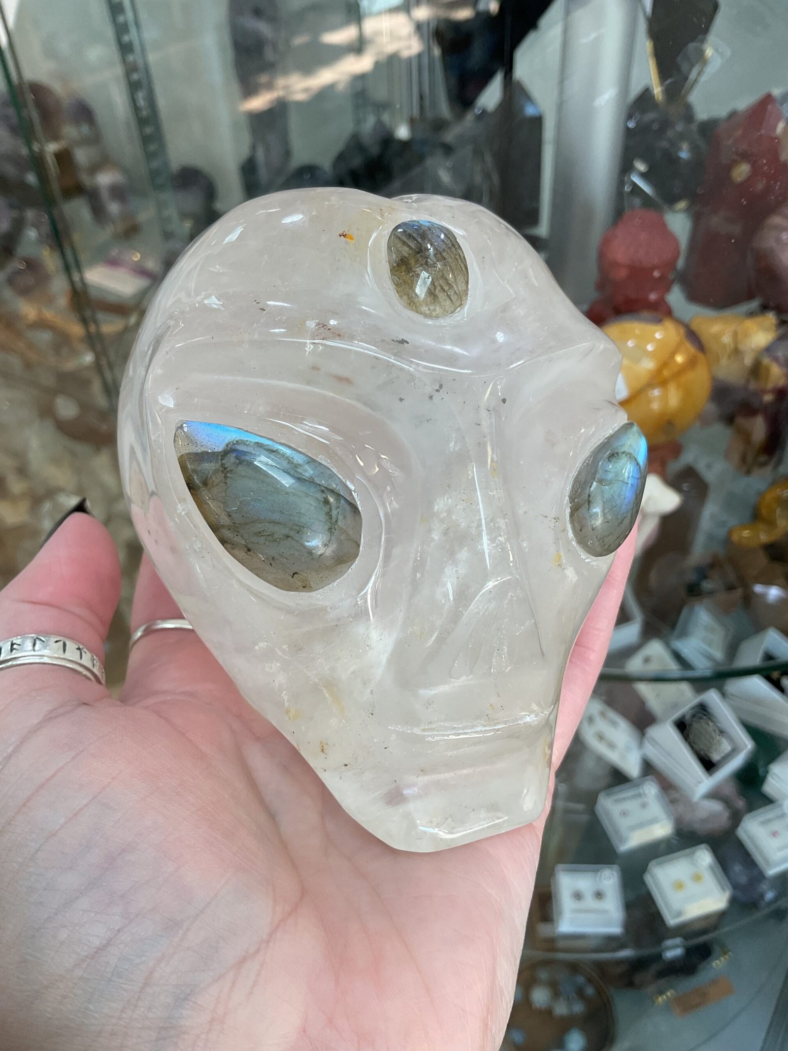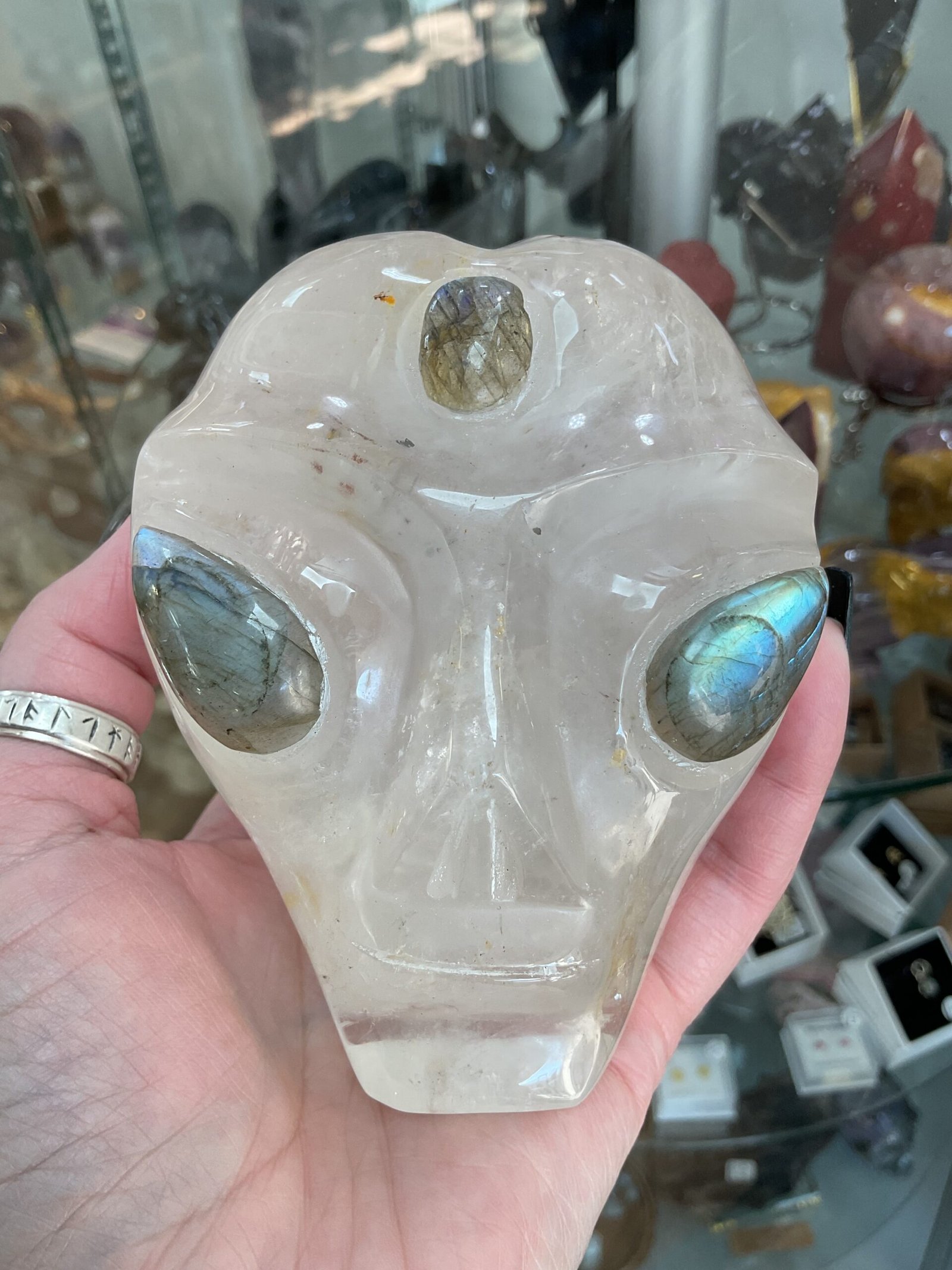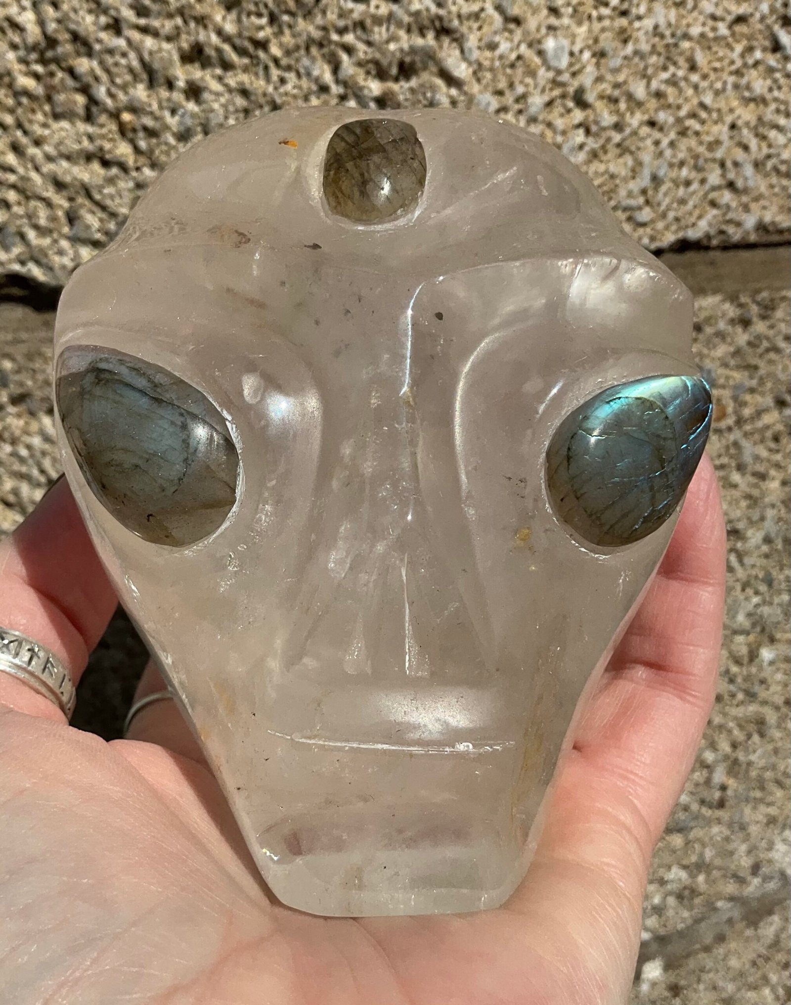 Clear Quartz Alien Head with Labradorite Eyes Carving