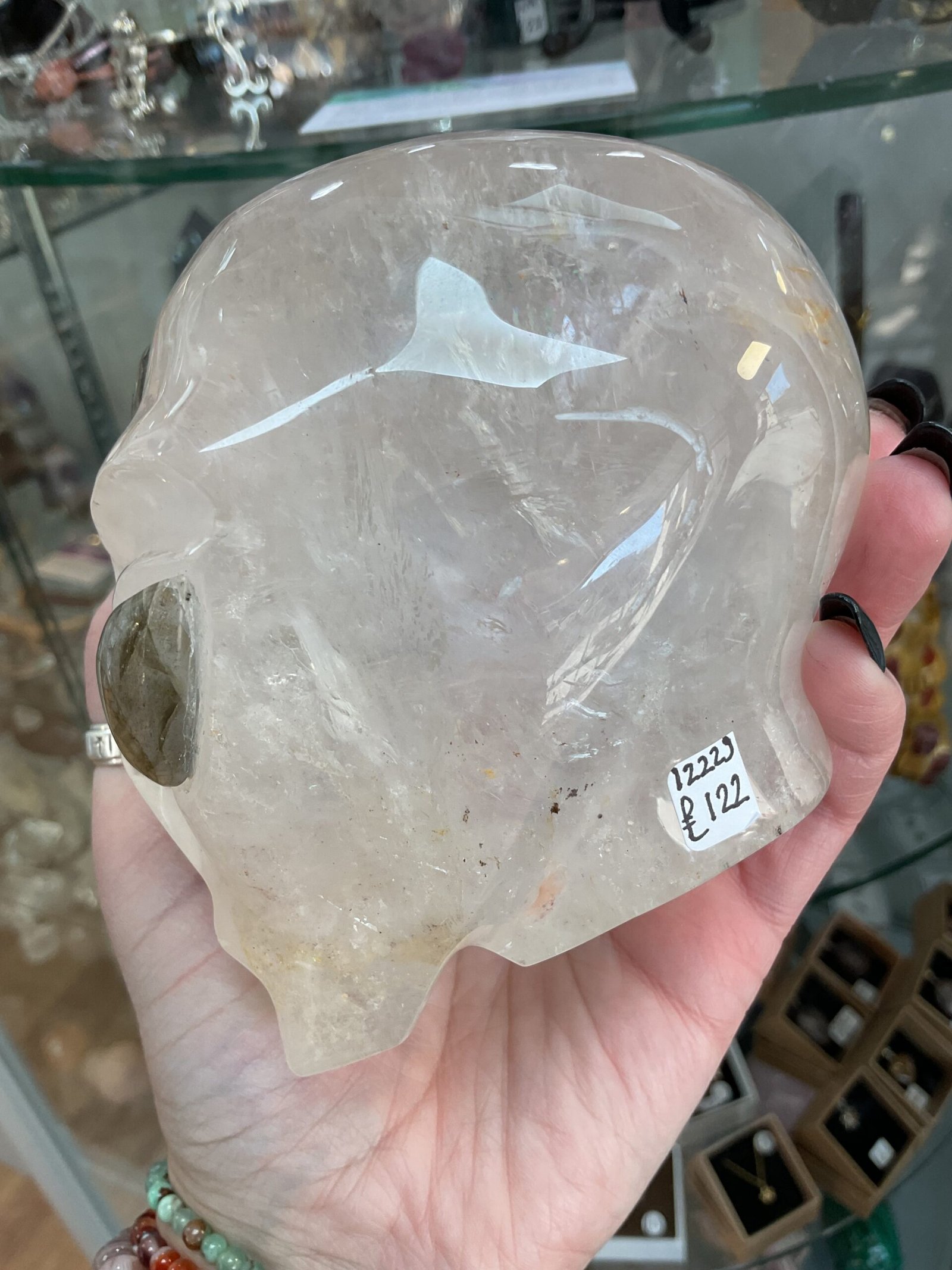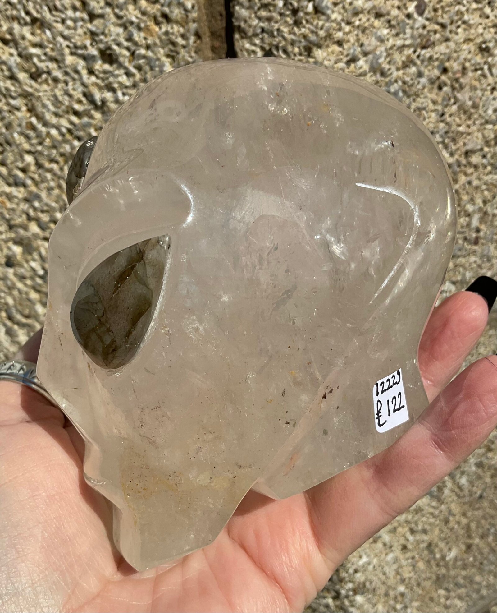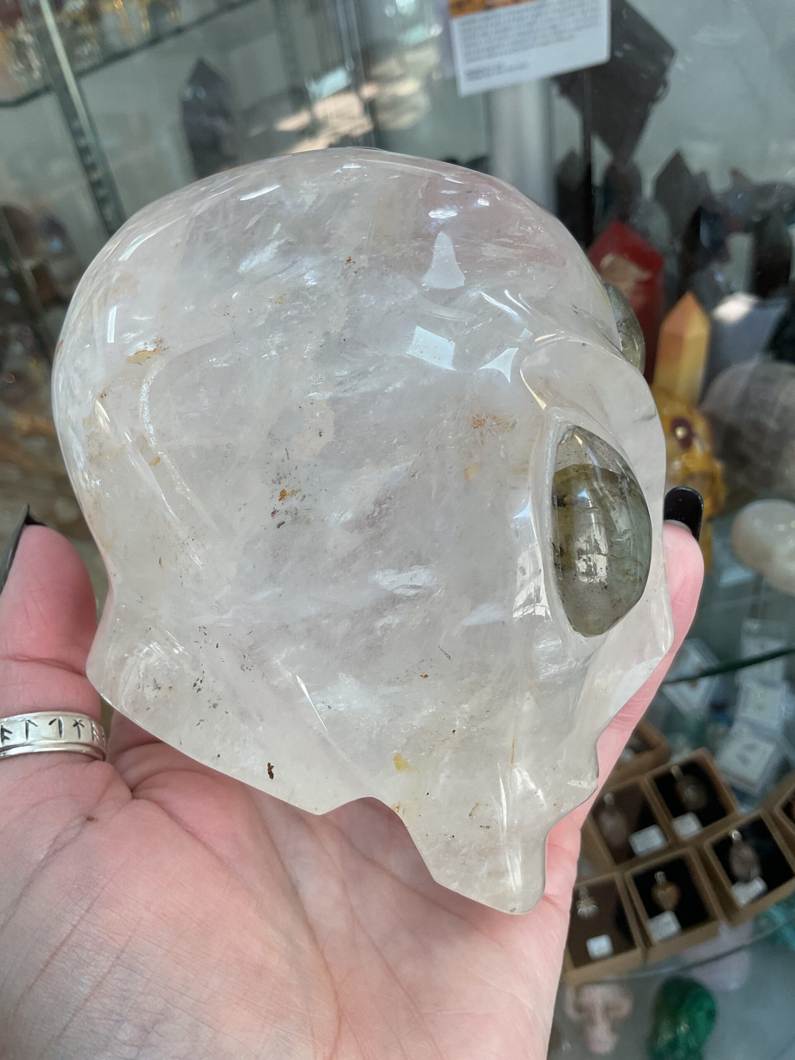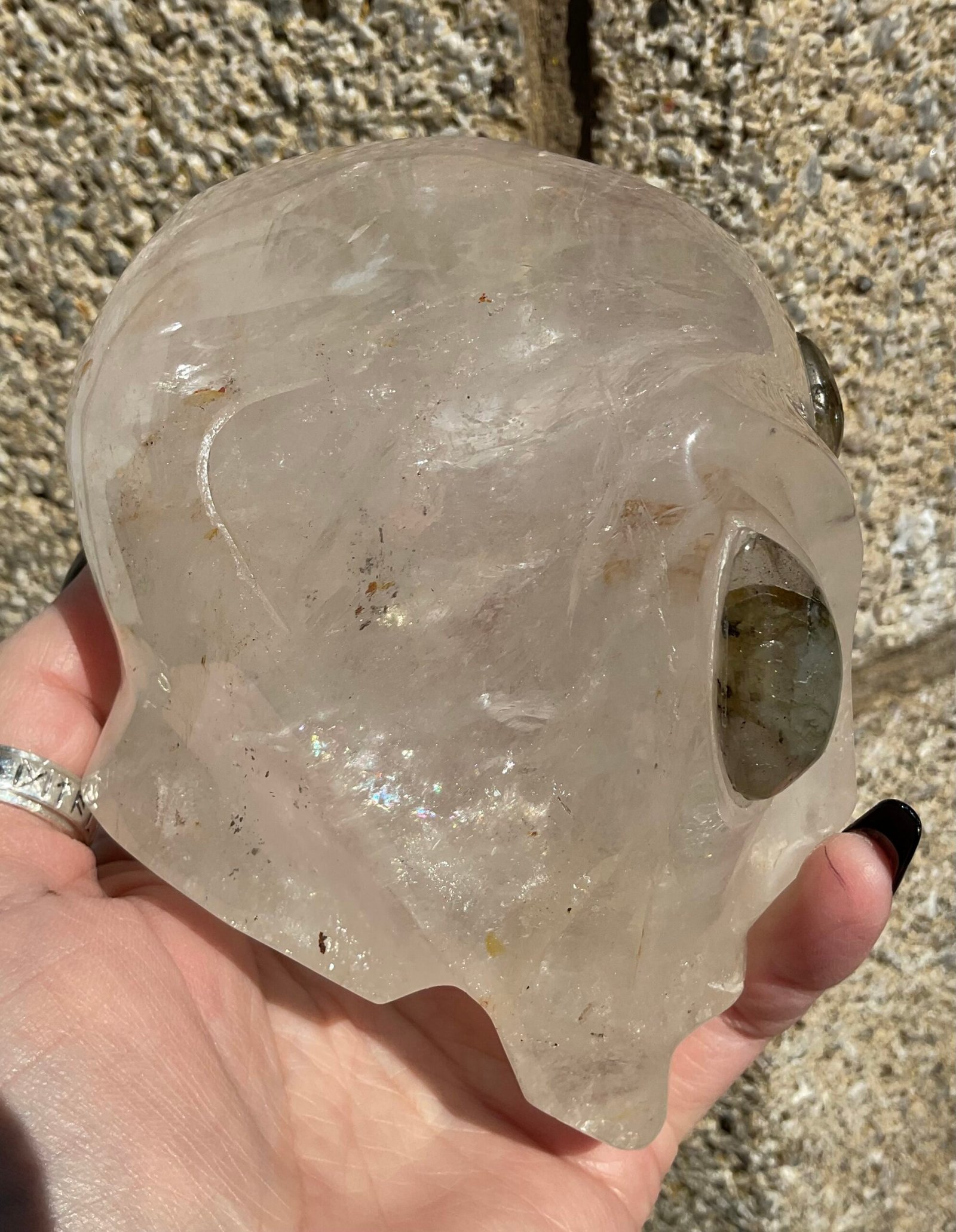 Clear Quartz Alien Head with Labradorite Eyes Carving