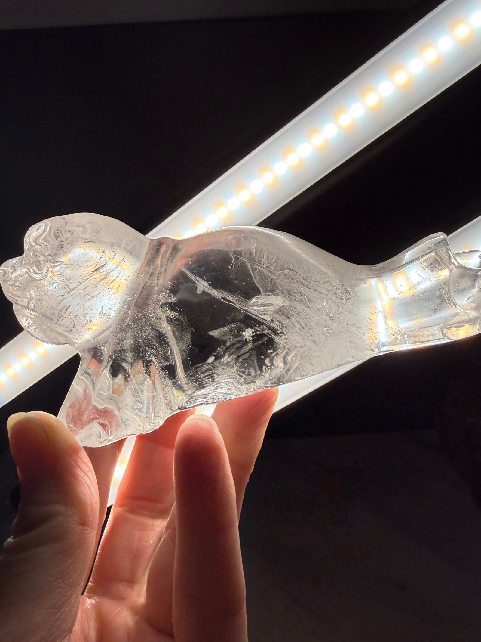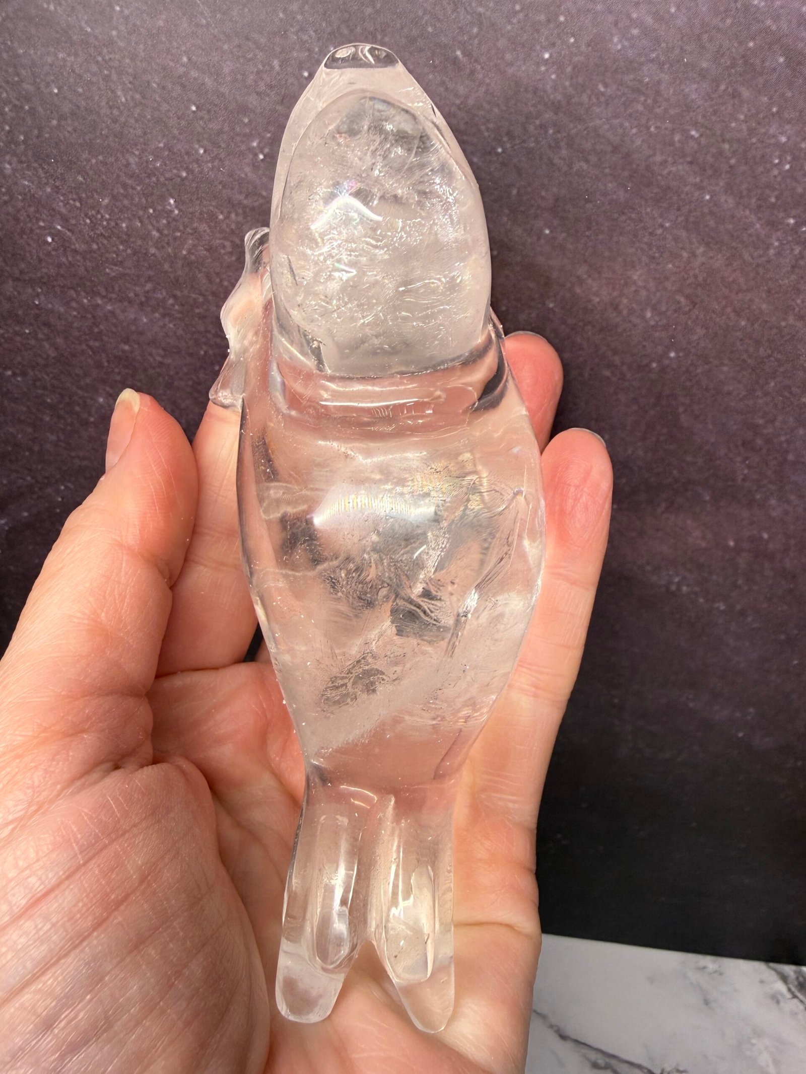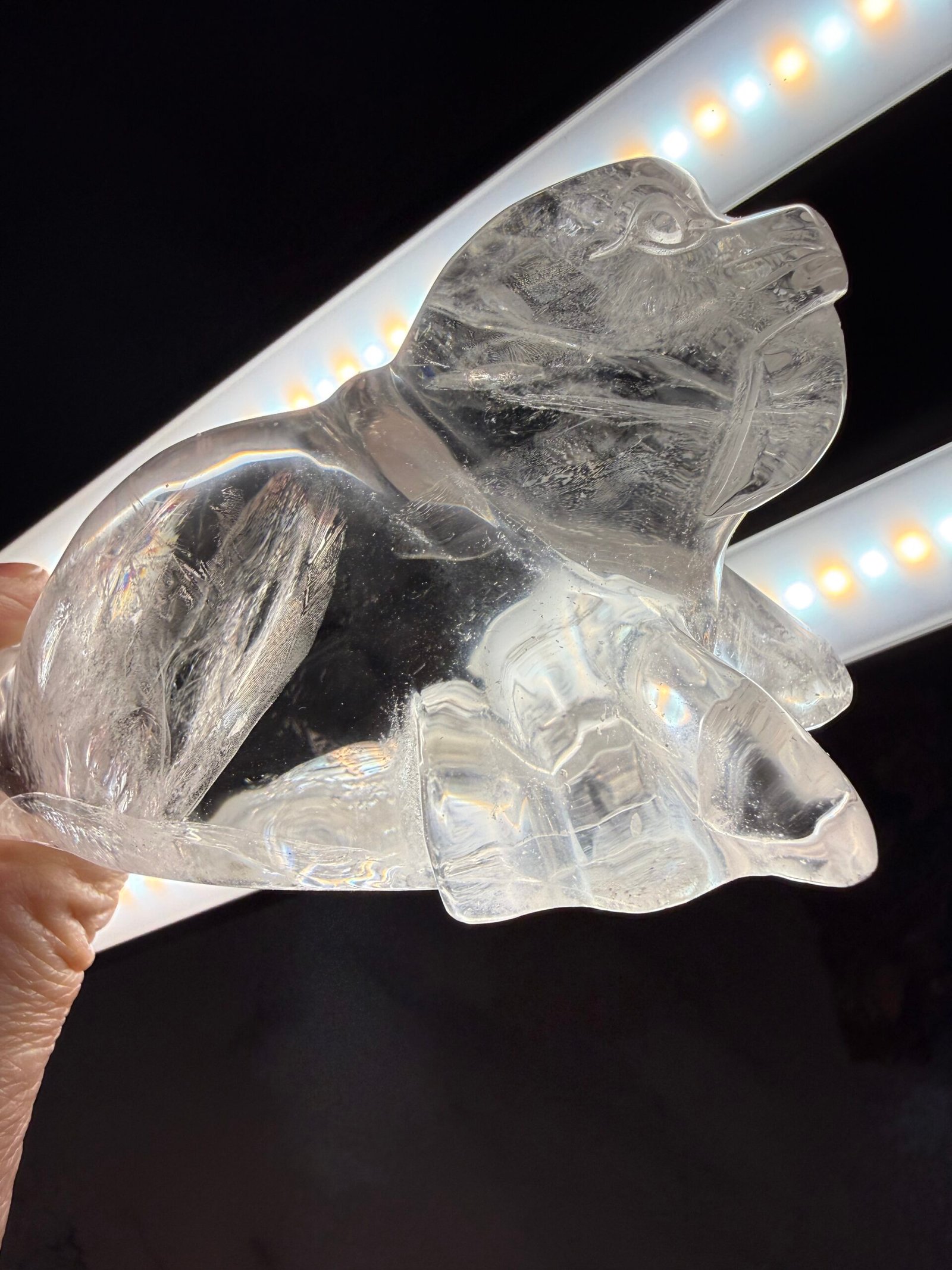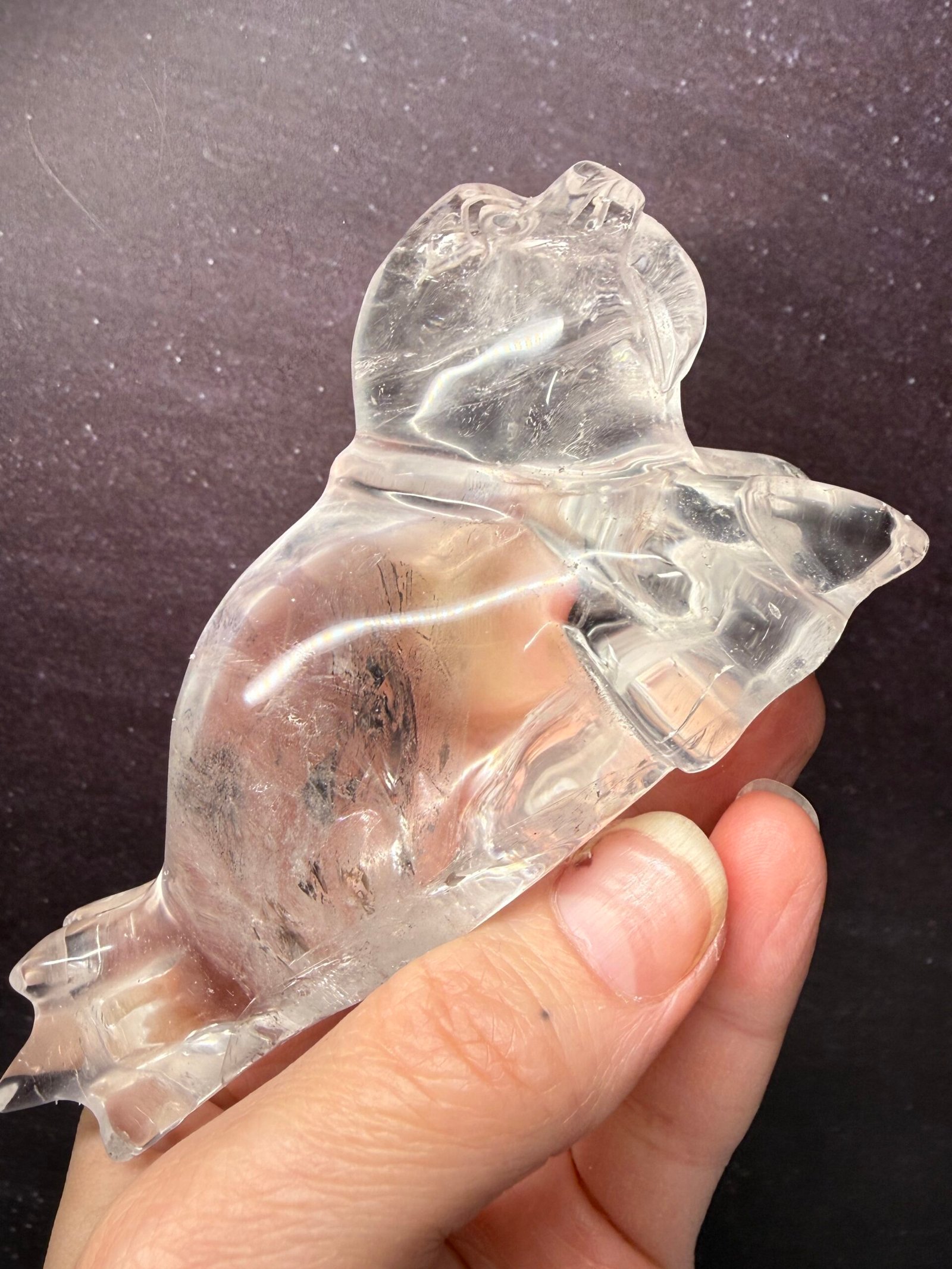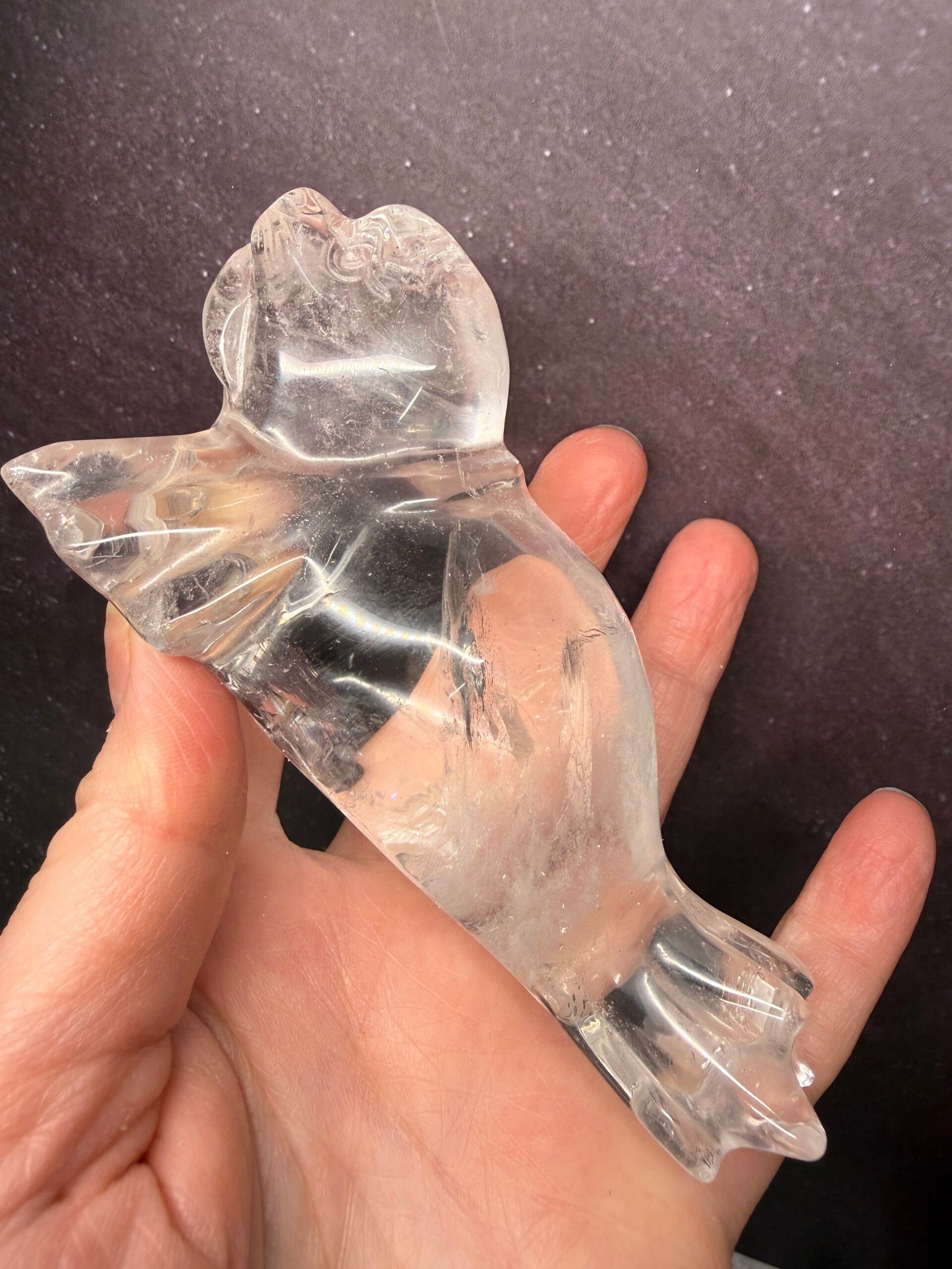 This hand carved clear Quartz walrus has so much character. This high quality clear Quartz has wonderful clarity.