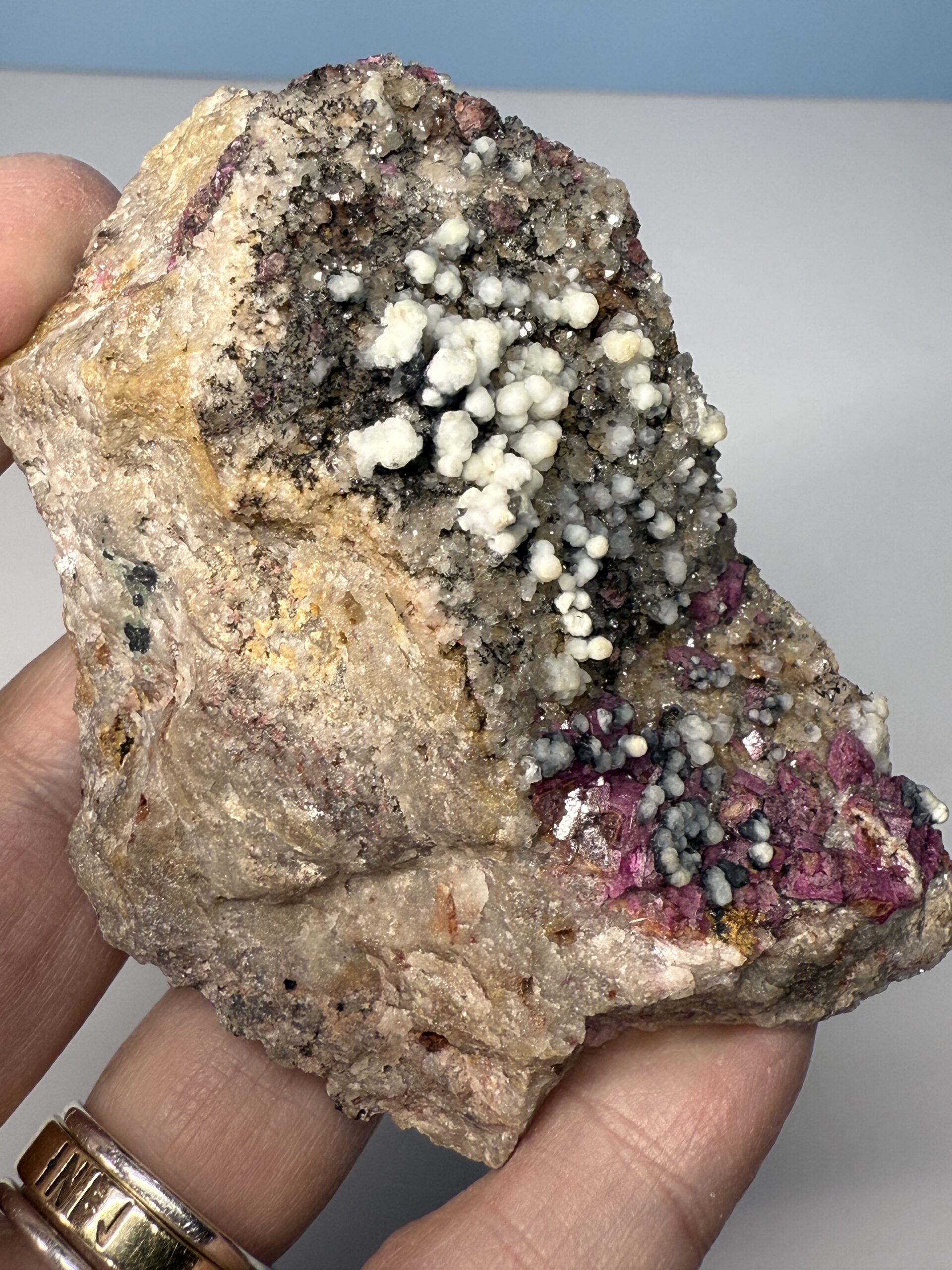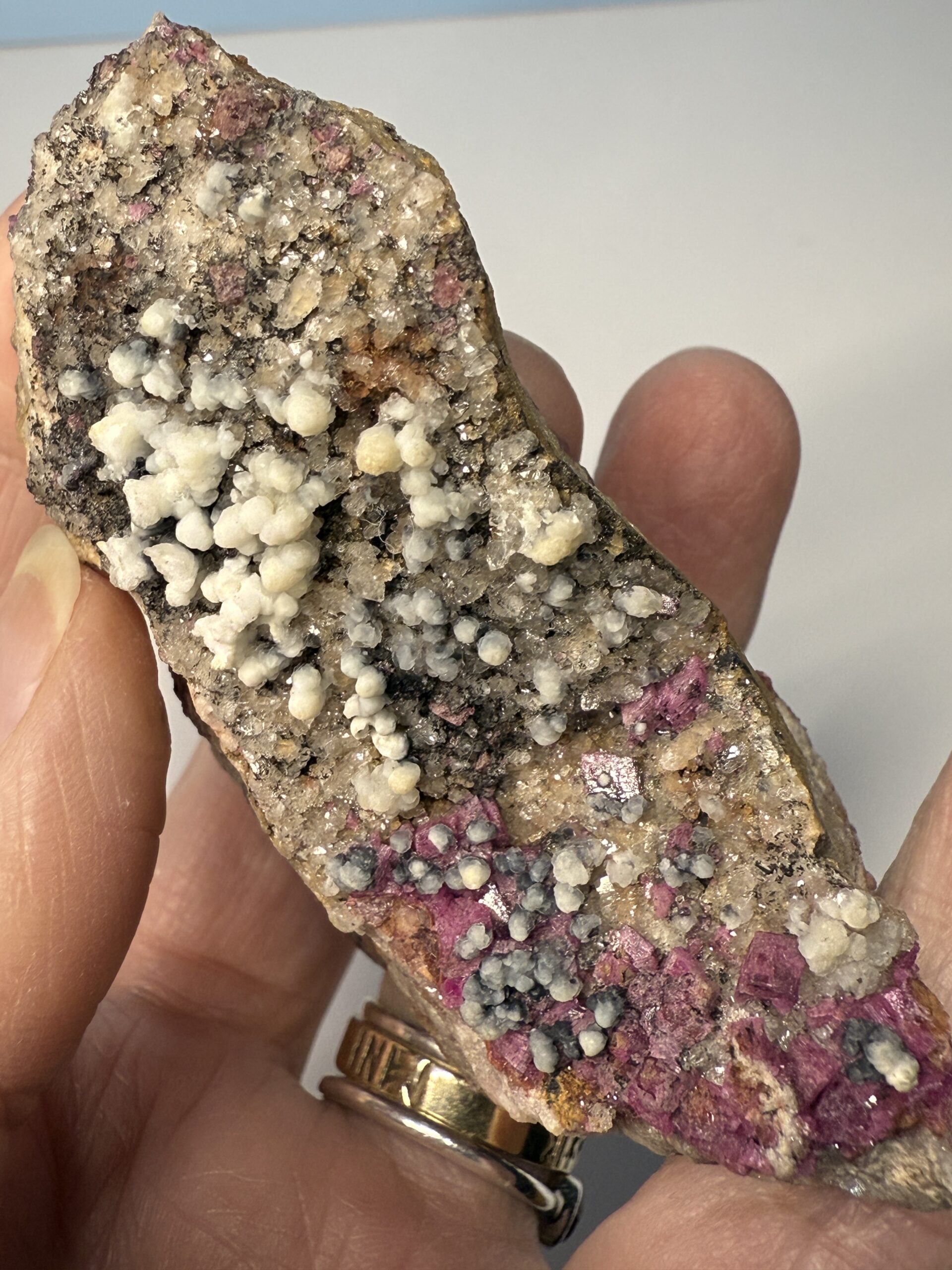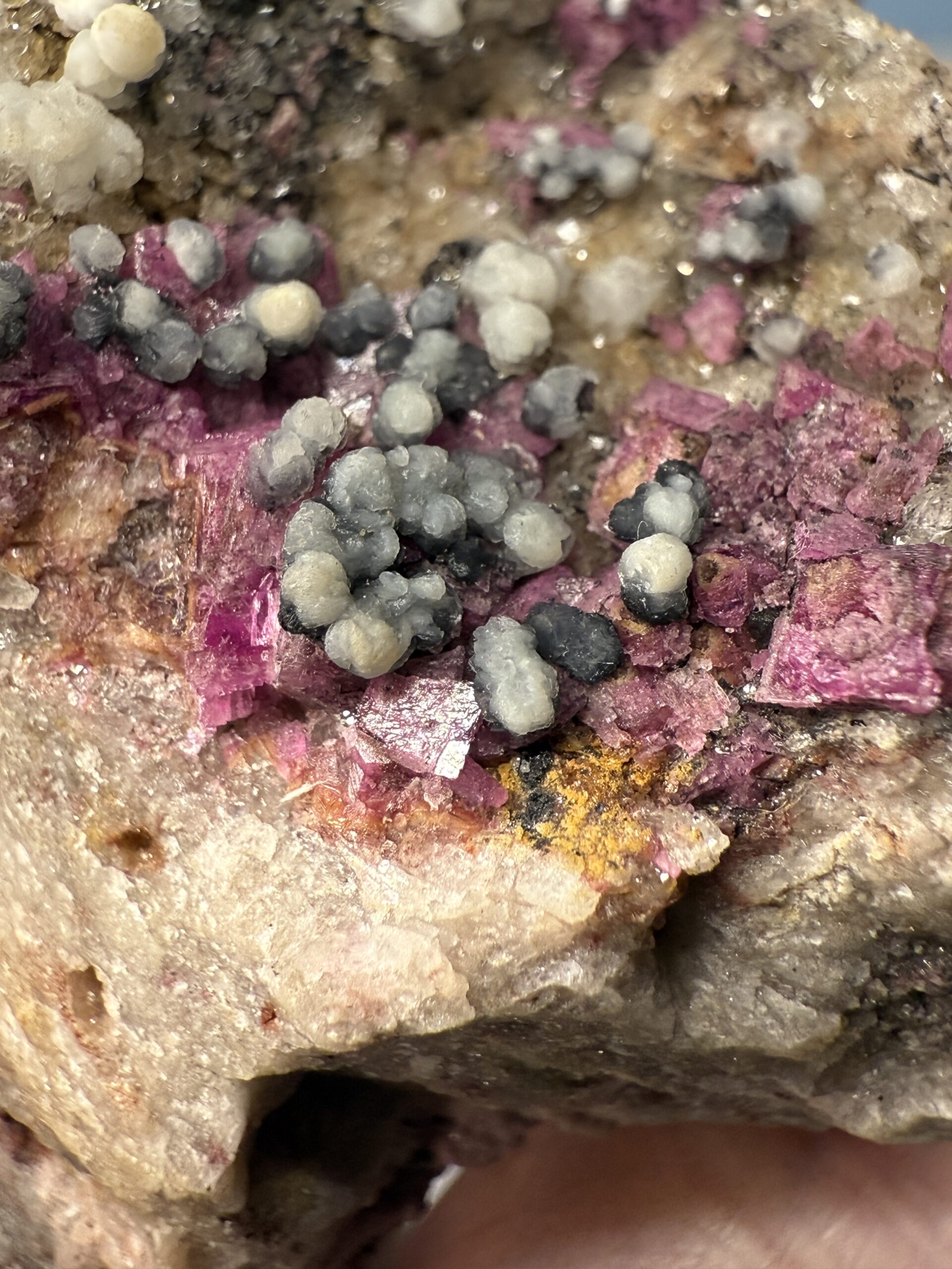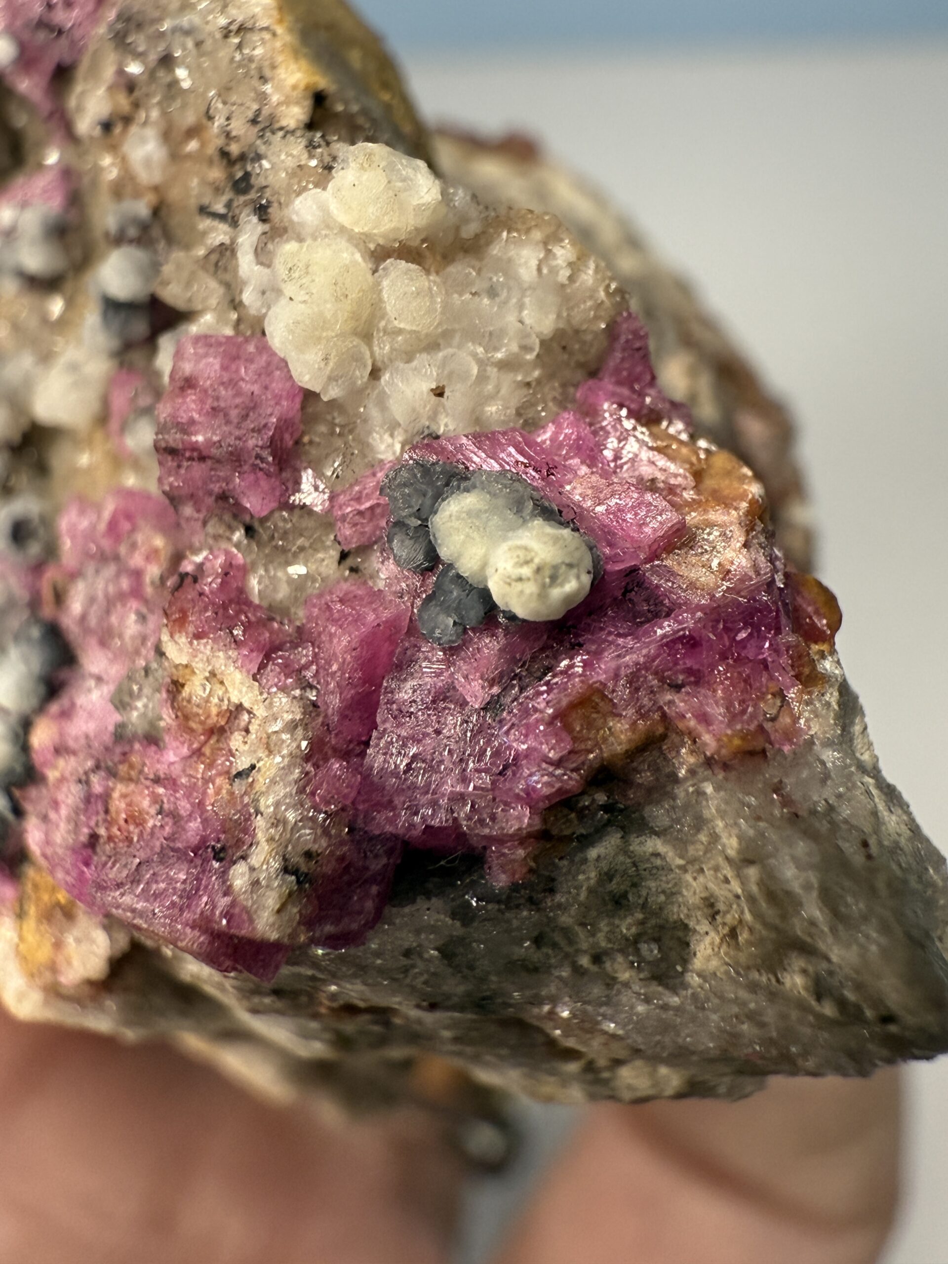 Salrose, a term derived from the French “salt rose,” represents the exquisite crystalline pink mineral found in the Congo. Often mistakenly labelled as Pink Calcite or Cobalt Calcite, Salrose encompasses specimens that are Cobalt-bearing Dolomite or Calcite. Originating from various regions in Southern and Central Congo, this mineral variety presents challenges in distinguishing between Dolomite and Calcite variants, especially in microcrystalline forms. As a result, Salrose serves as a convenient umbrella term encompassing both minerals without the need for precise mineral identification. Some specimens exhibit associations with Malachite or other copper-based minerals, not all display these characteristics. Salrose specimens offer a diverse spectrum, ranging from delicate milky pink crystals to the exceptionally rare highly optic deep pink gemmy material.
