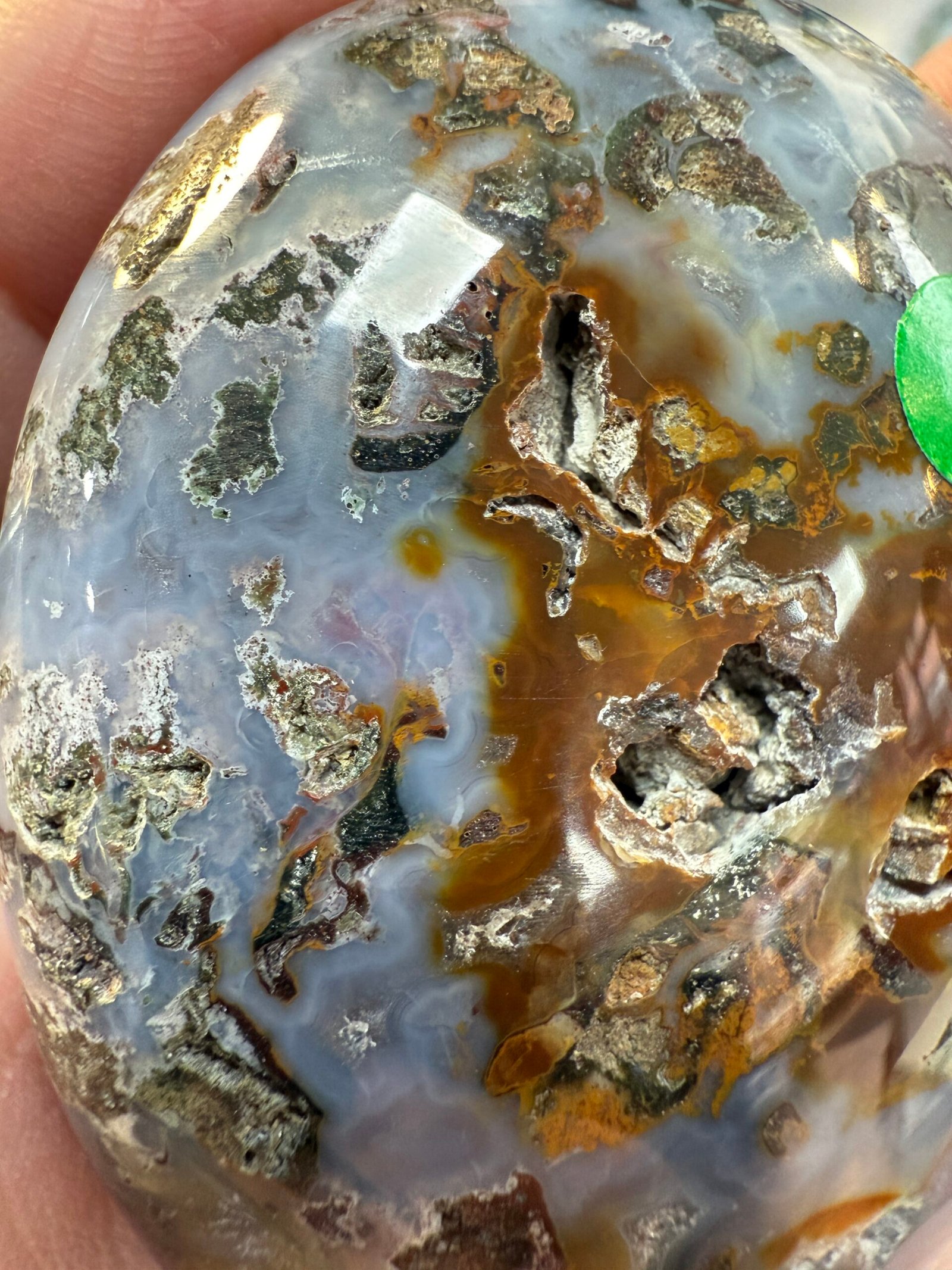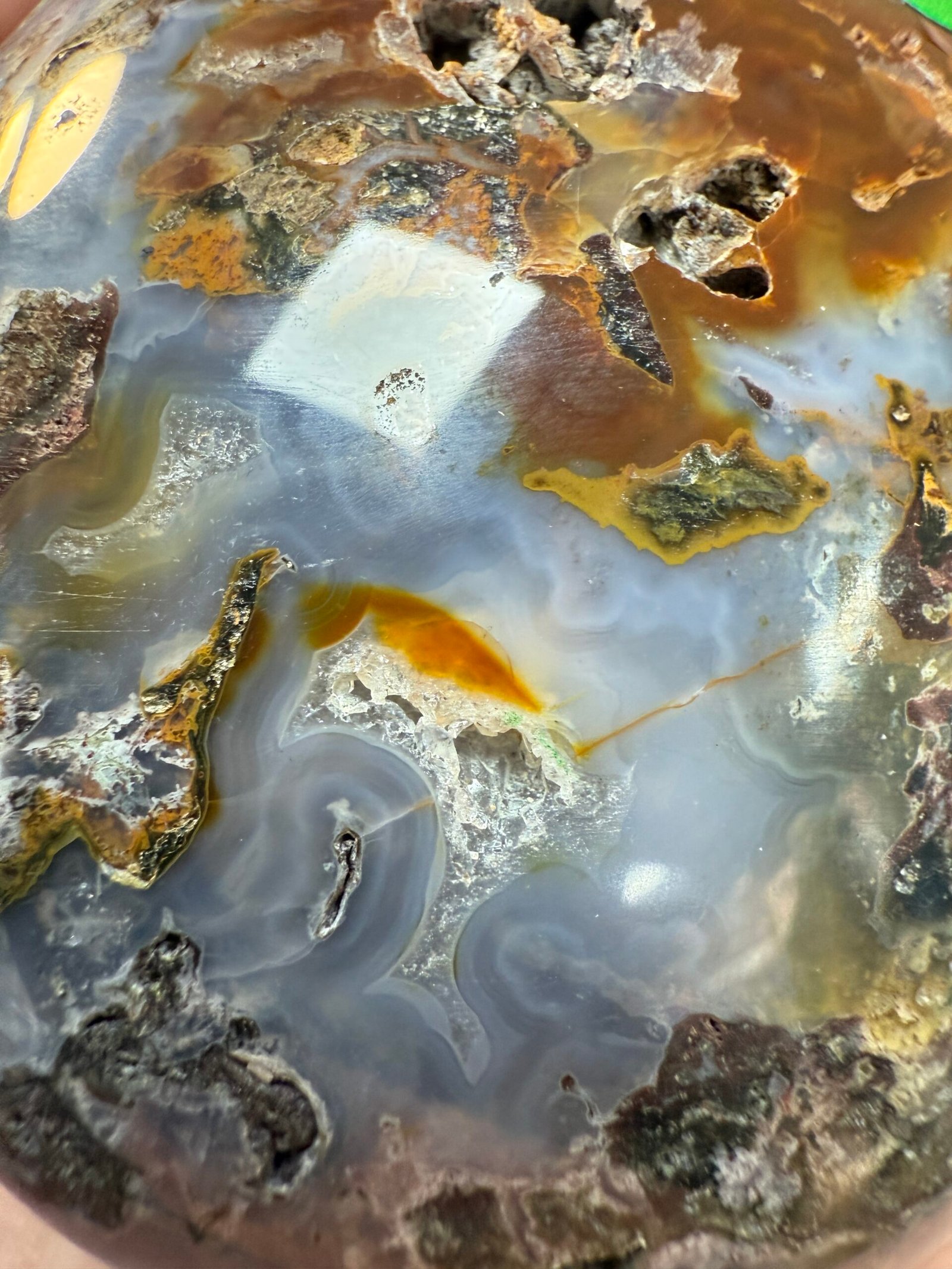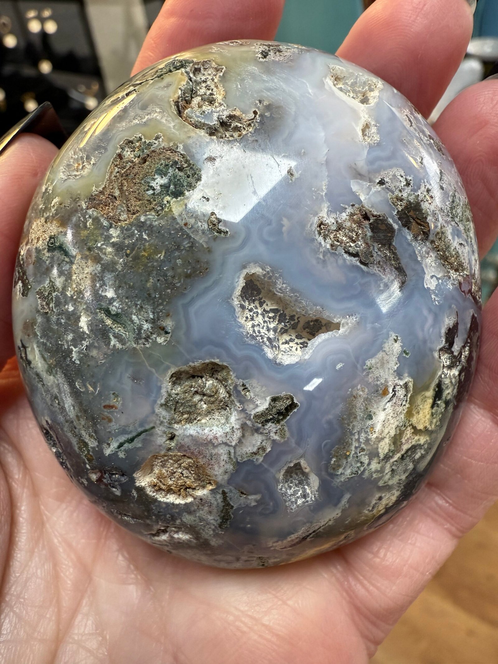 You’ll also notice it contains numerous cavities of druzy quartz adding hints of sparkle.