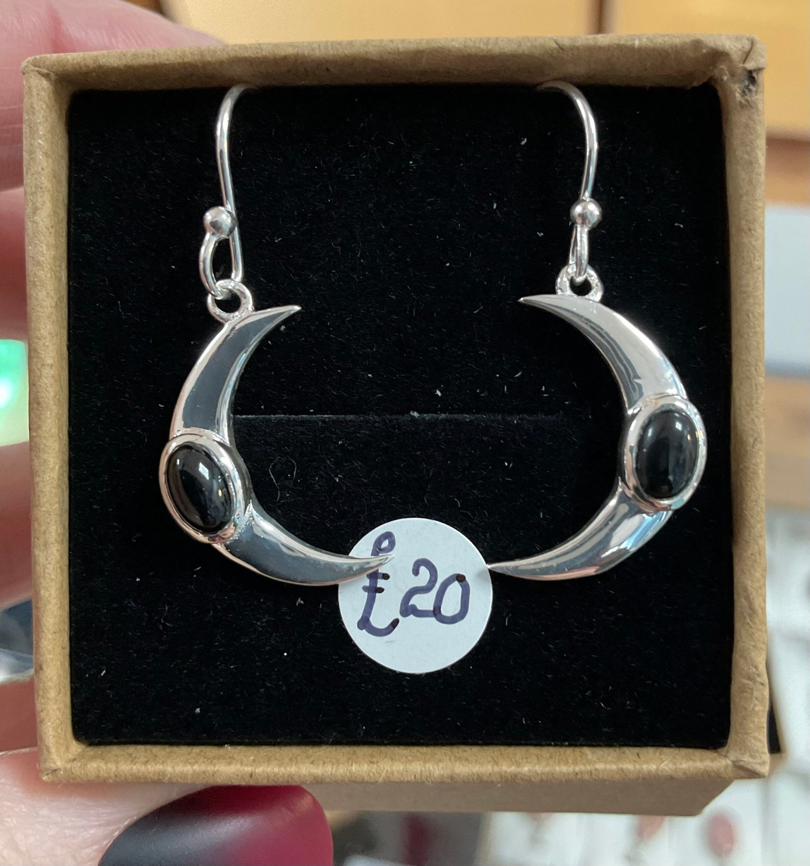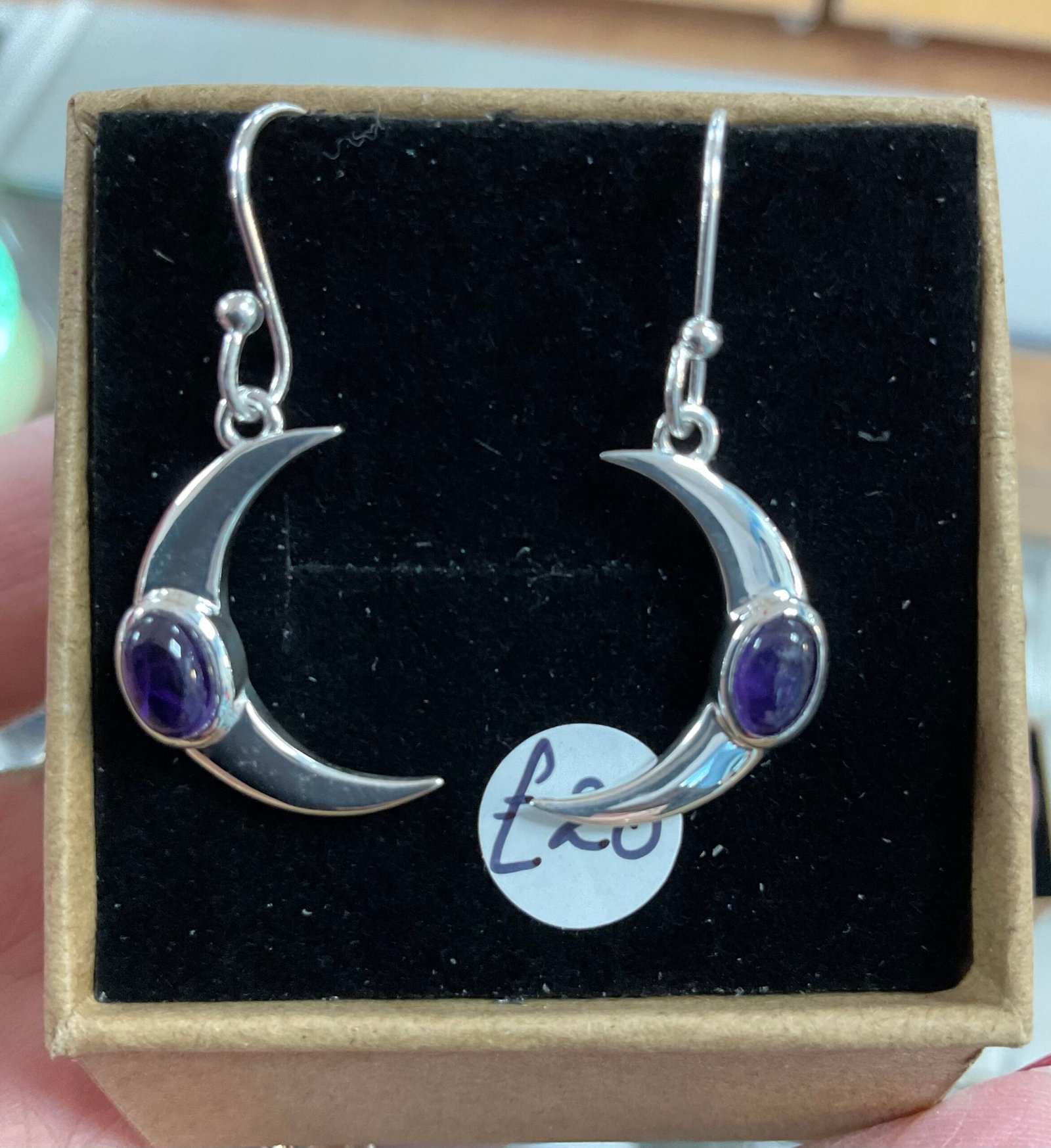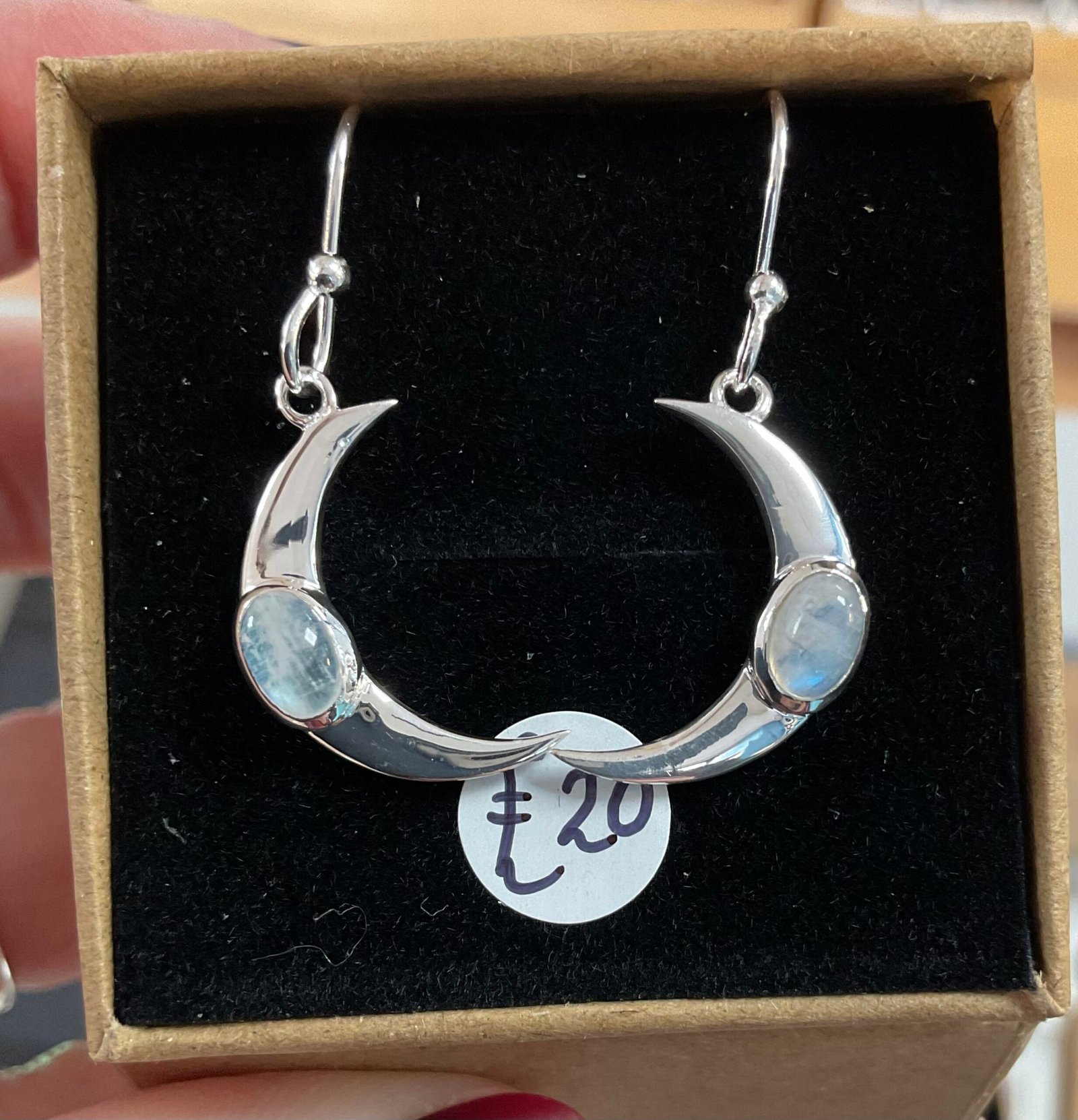 925 Sterling Silver crescent moon earrings, with gemstone.