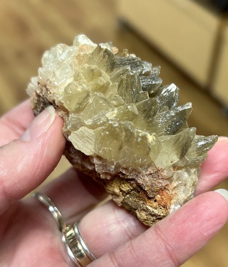 Dogtooth calcite helps stimulate the Third Eye and Crown chakras bringing an enhanced connection with higher levels of consciousness and promoting spiritual ascension. The characteristic sharp terminations of dogtooth calcite are perfect for directing energy and using it as a tool in psychic surgery to release energy blockages. It can be swept through the auric field to clear old, limiting thought patterns and habits. Dogtooth calcite is also a helpful stone to aid in remembering and integrating lessons from past lives.