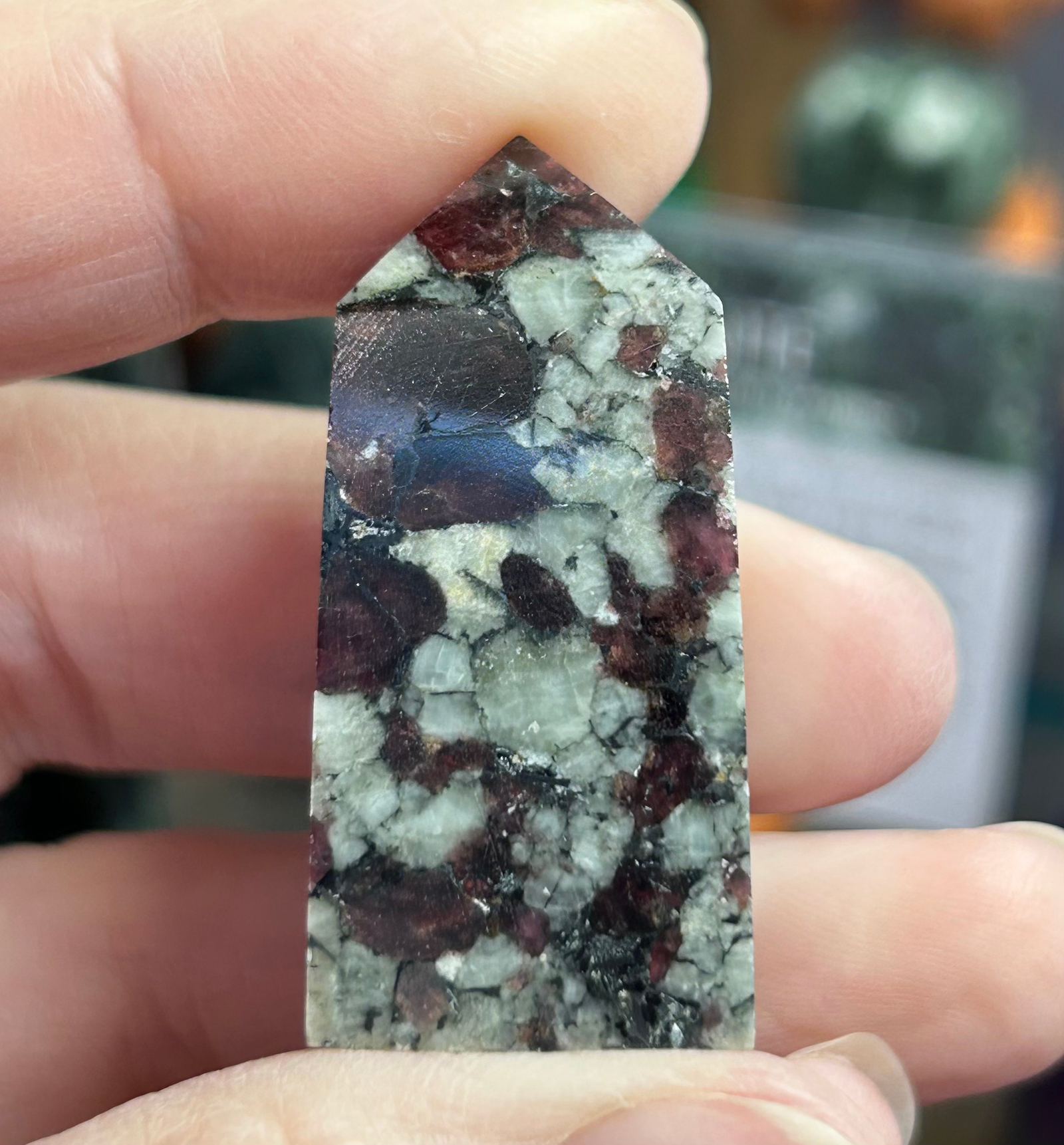 Eudialyte is an uplifting stone that enhances feelings of love towards oneself and others. It cleanses and heals the heart chakra and encourages one to let go of past hurt in order to move forward in life. It is believed to