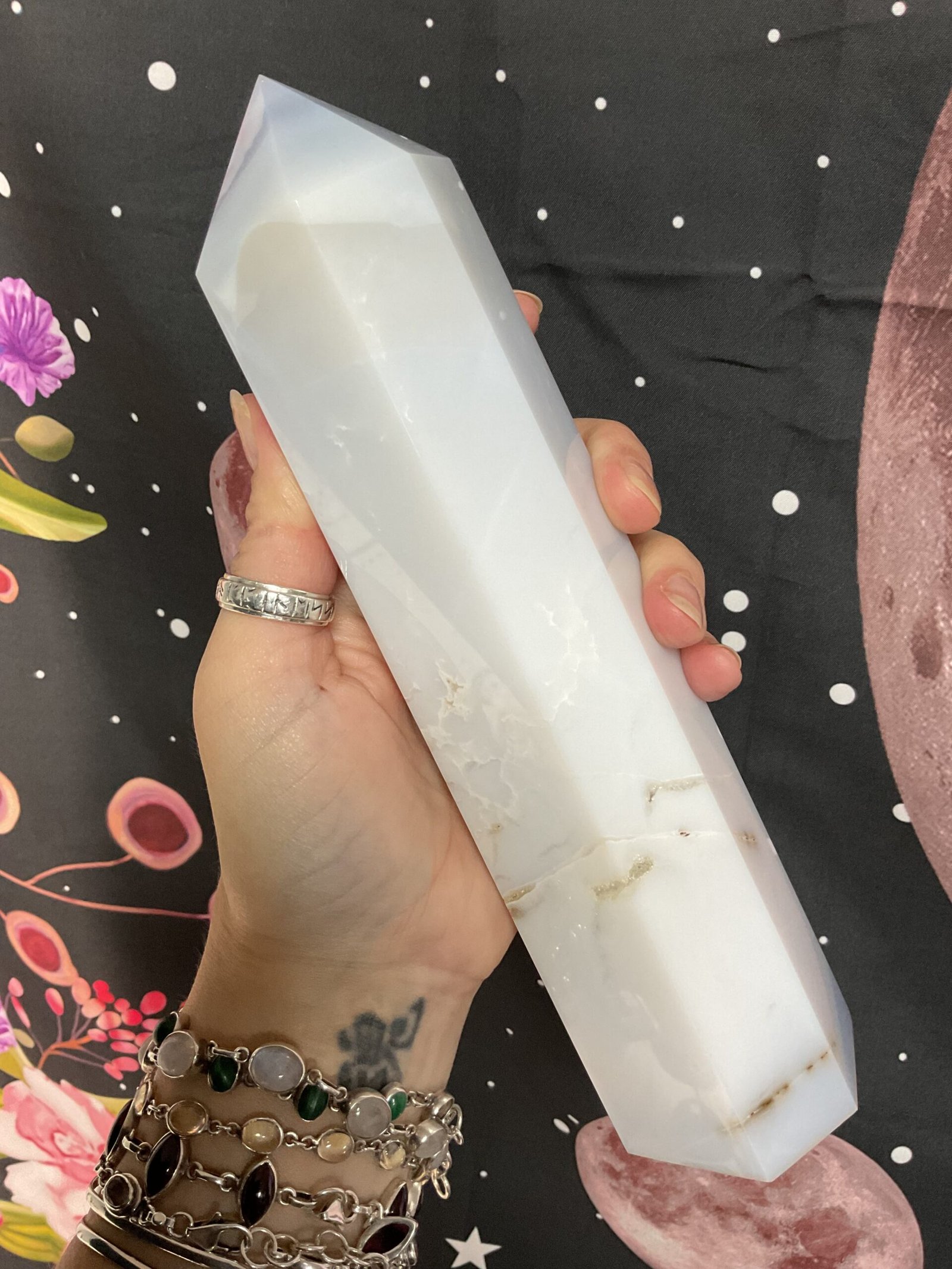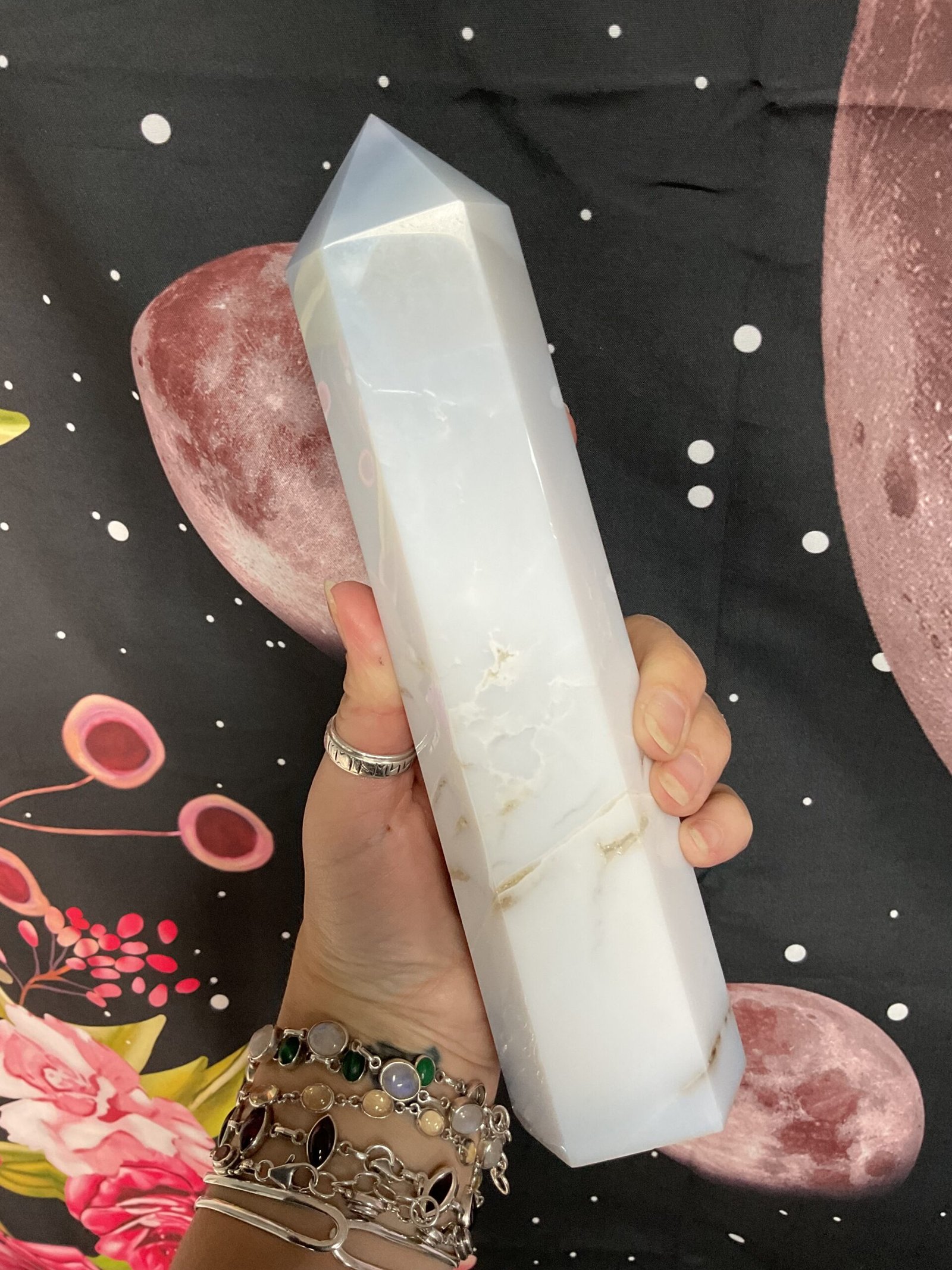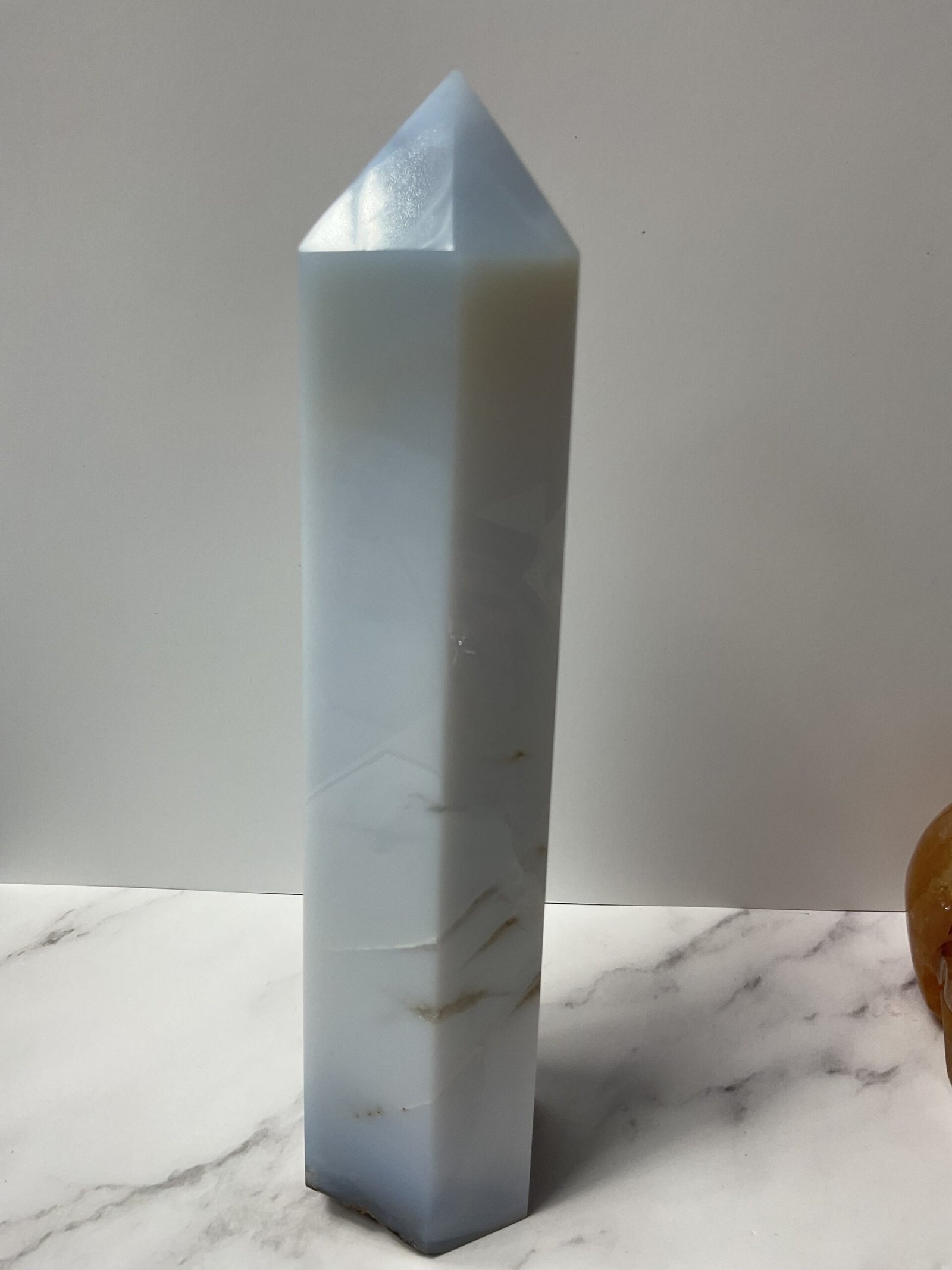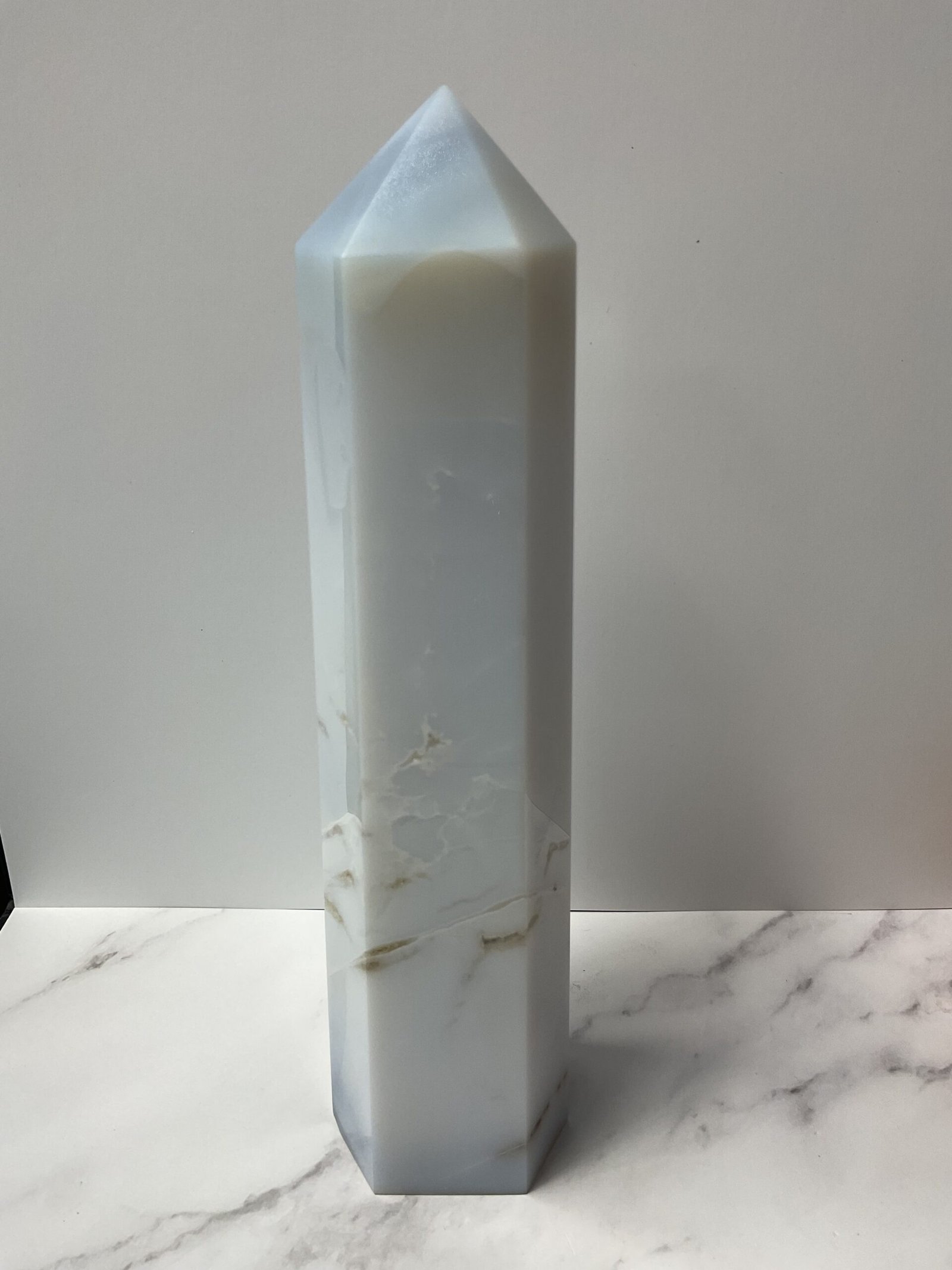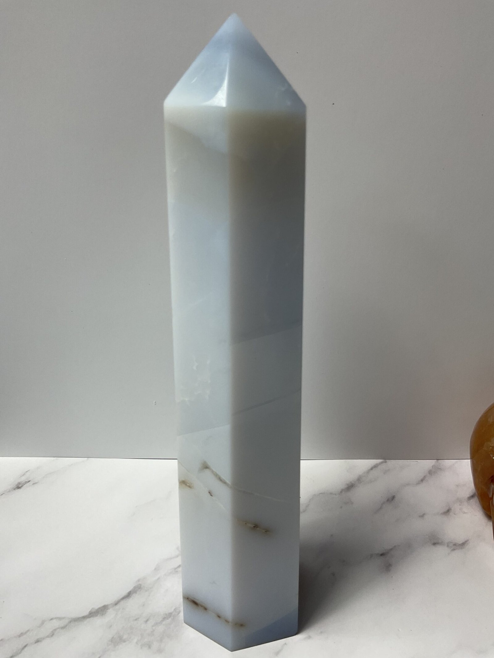 Blue Chalcedony is a strong representative of the Blue Ray. It enhances communication with the invisible realms and stimulates telepathy. It gives one the courage to speak from the heart and communicate their true feelings with others. It is an excellent stone for public speaking as it promotes calm expression of one’s thoughts. Physically, it is believed to improve the immune system, heal the lungs, and lower blood pressure.