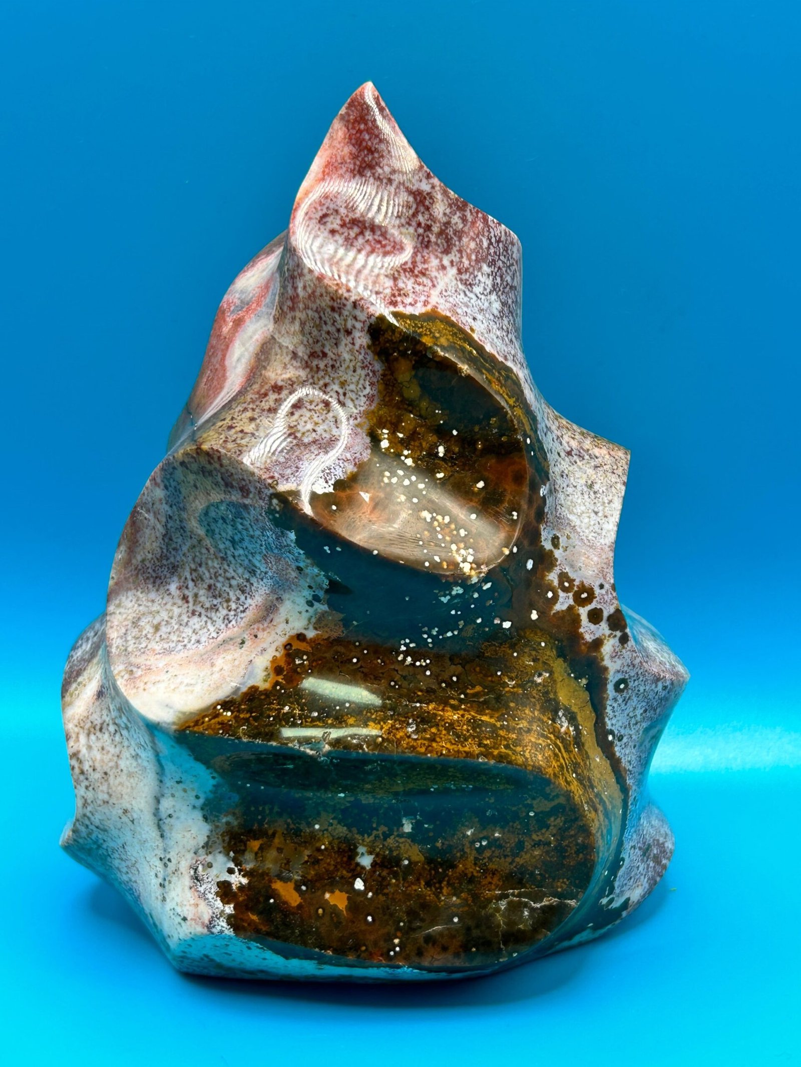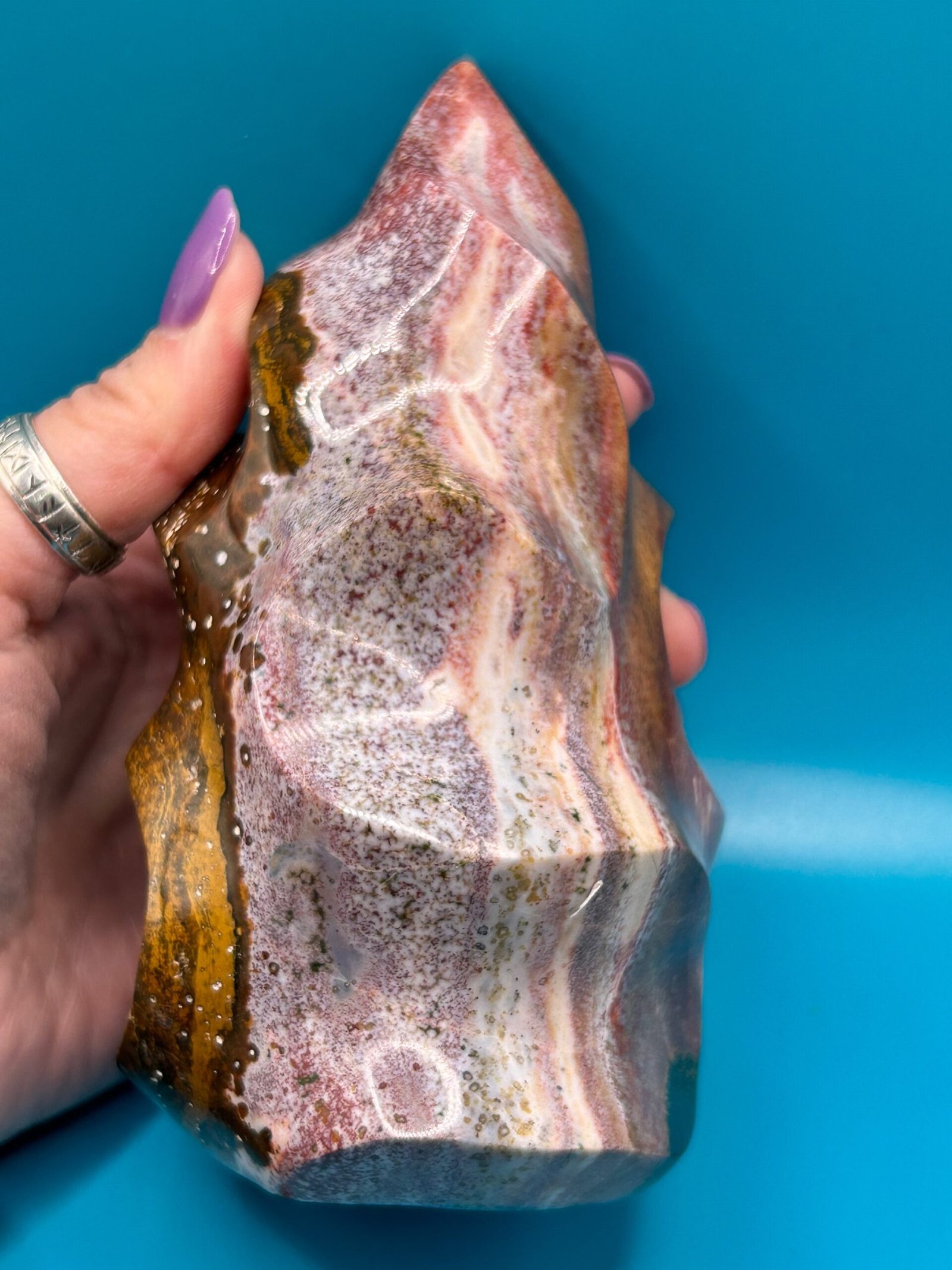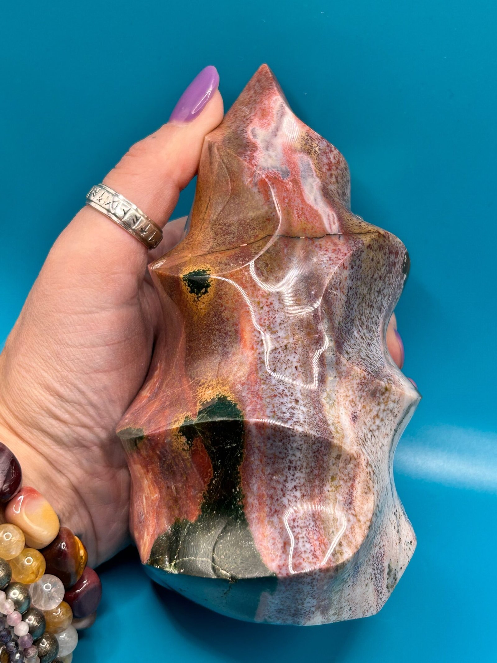 Ocean Jasper is a unique stone that carries the healing energy of the ocean. It releases suppressed emotions, bringing them to the surface to allow for transformation and healing. It opens and heals the heart chakra, and reminds one to be accepting of the cycles of life. It helps one look to the future with hope, making it beneficial for anyone suffering with depression, heartache, grief, or emotional trauma.
