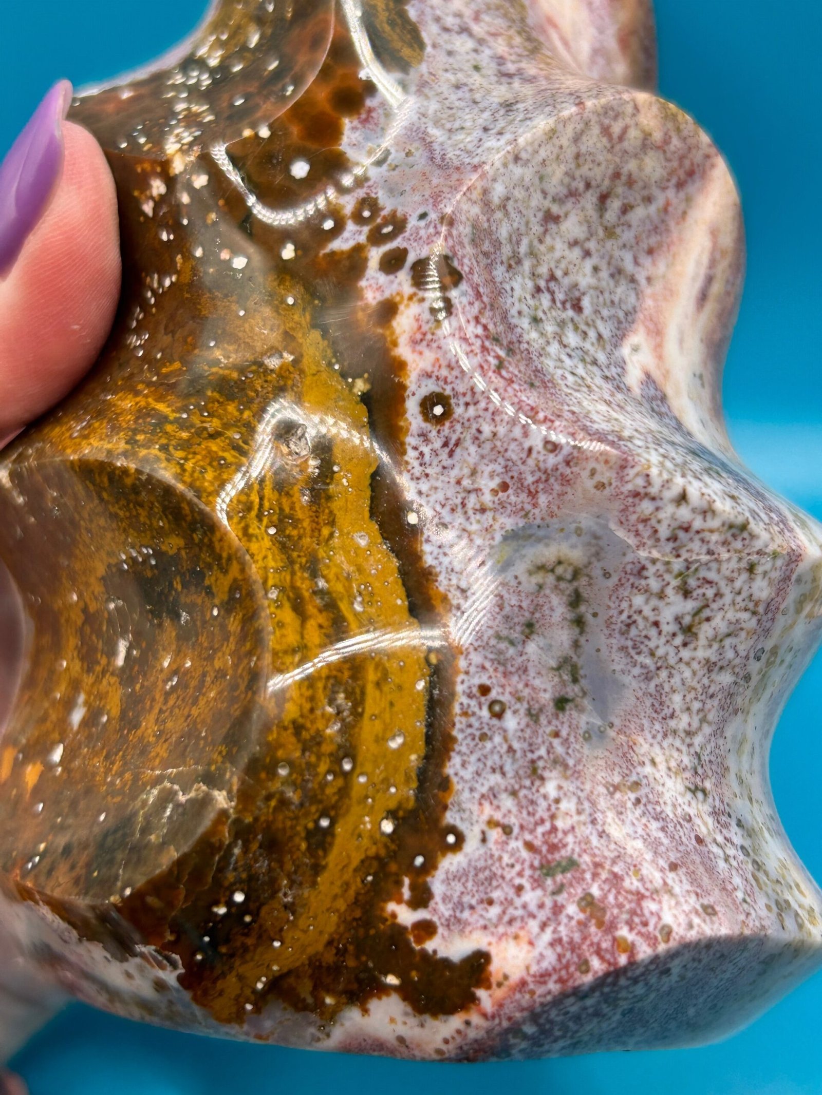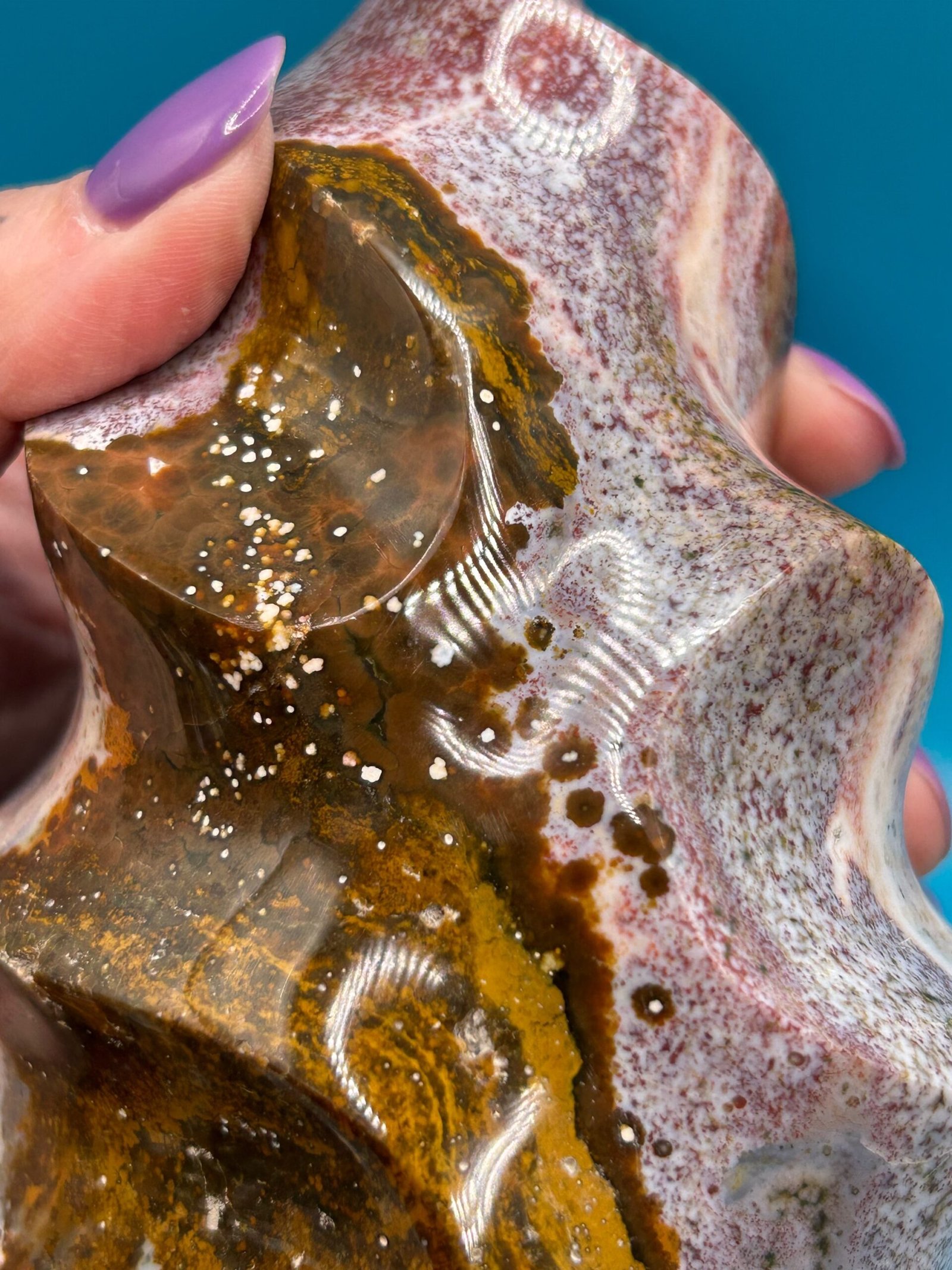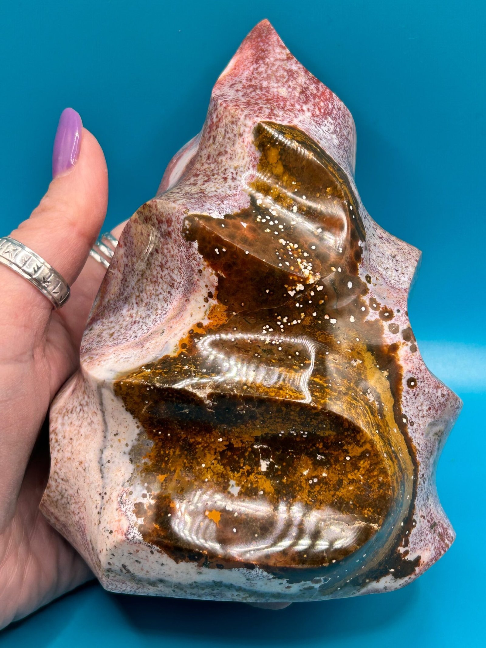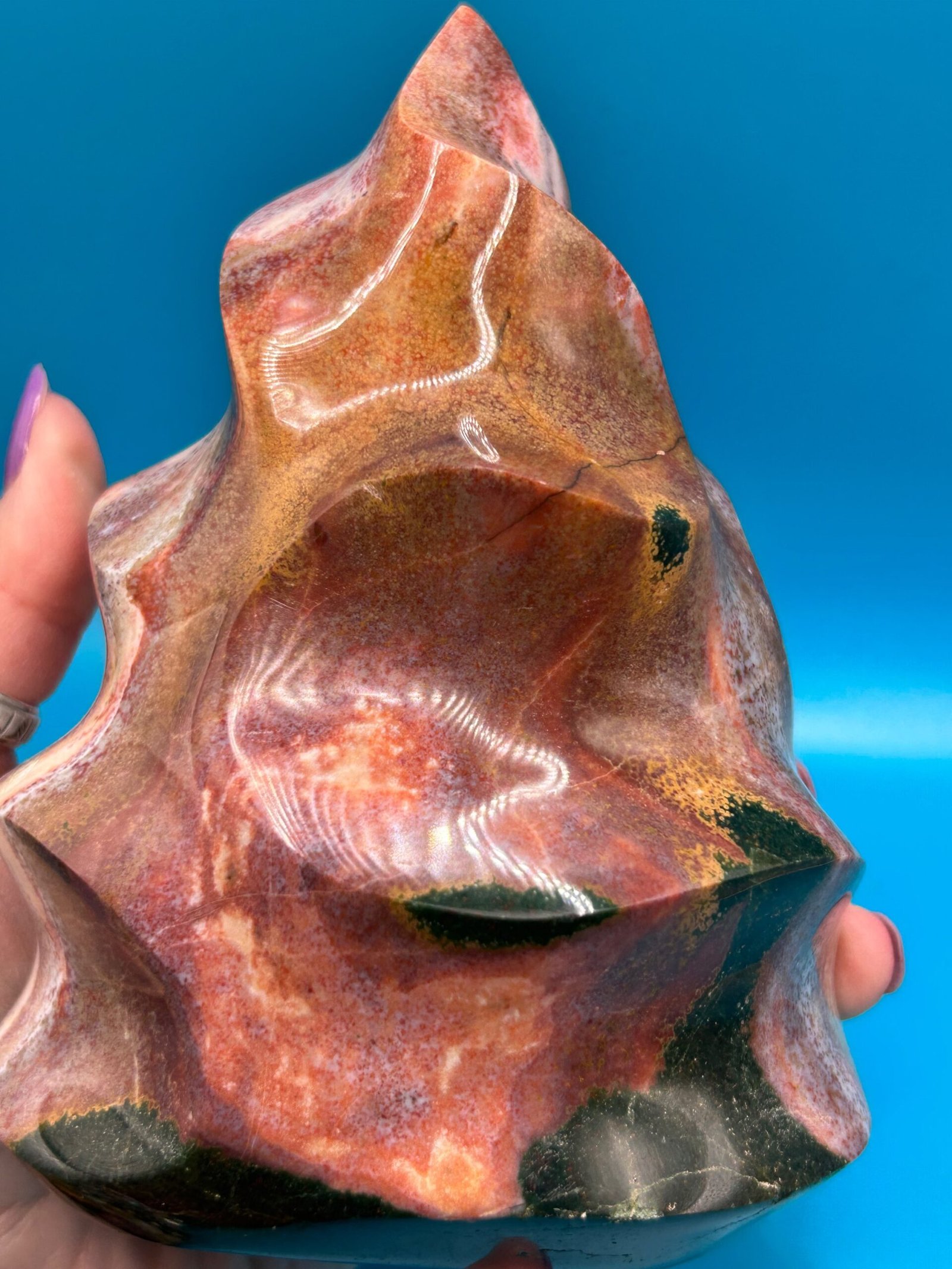 Ocean Jasper is a unique stone that carries the healing energy of the ocean. It releases suppressed emotions, bringing them to the surface to allow for transformation and healing. It opens and heals the heart chakra, and reminds one to be accepting of the cycles of life. It helps one look to the future with hope, making it beneficial for anyone suffering with depression, heartache, grief, or emotional trauma.