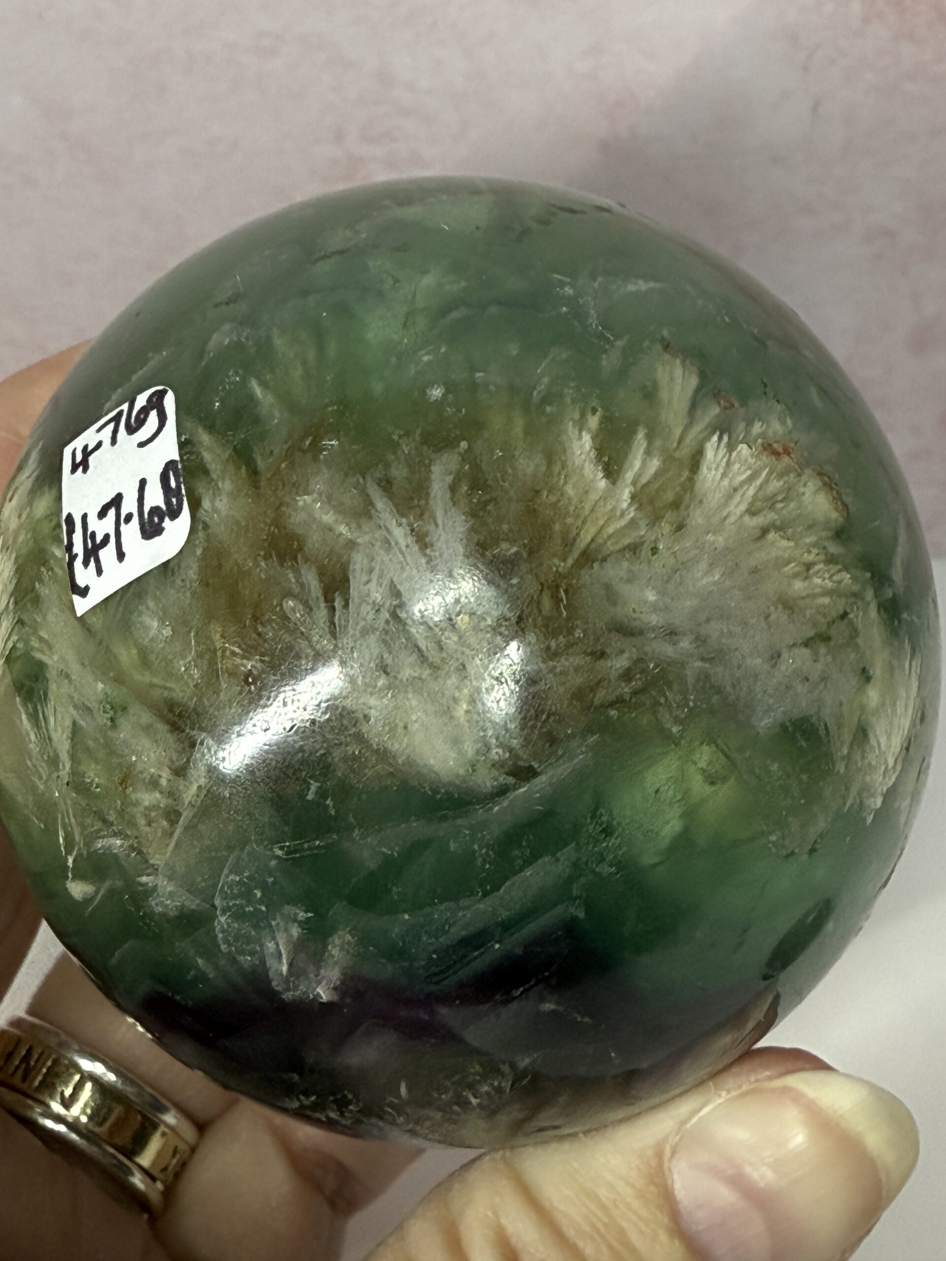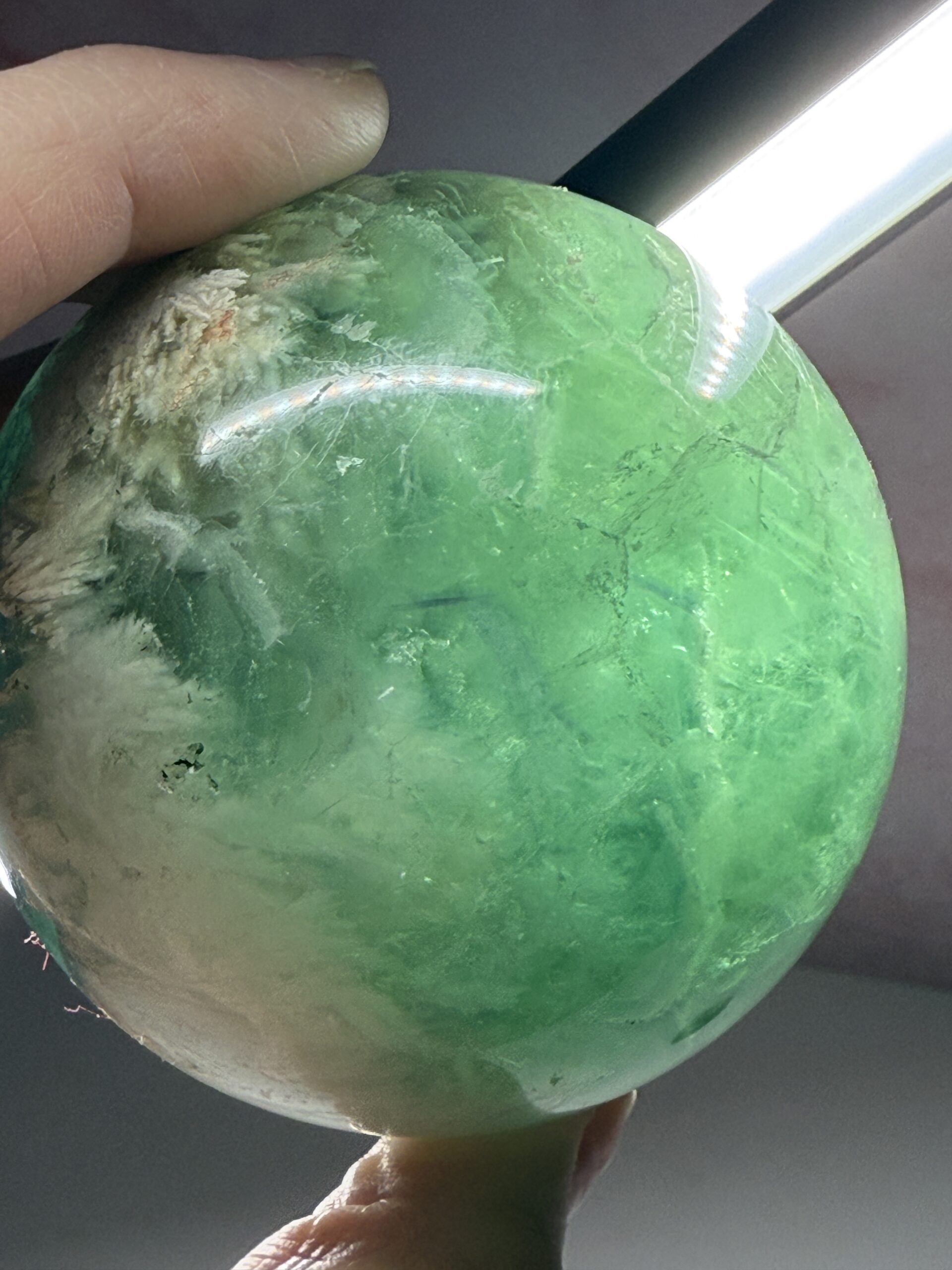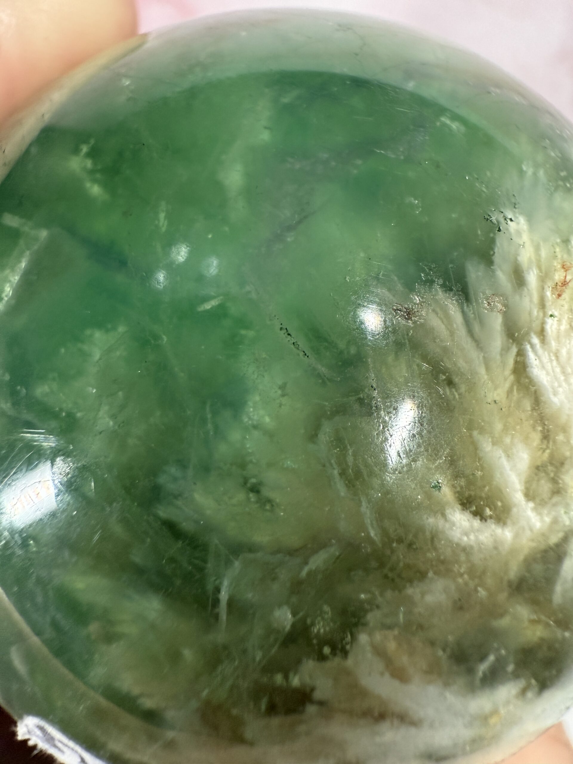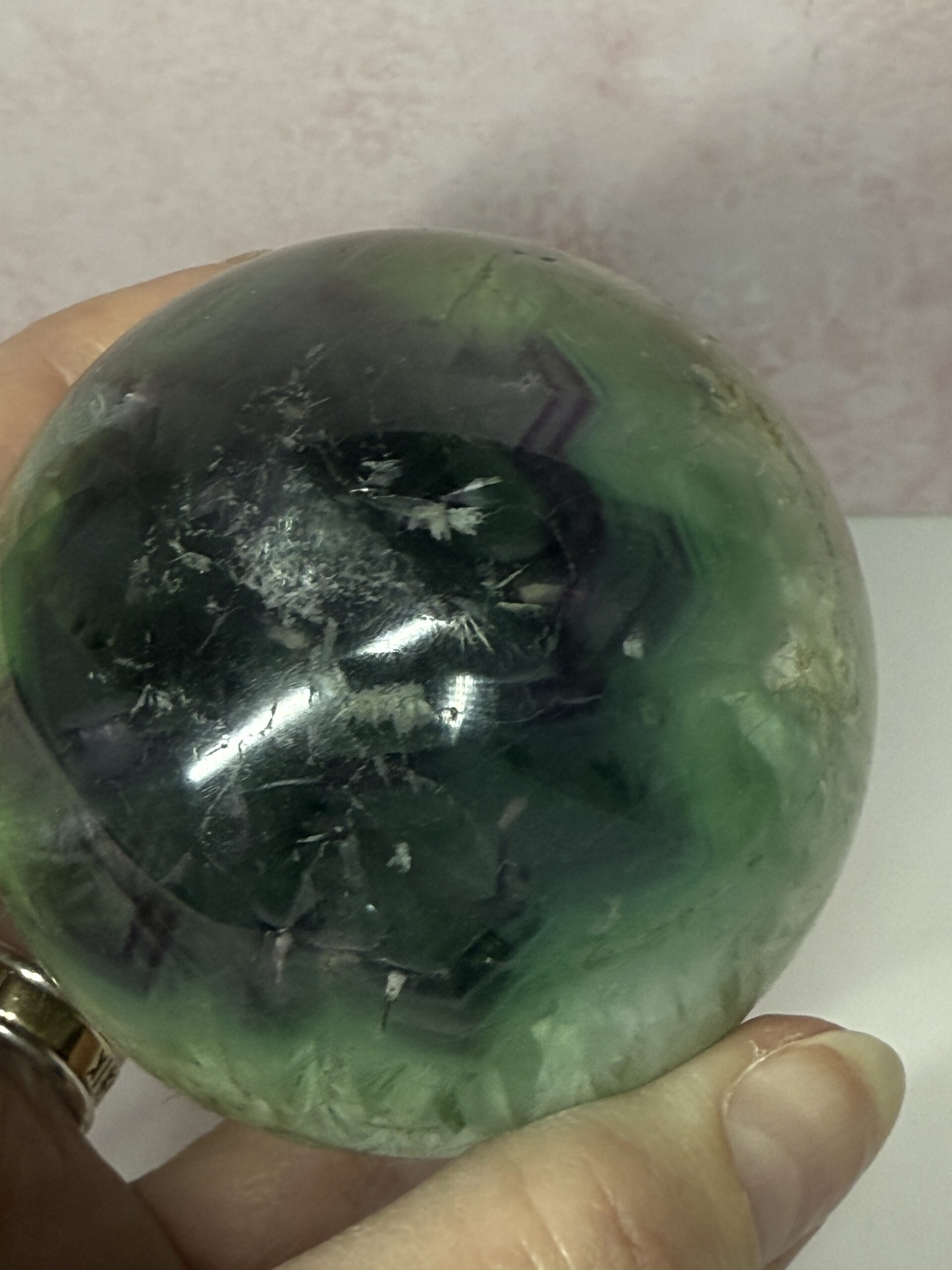 This beautiful feather fluorite sphere has wonderful depth, clearly showing the unusual characteristics of this type of fluorite.