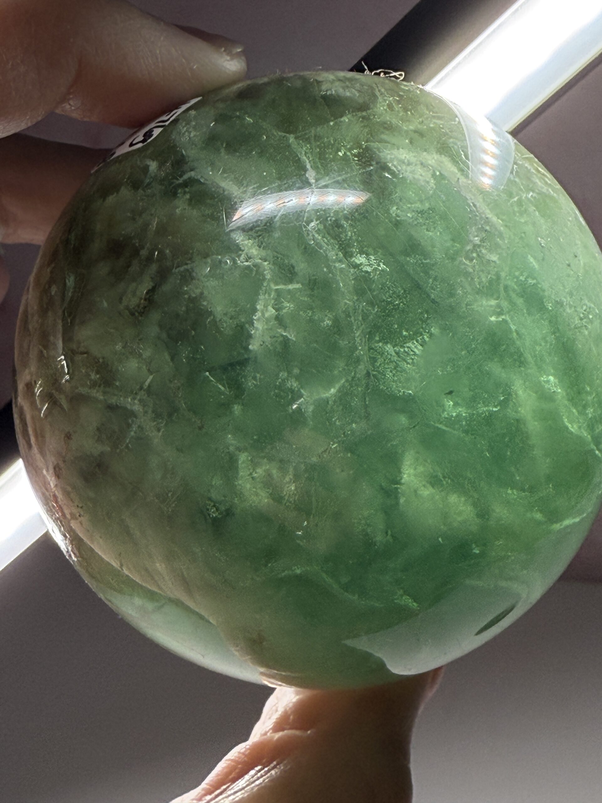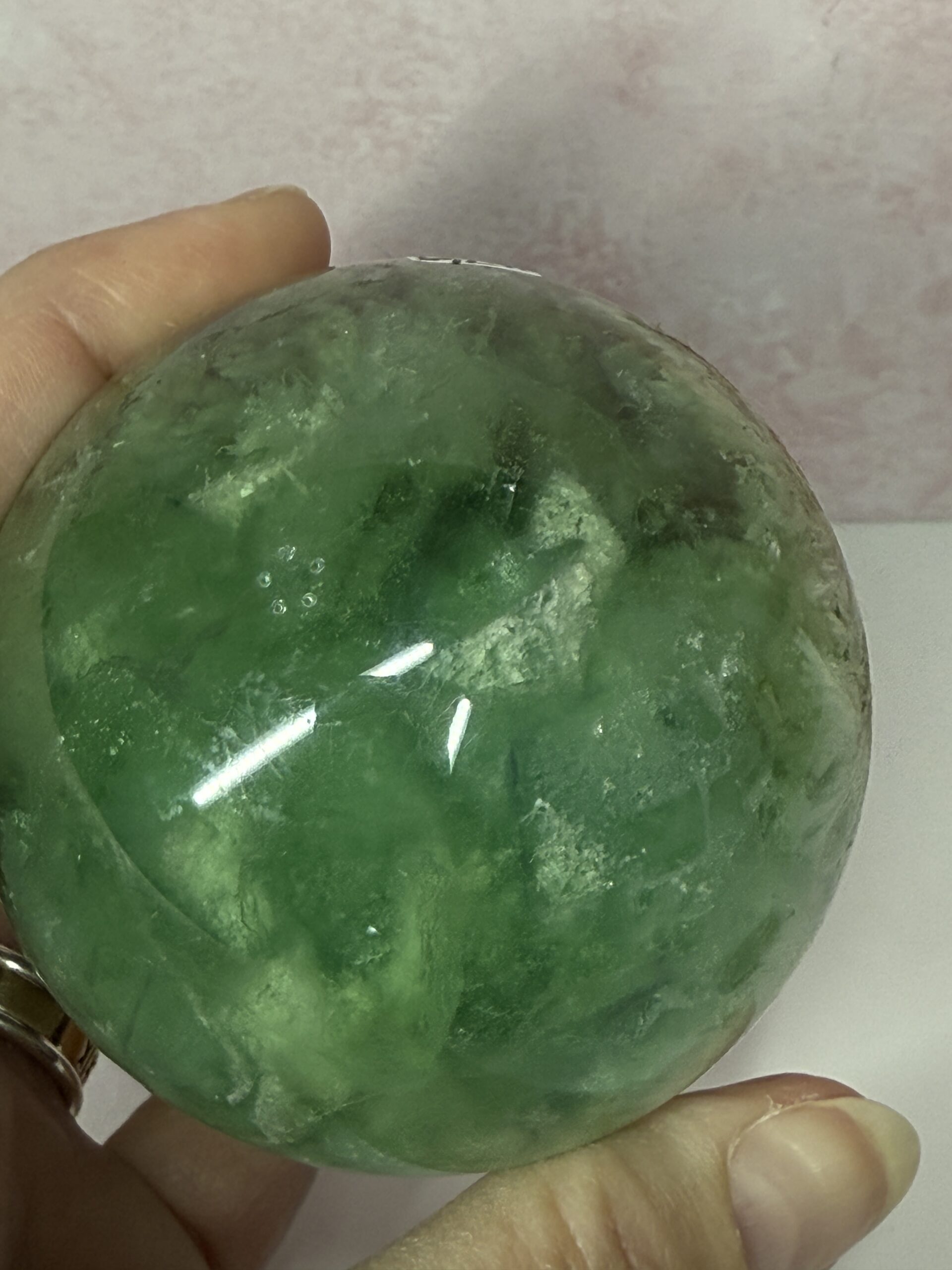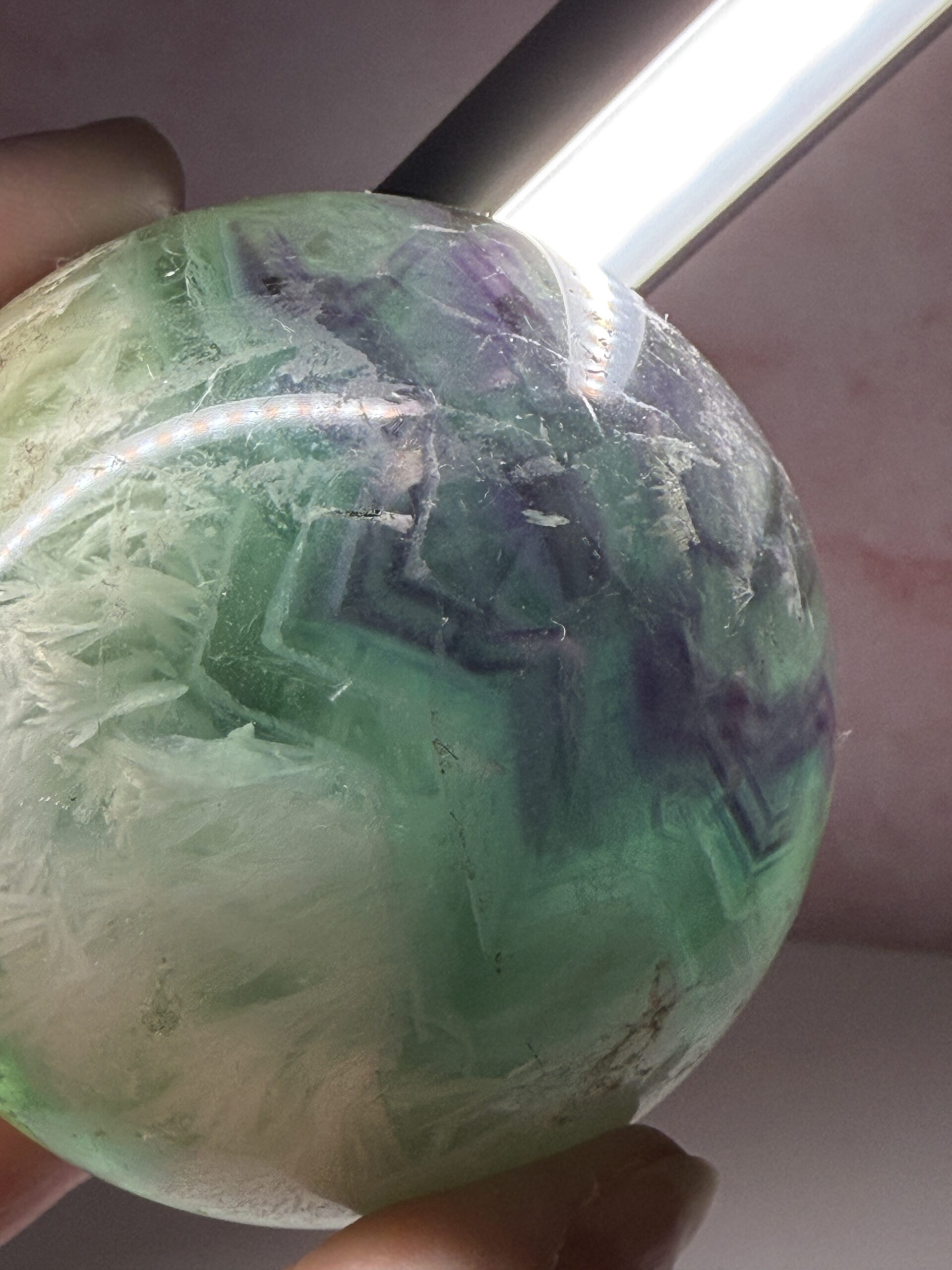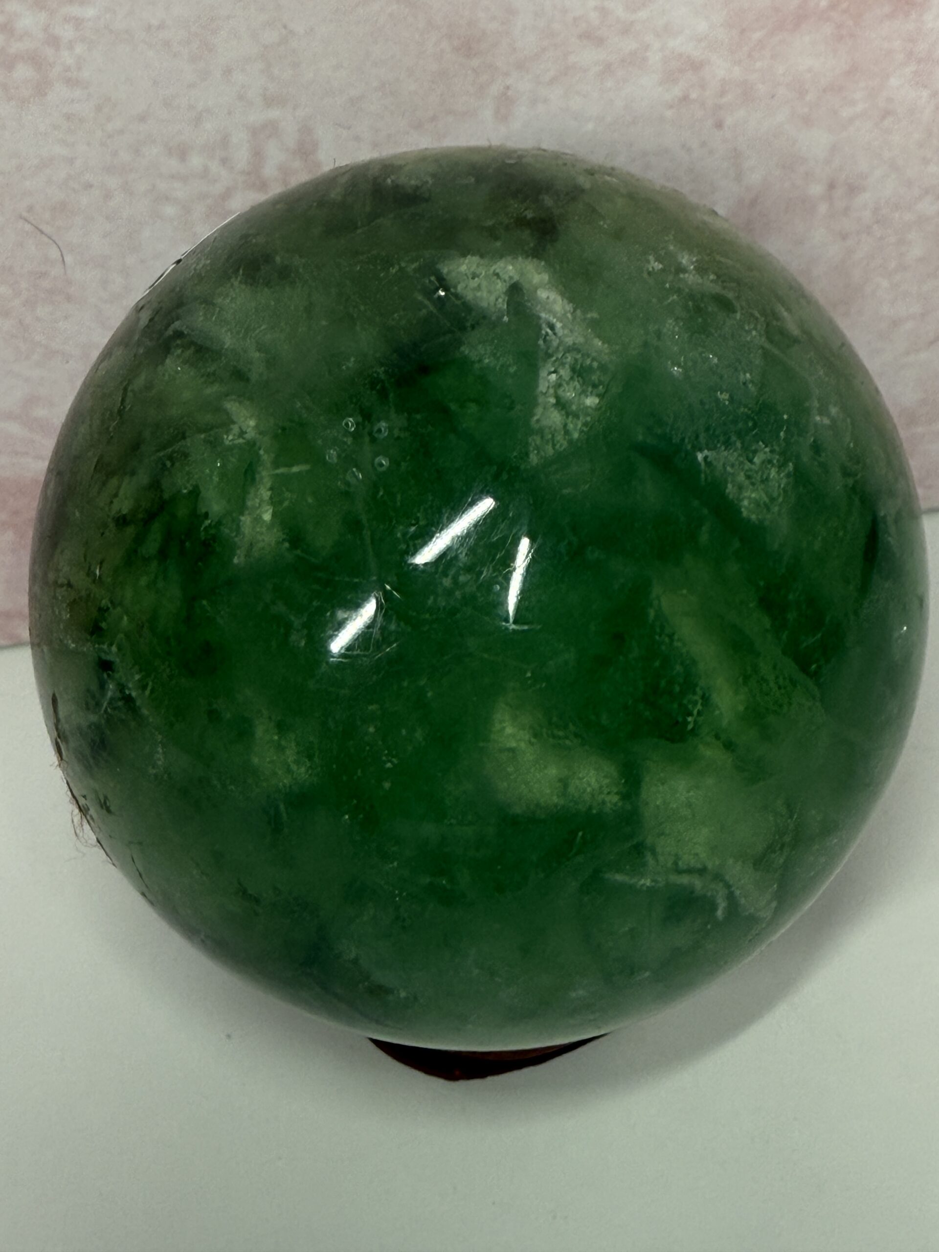 This beautiful feather fluorite sphere has wonderful depth, clearly showing the unusual characteristics of this type of fluorite.