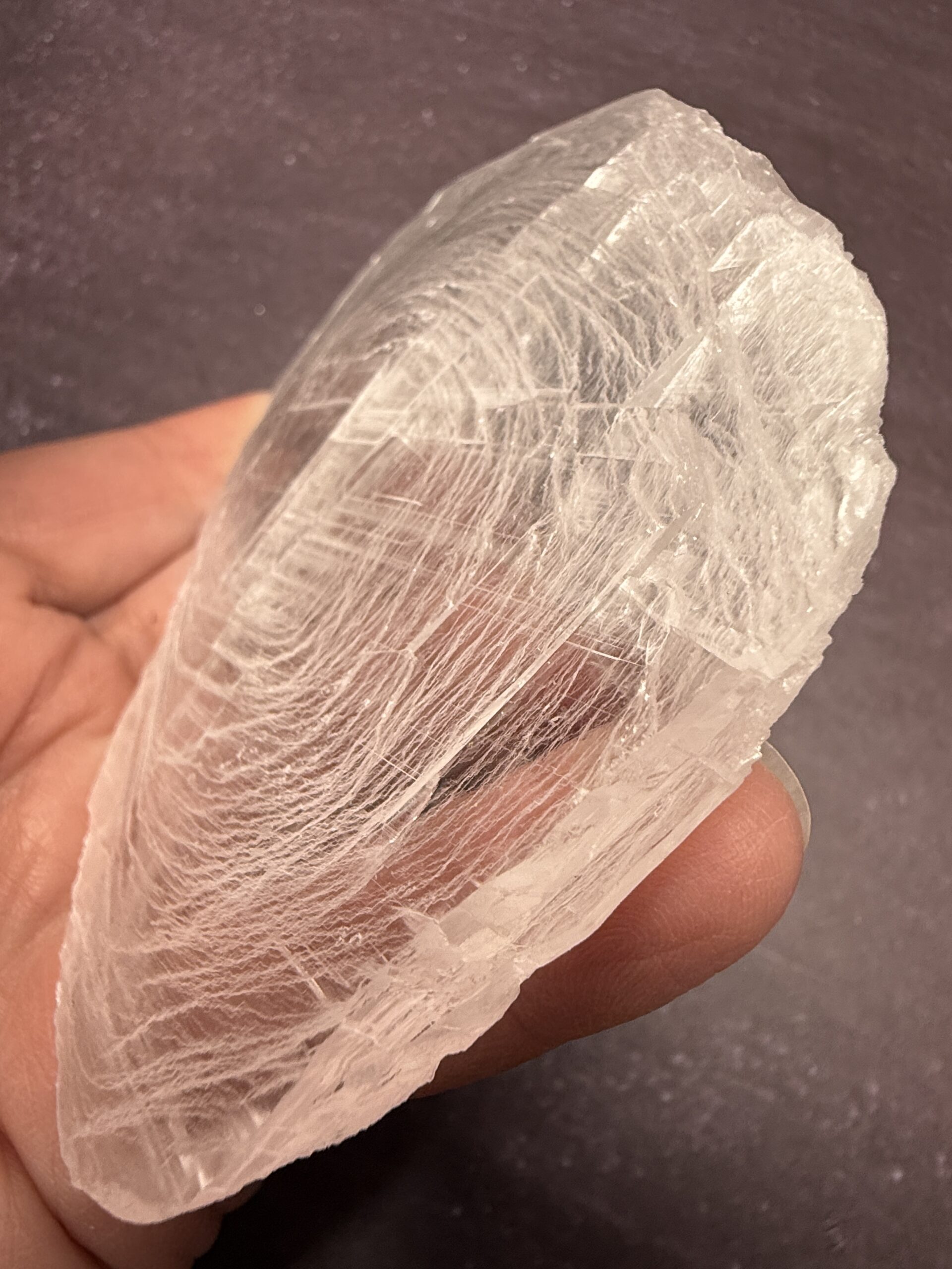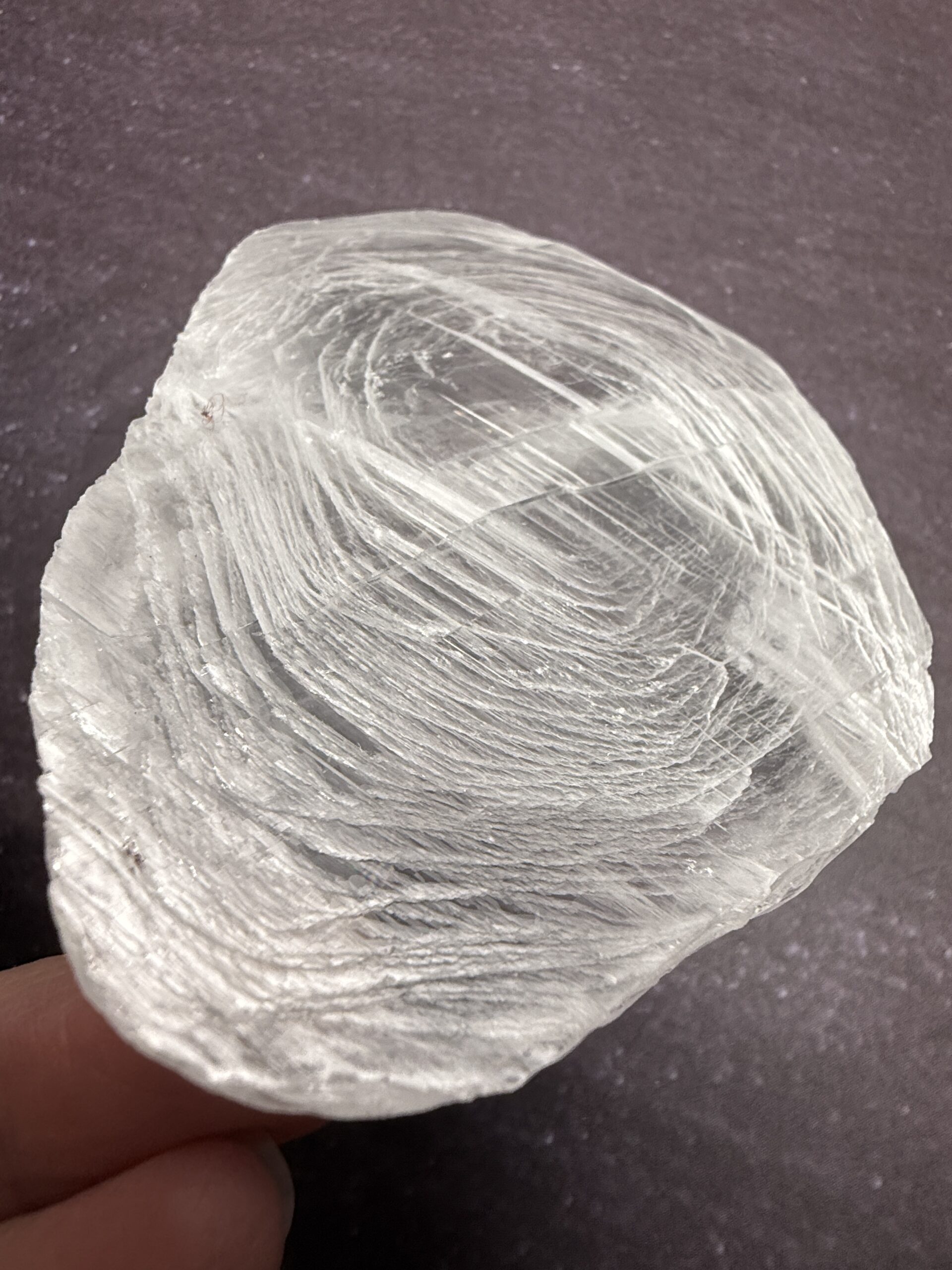 ’Finger Print’ Selenite is simply selenite which has been carved to resemble a finger print.