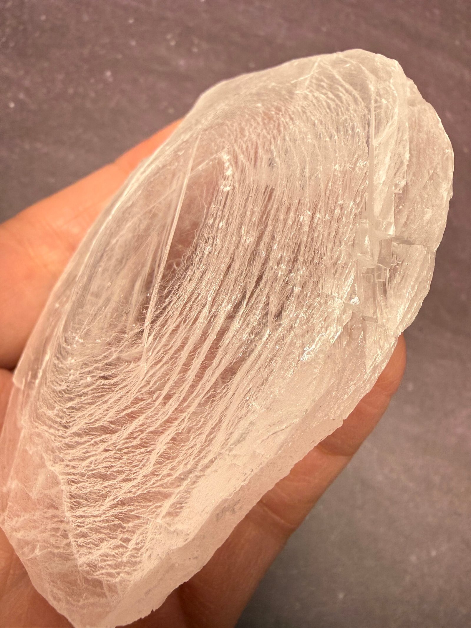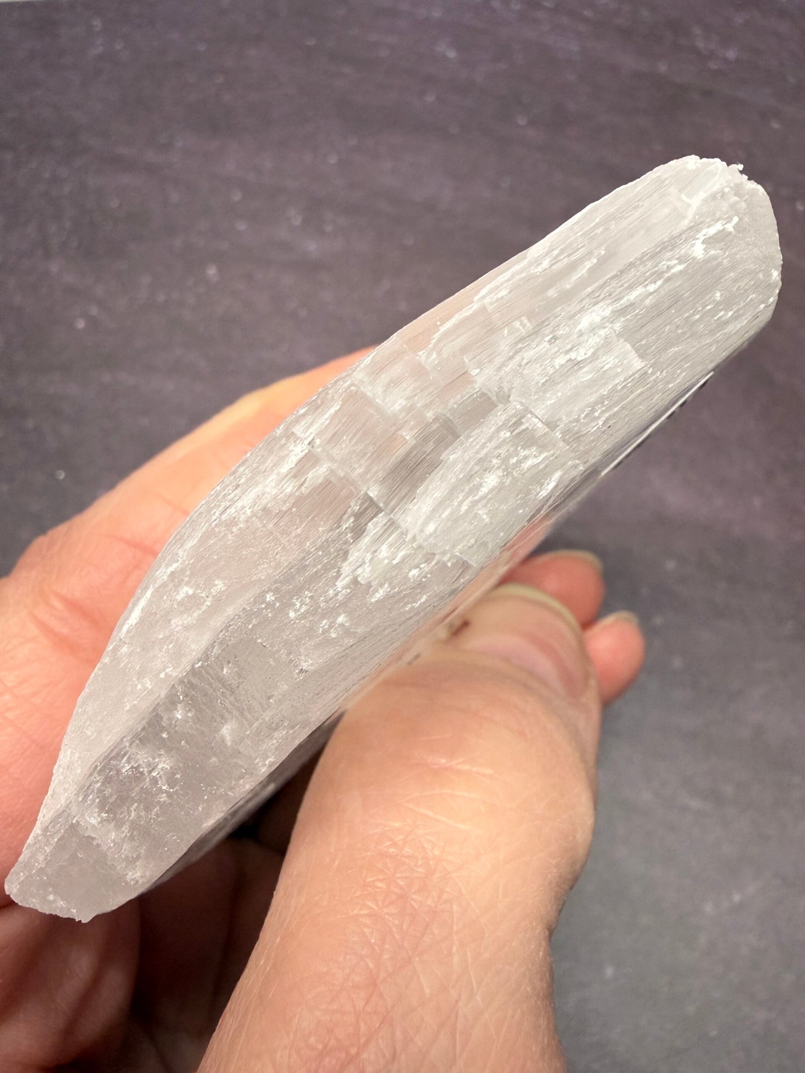 ’Finger Print’ Selenite is simply selenite which has been carved to resemble a finger print.