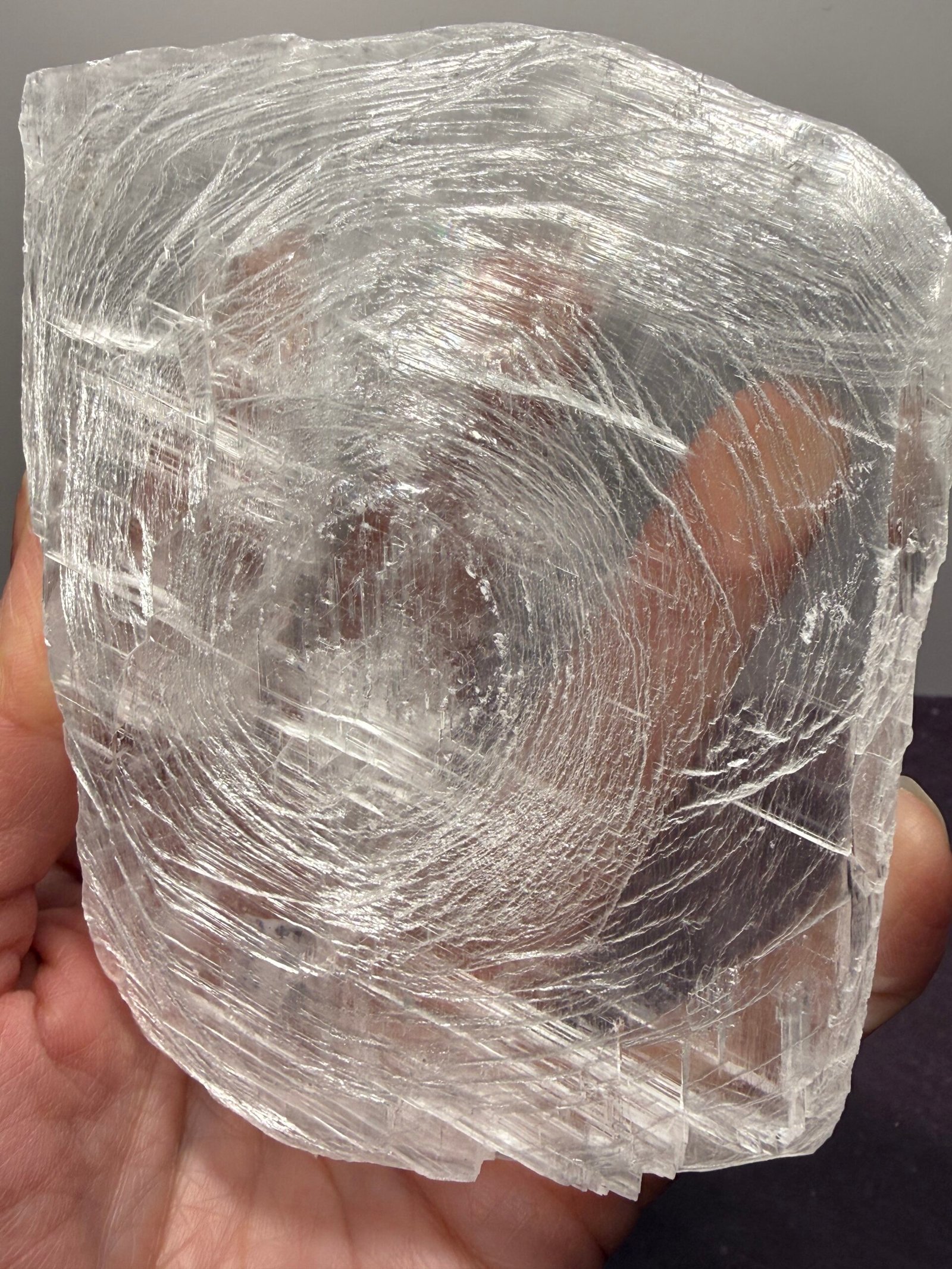 ’Finger Print’ Selenite is simply selenite which has been carved to resemble a finger print.