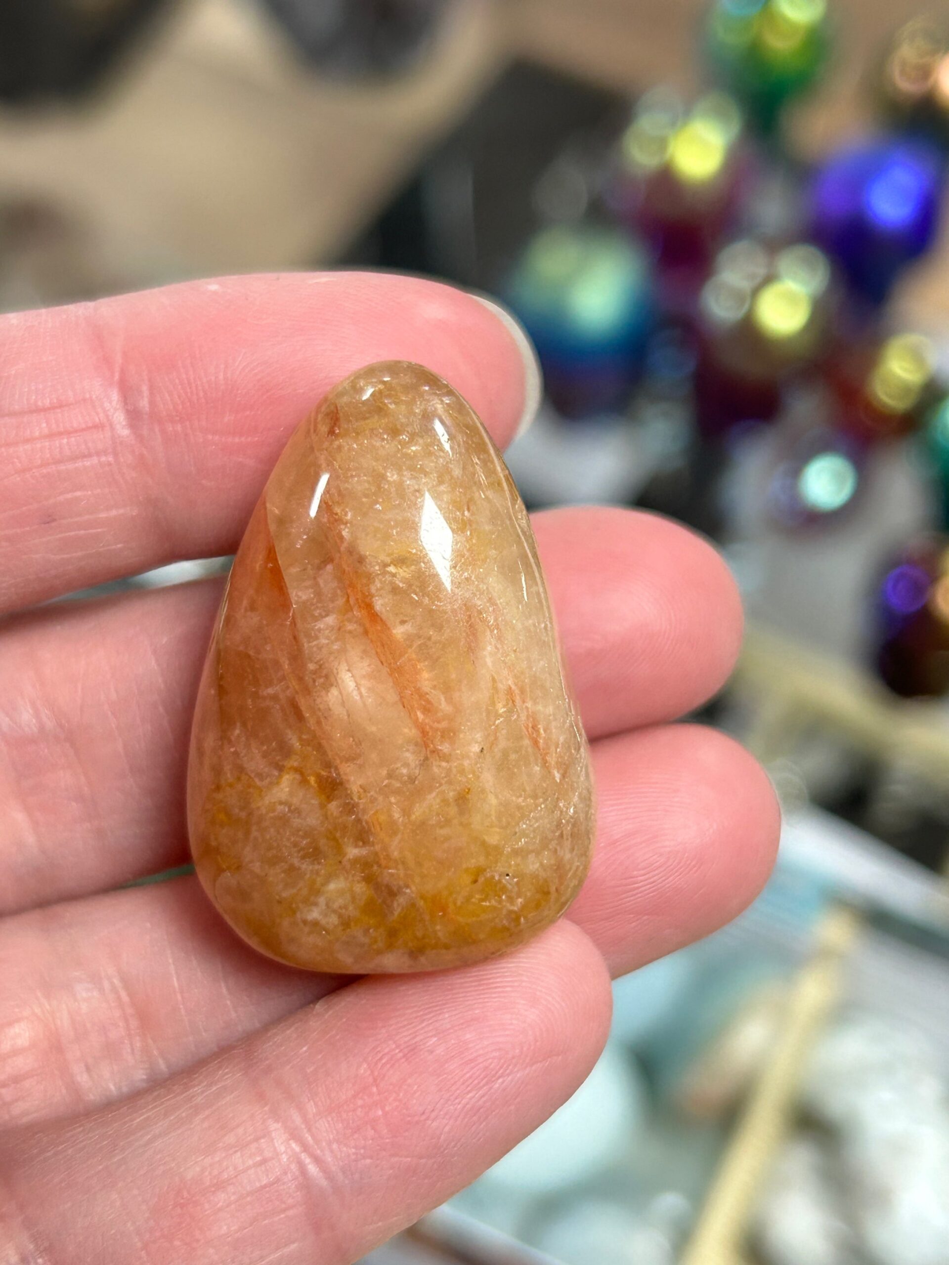 Fire Quartz combines the intense energy of Quartz, with the stabilising properties of Hematite. It regulates emotions, calms mood swings, and balances the mind, body, and spirit. Working with Fire Quartz helps one