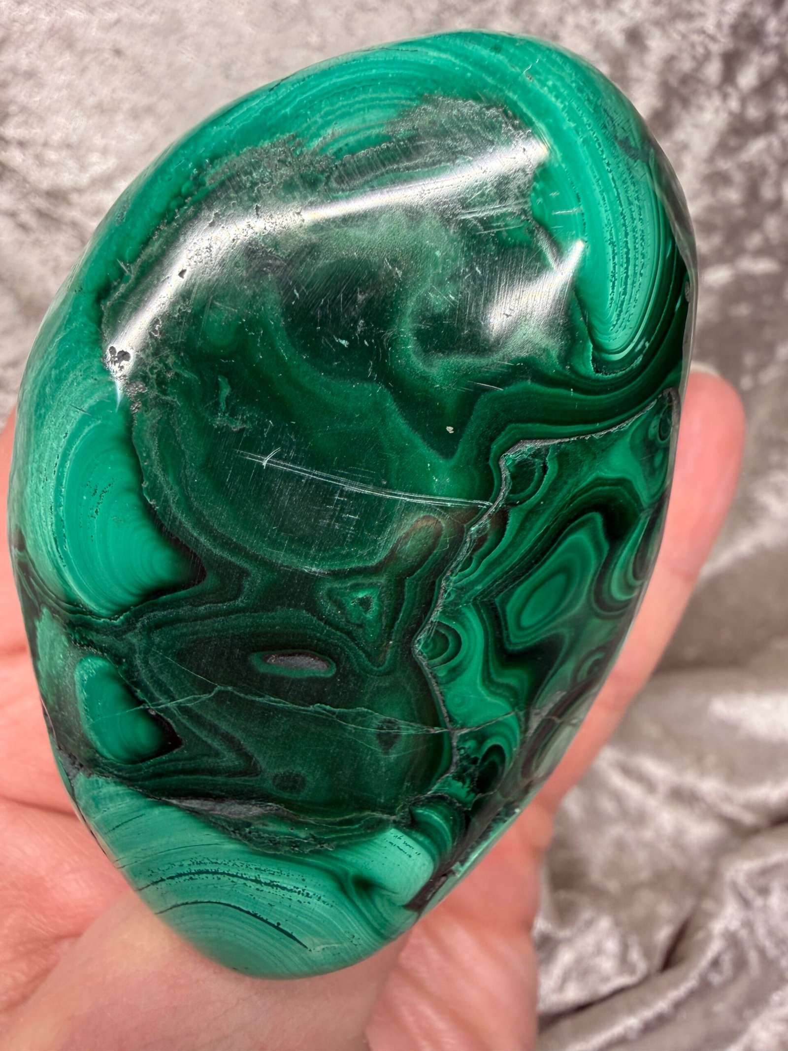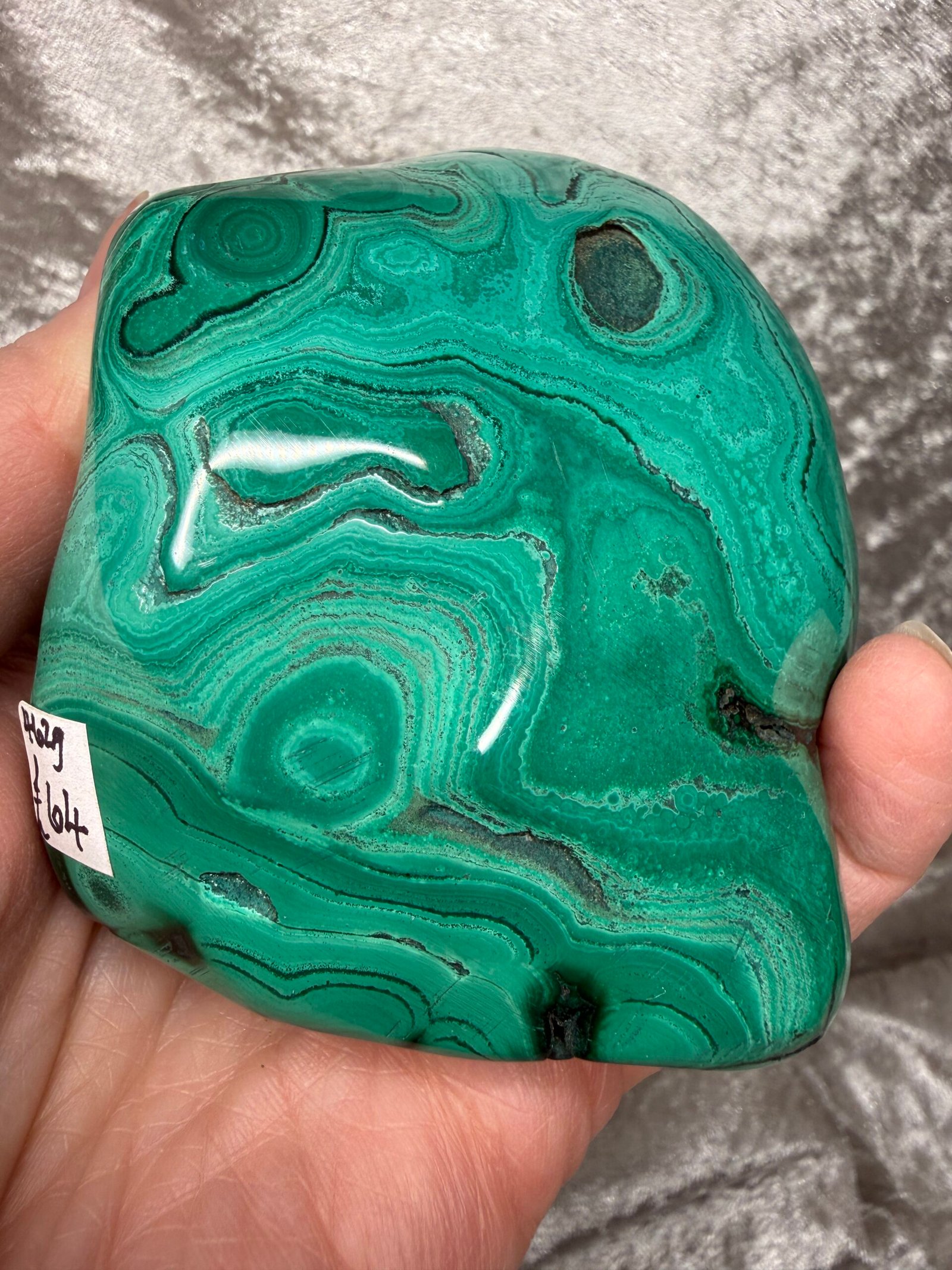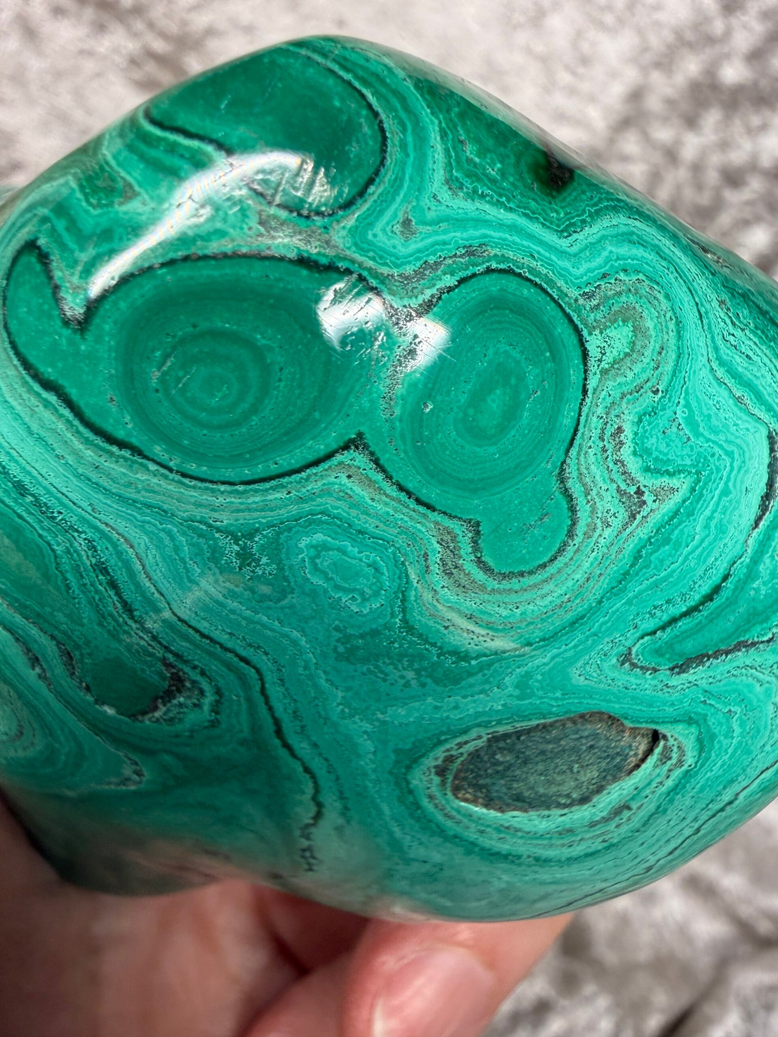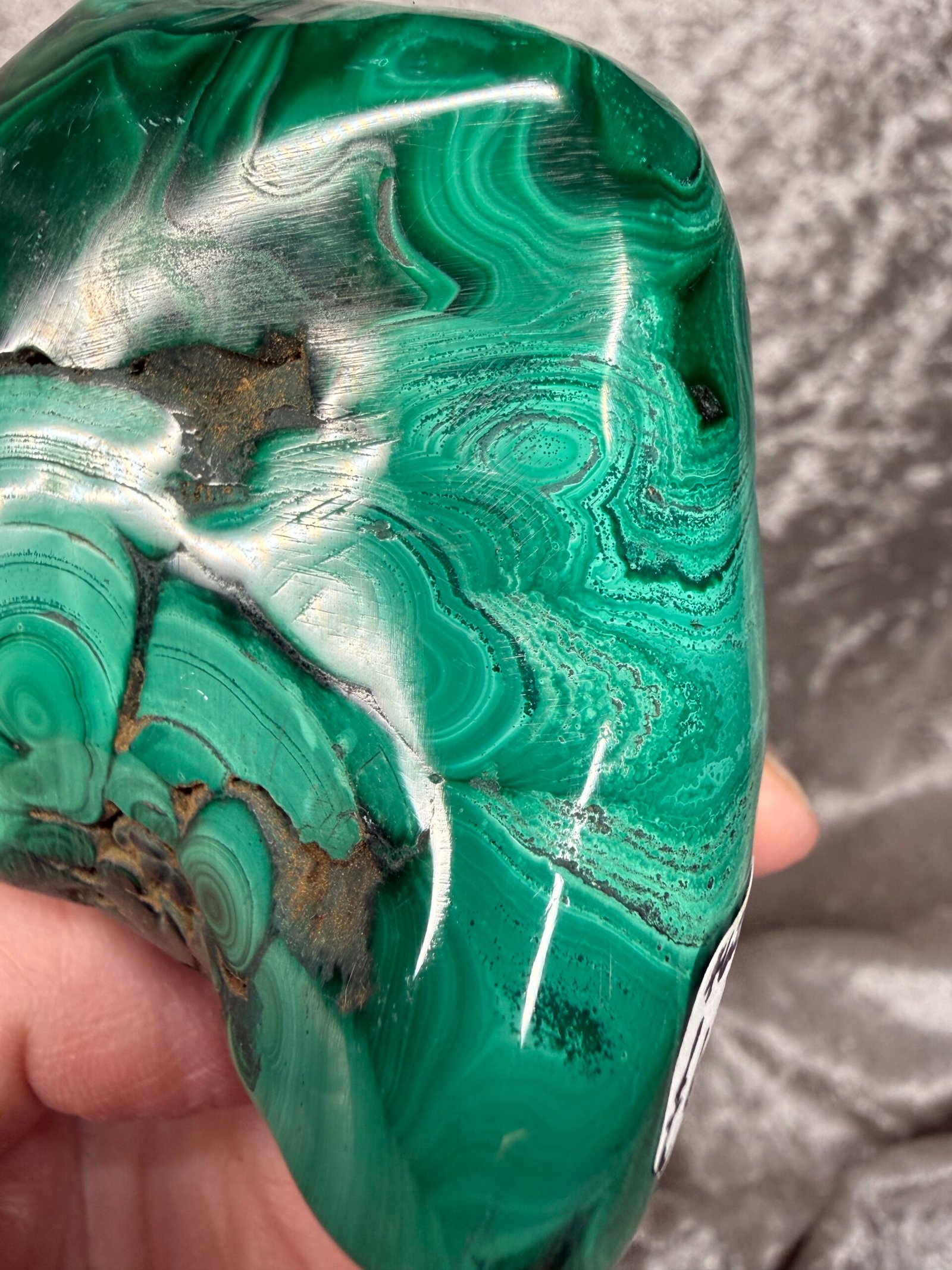 Free standing polished flower banded Malachite from Congo, South Africa.