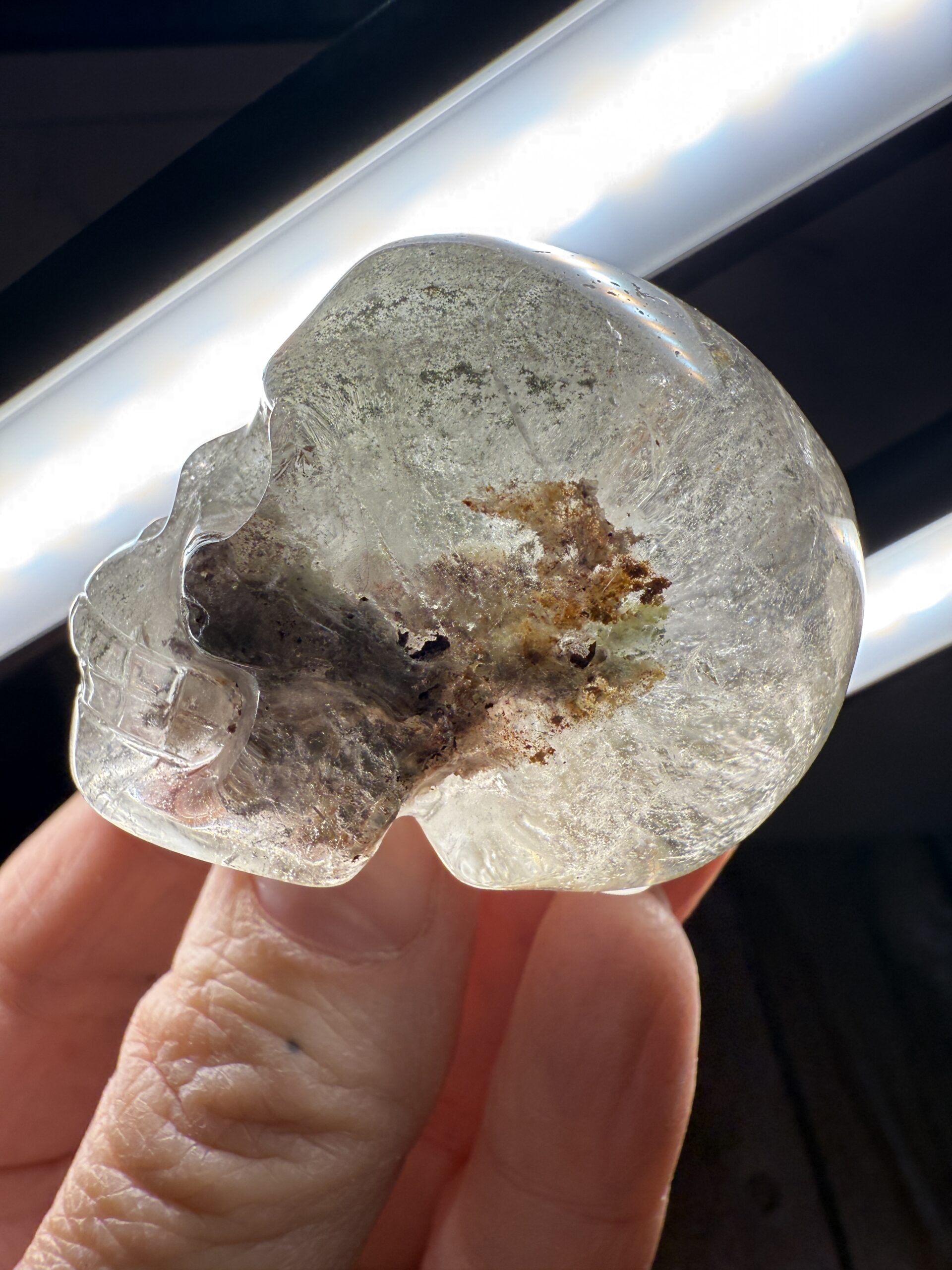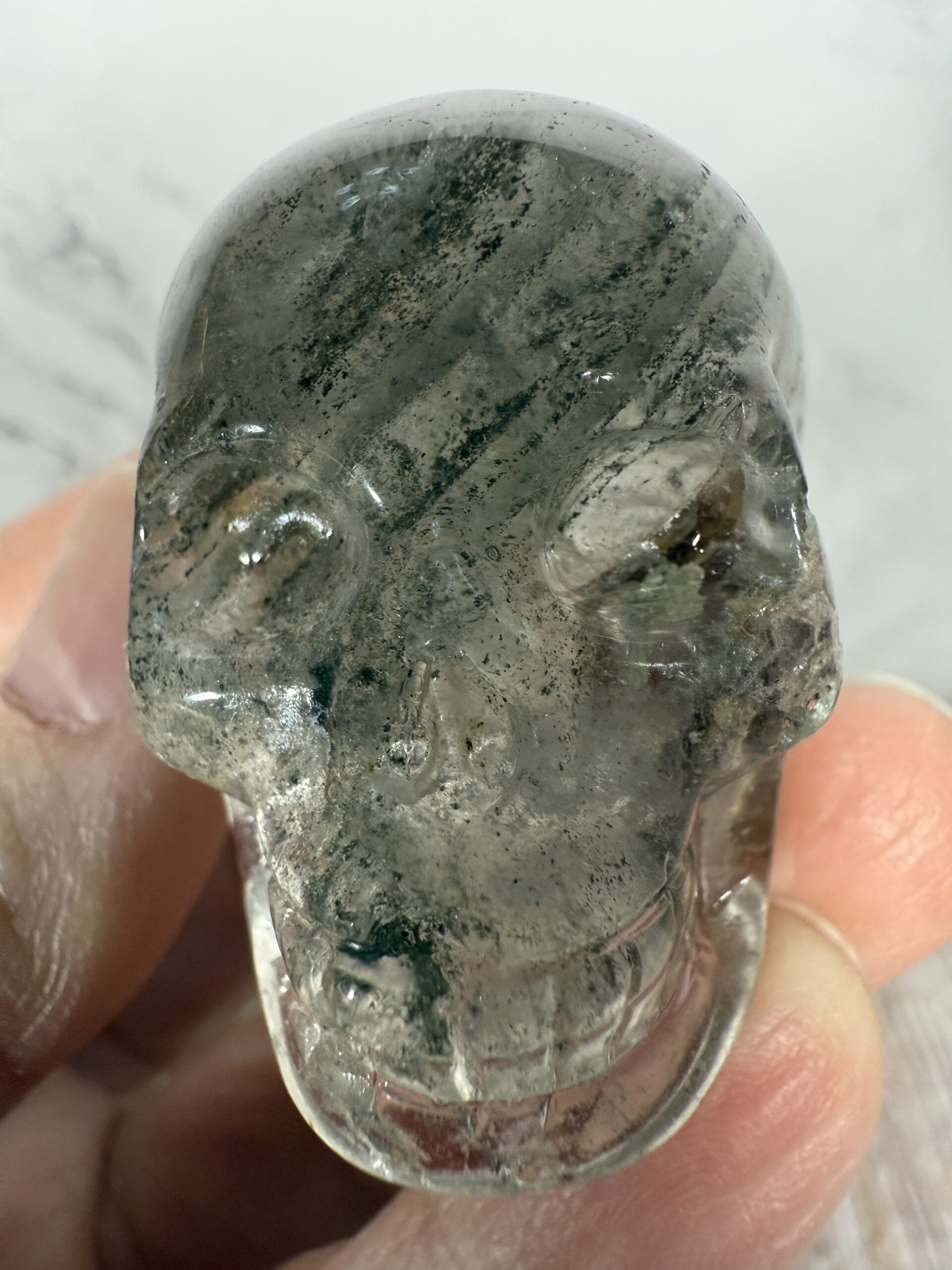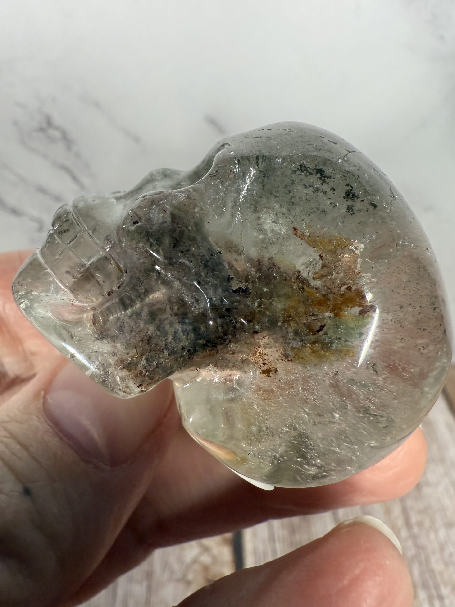 Small but beautifully carved garden Quartz skull with great clarity and wonderful inclusions.
