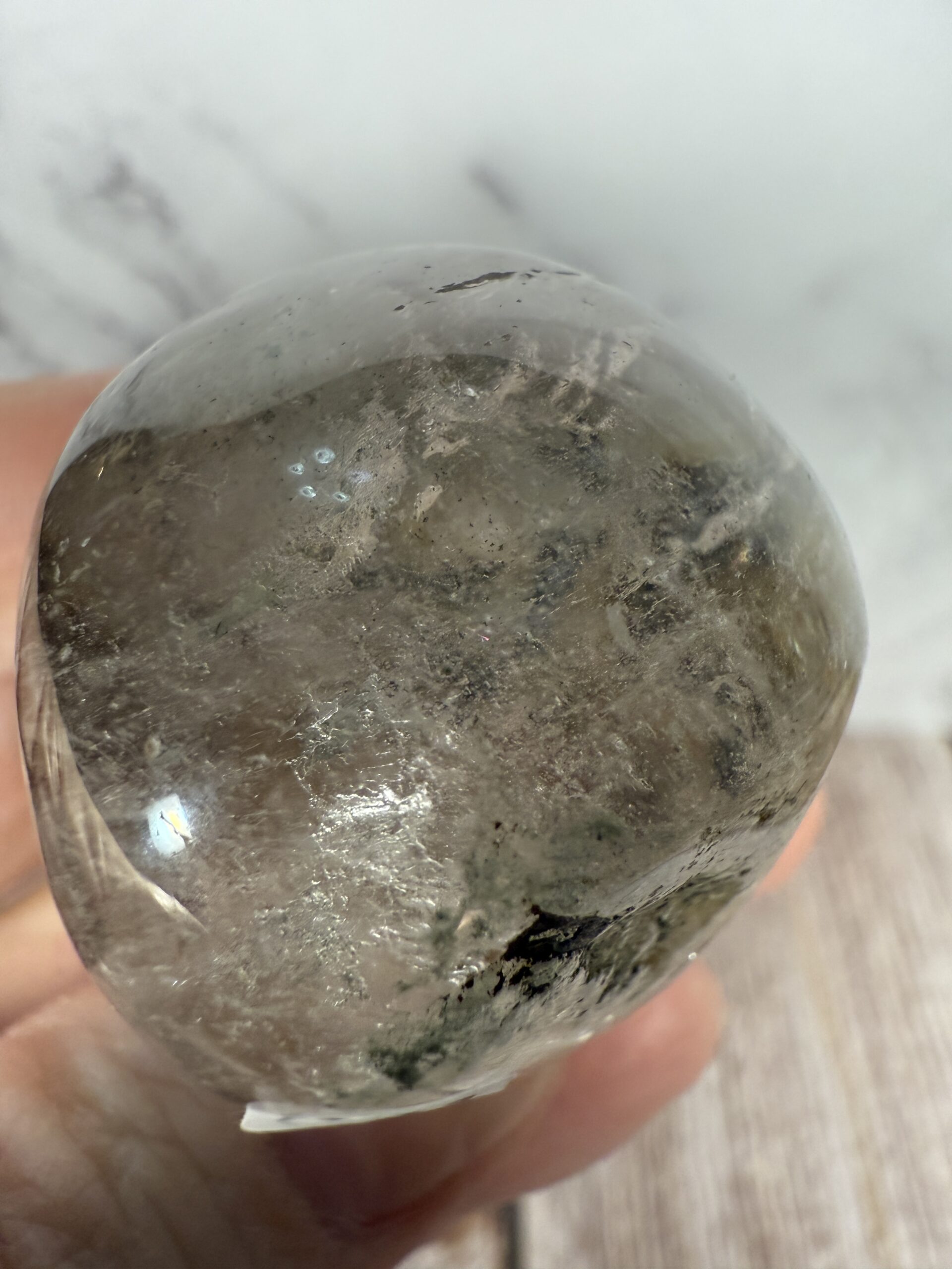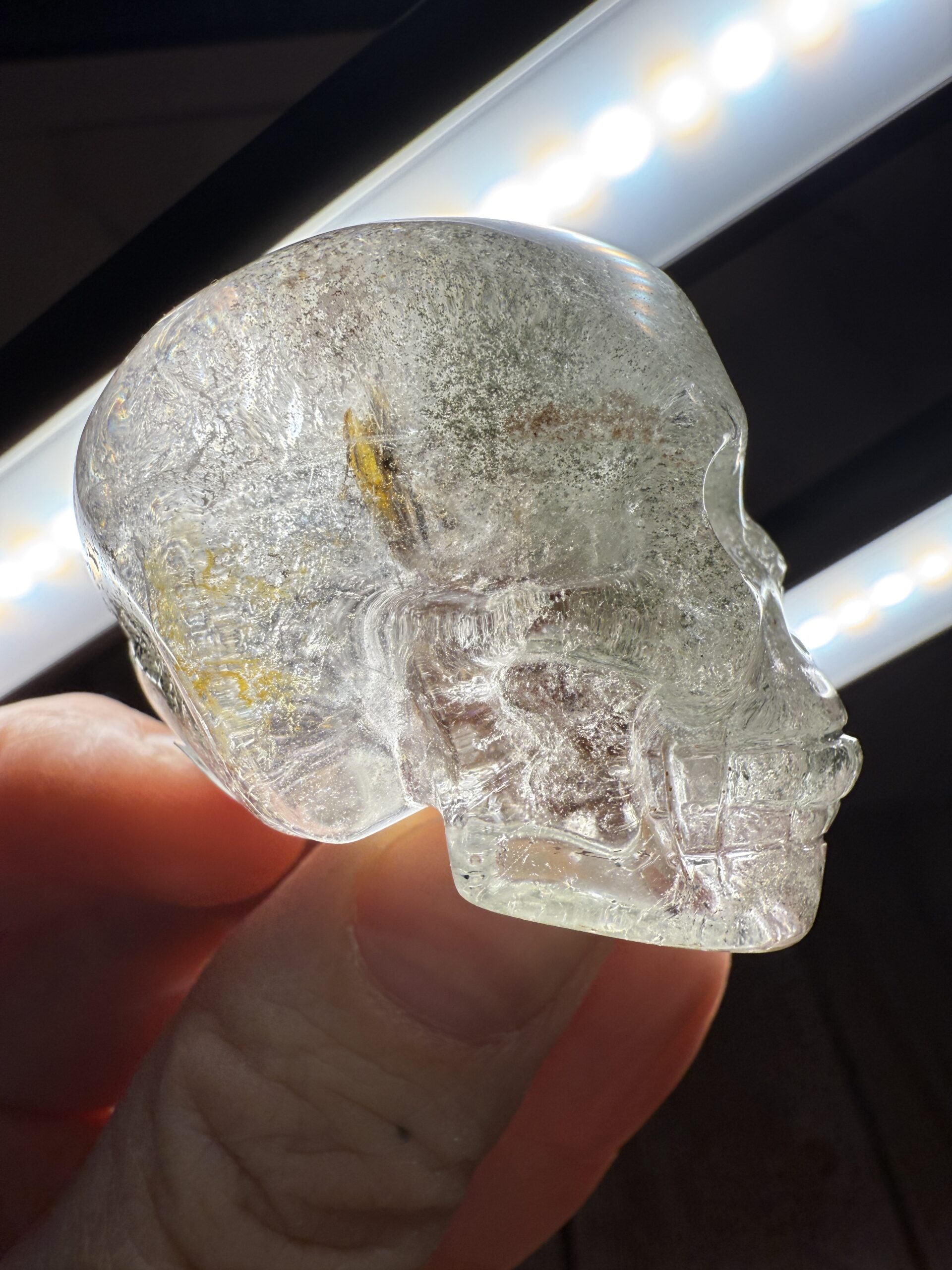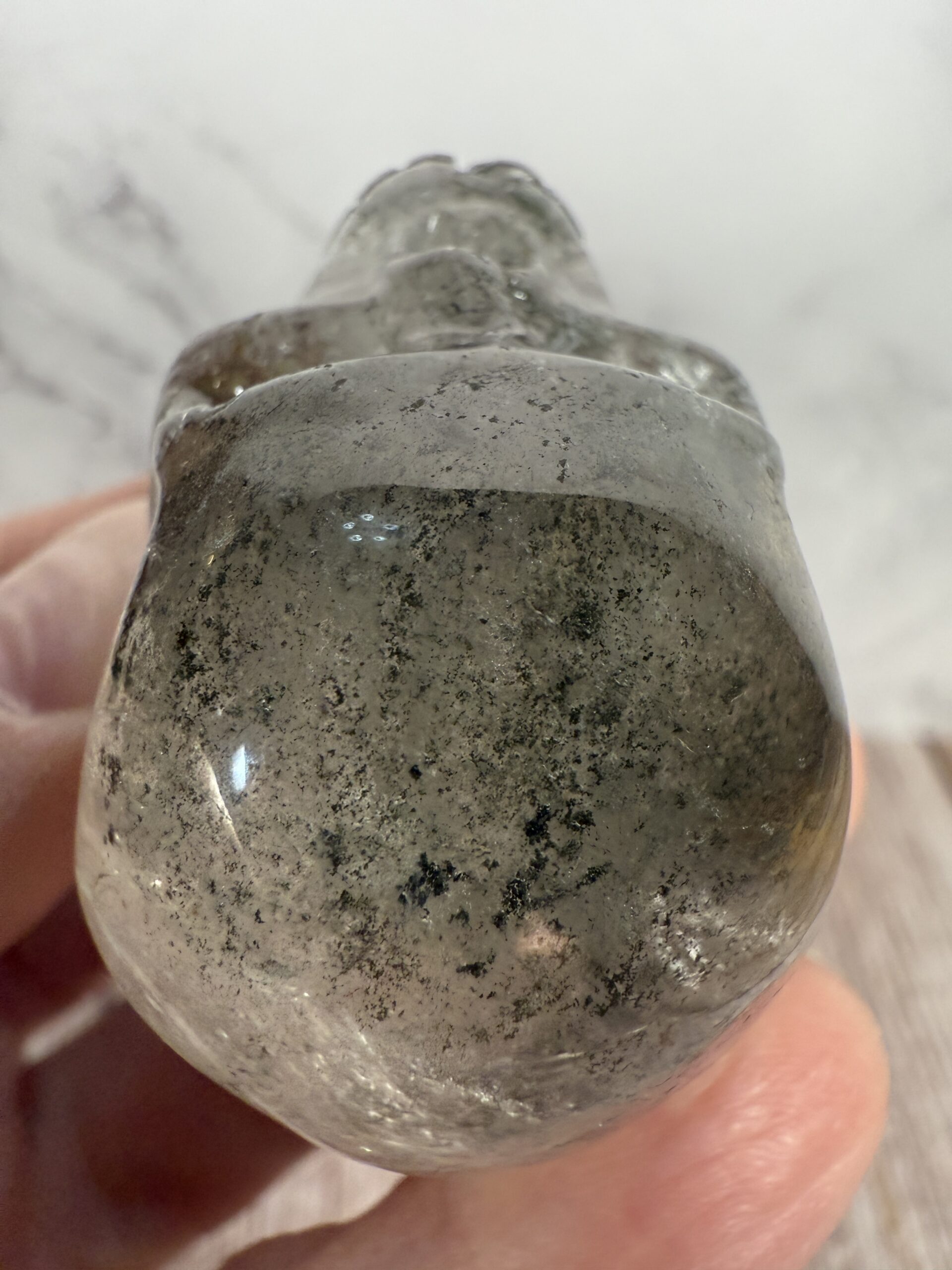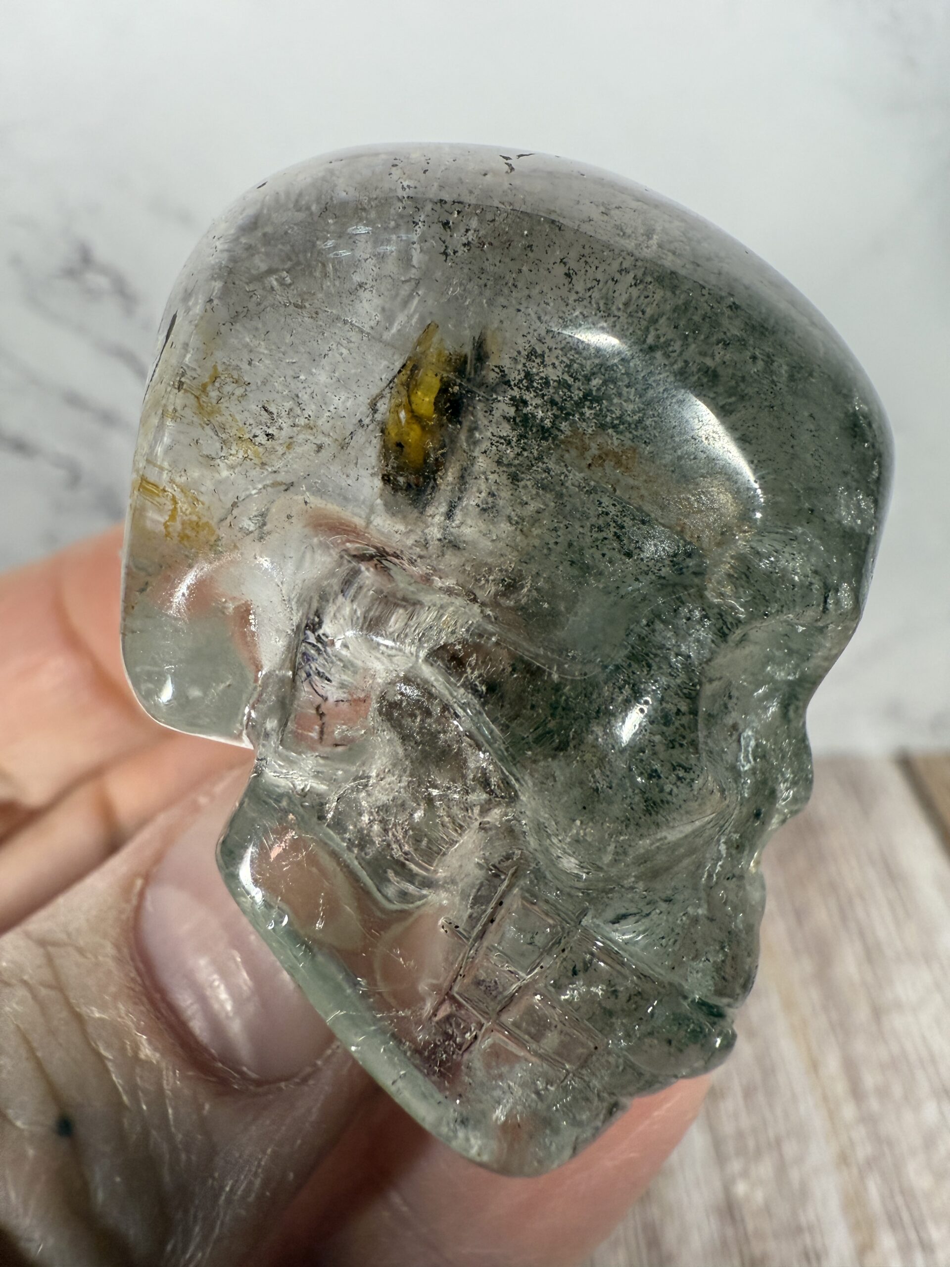 Small but beautifully carved garden Quartz skull with great clarity and wonderful inclusions.