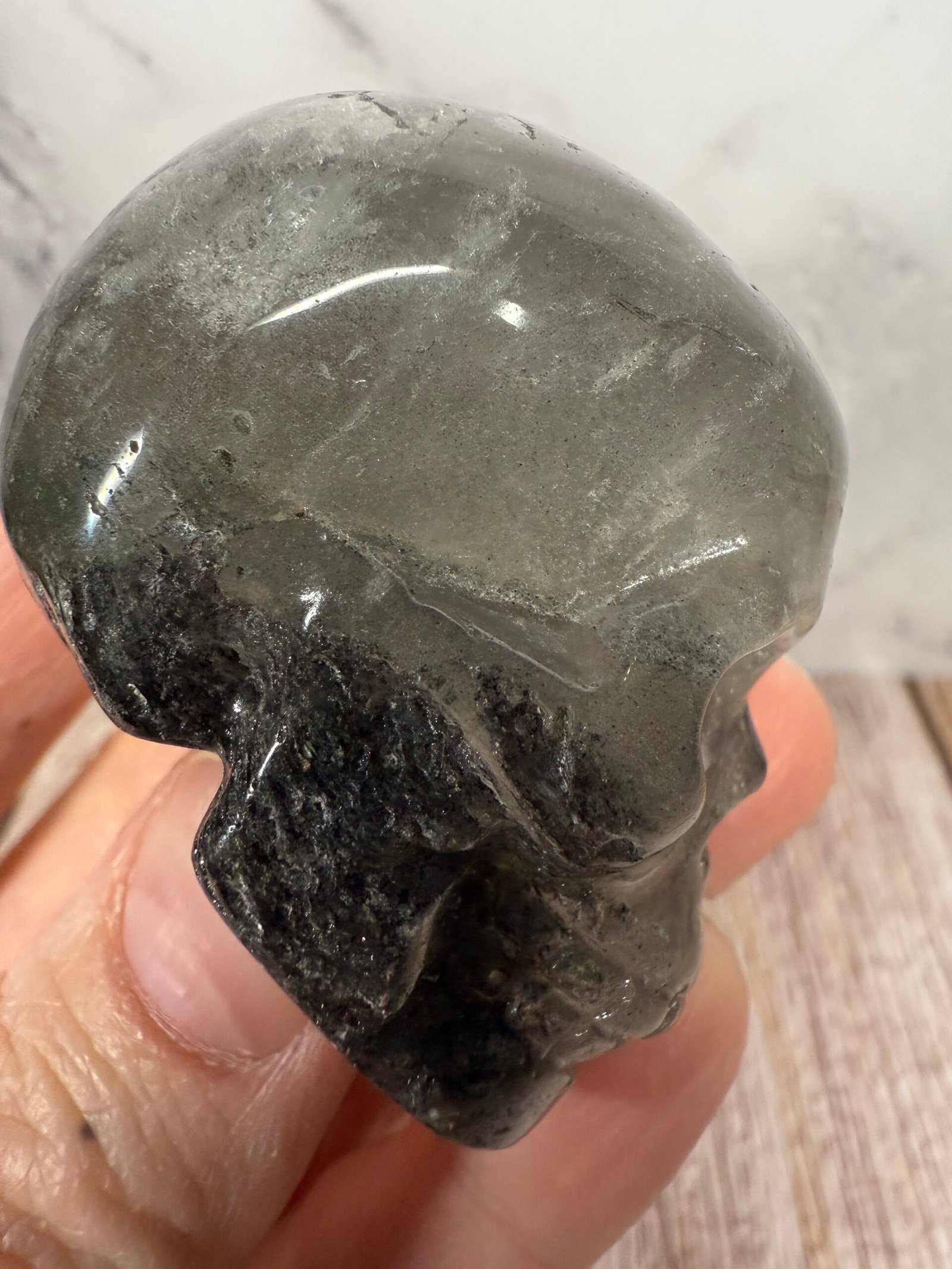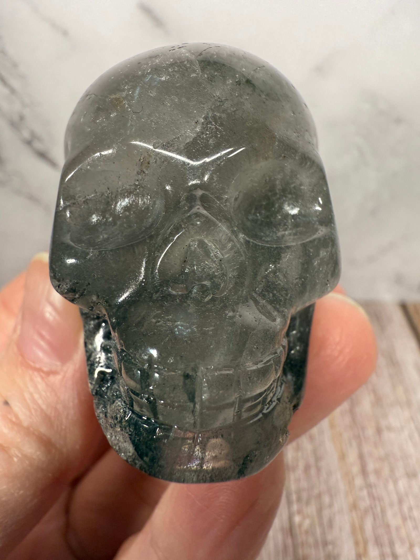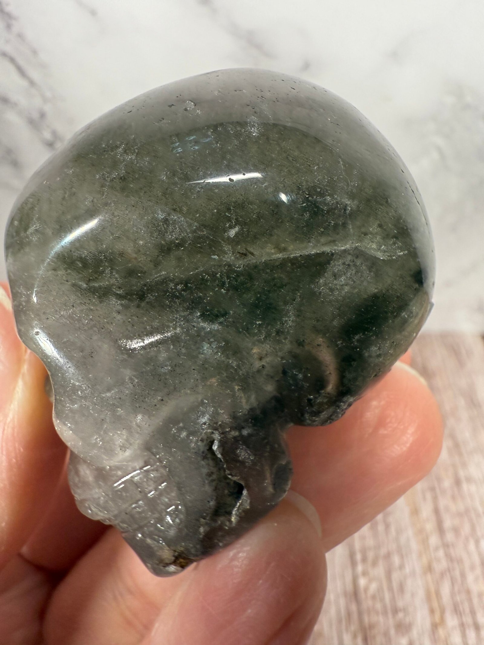 Garden Quartz (Lodolite) Skull Carving