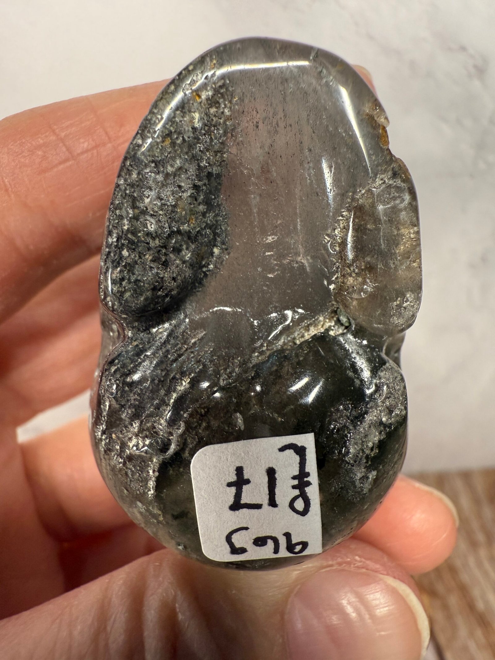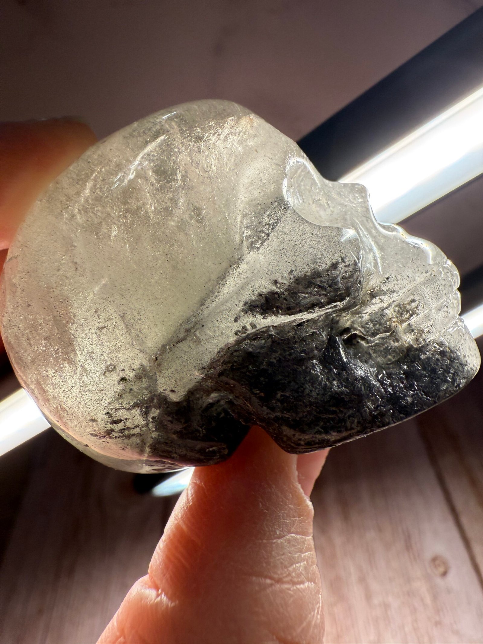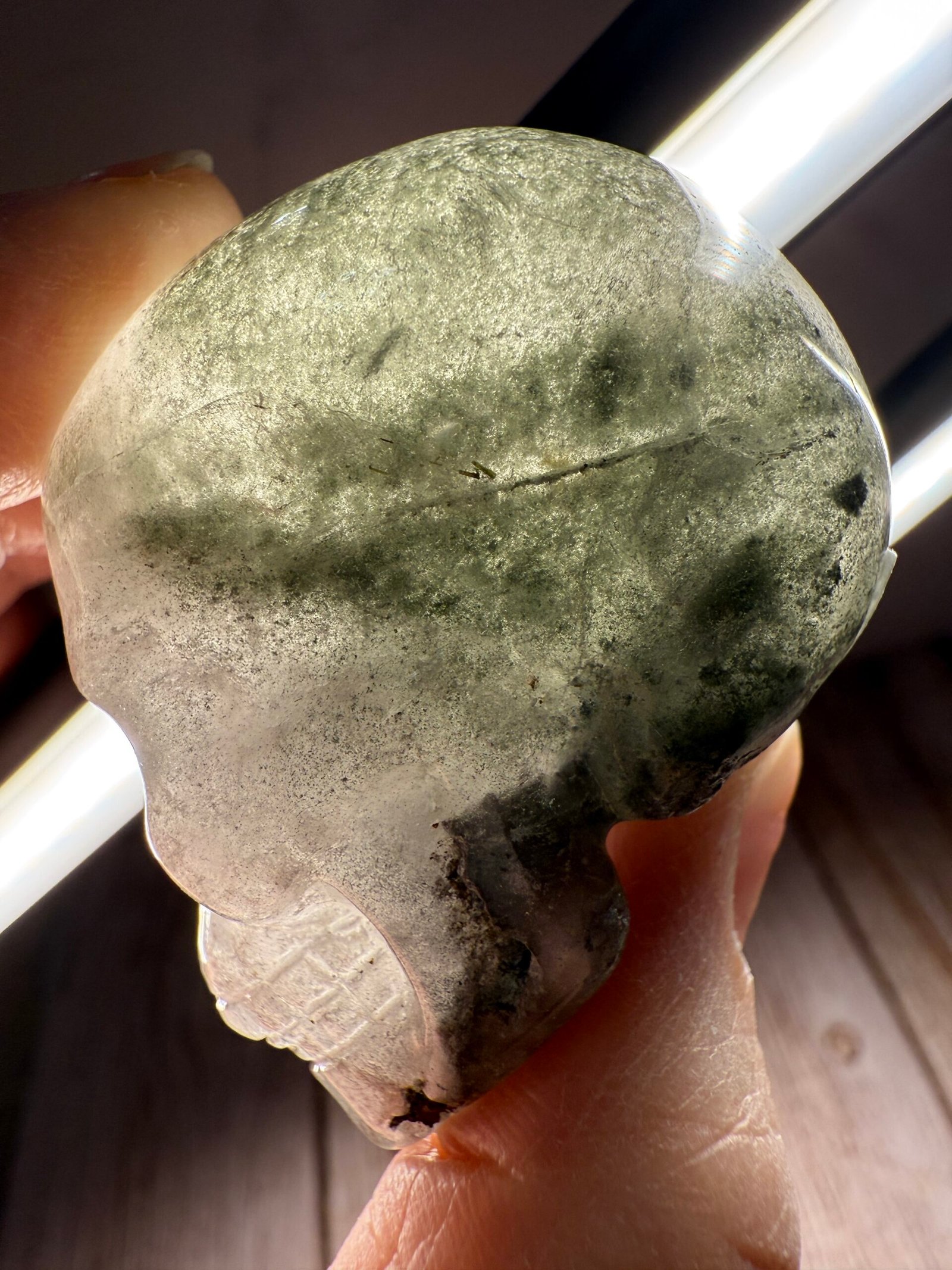 Garden Quartz (Lodolite) Skull Carving