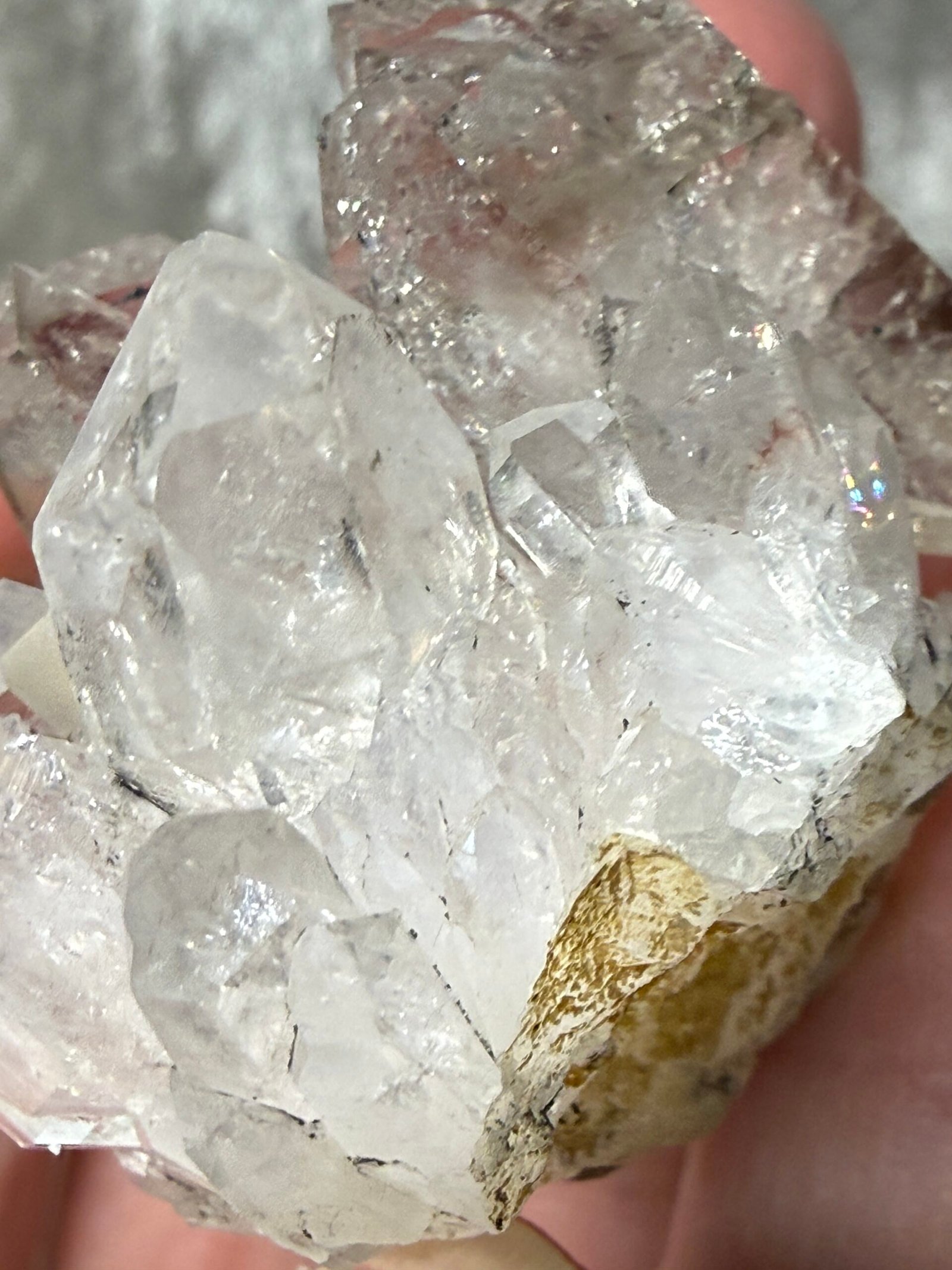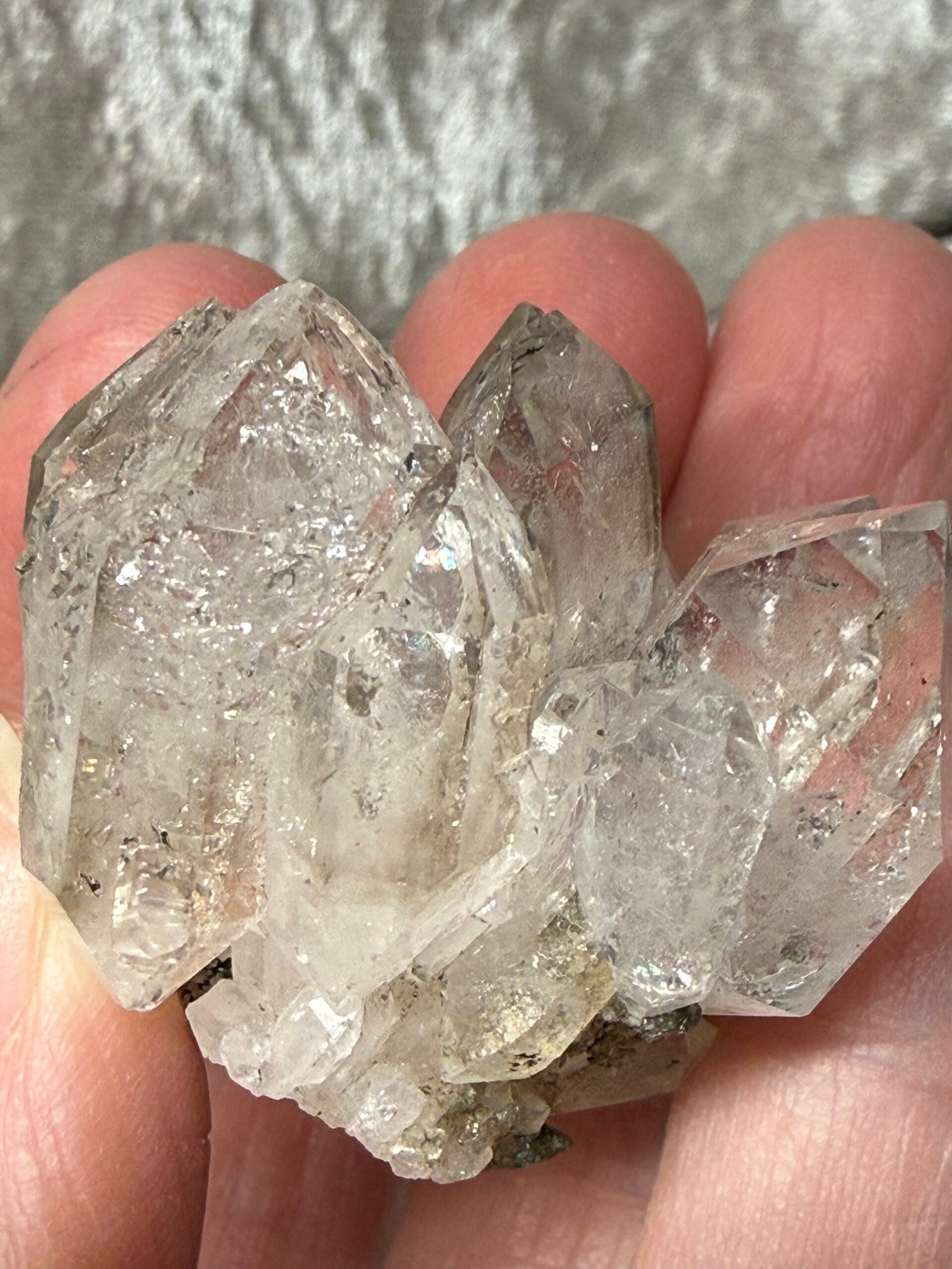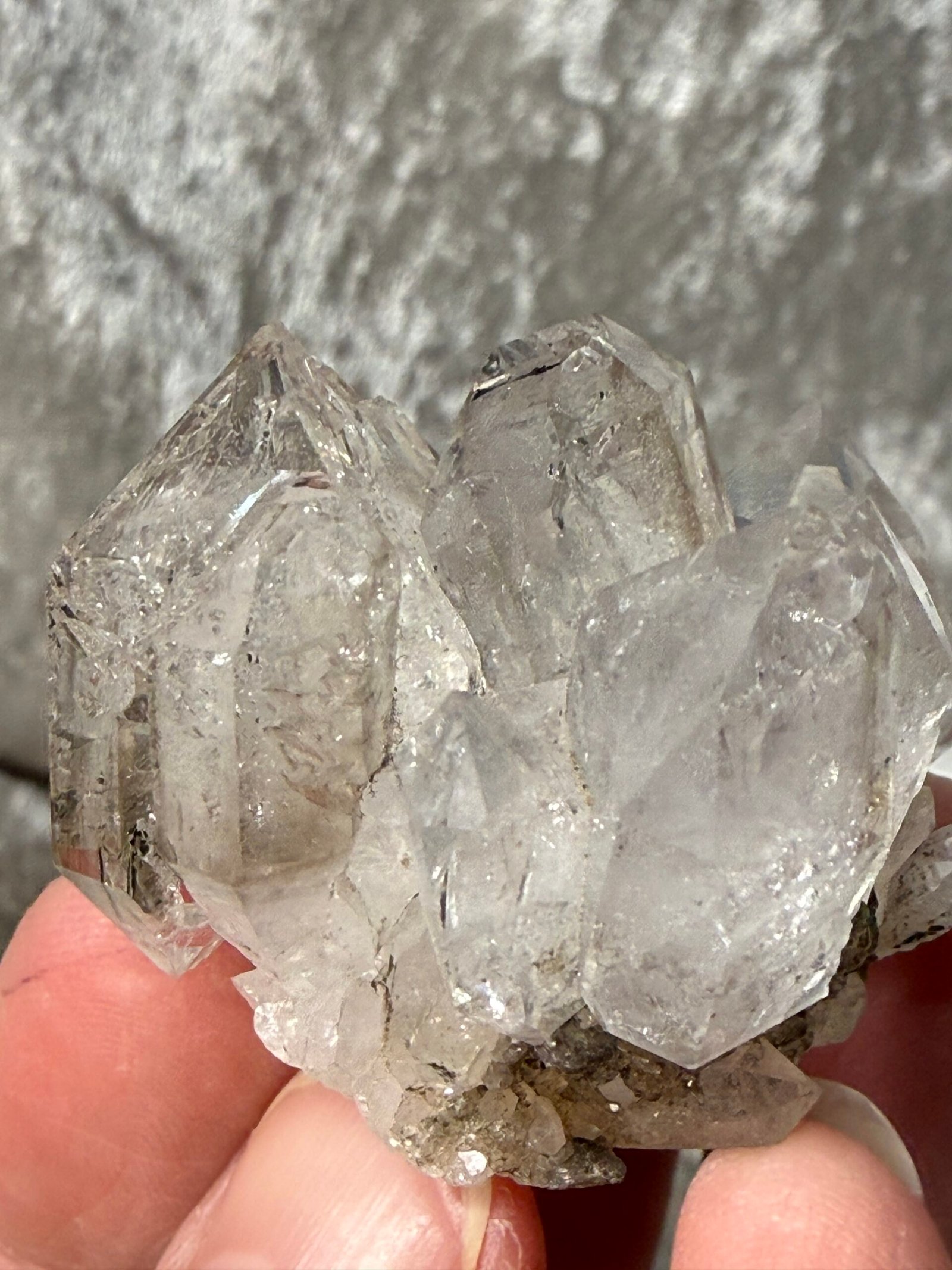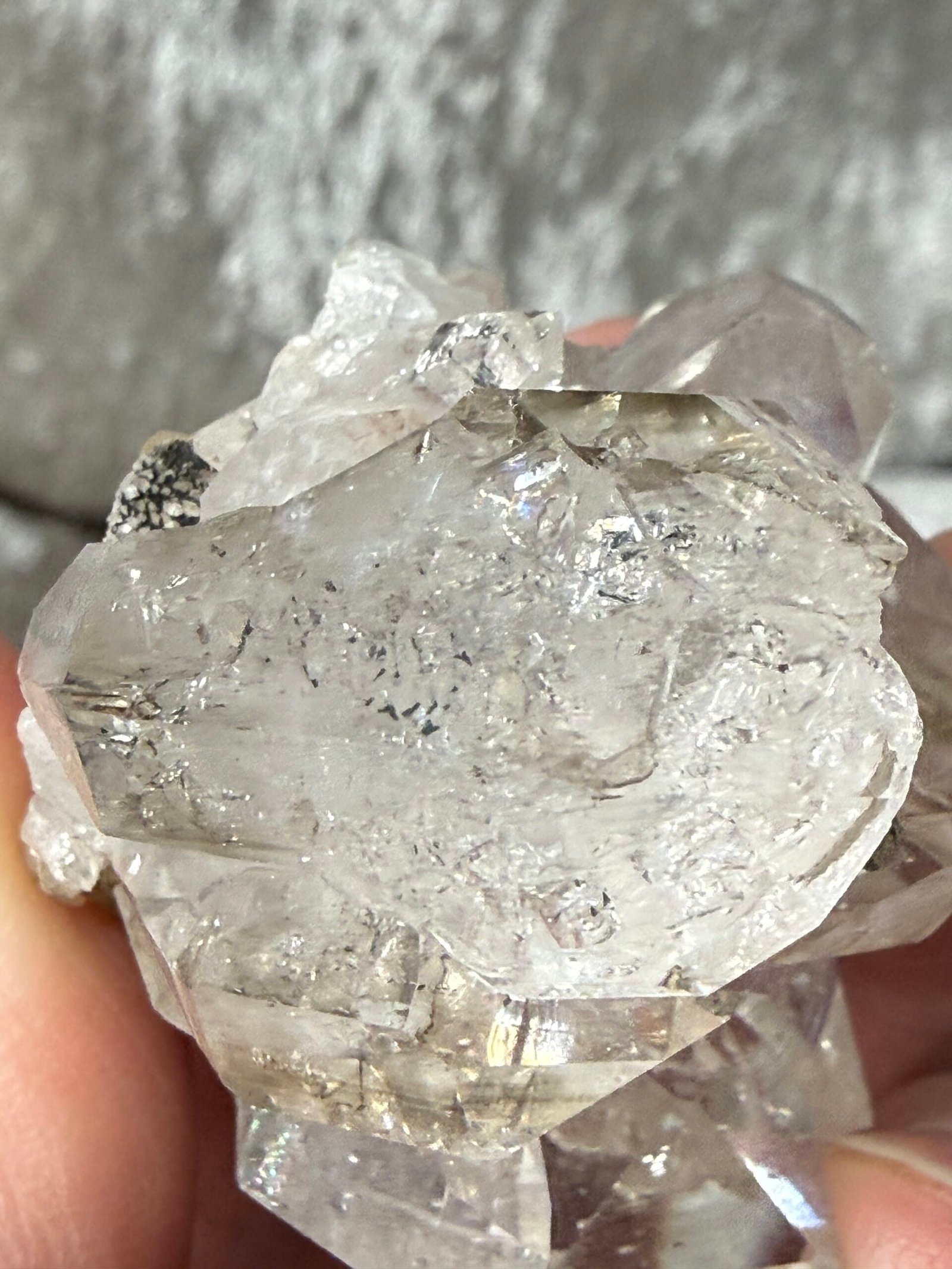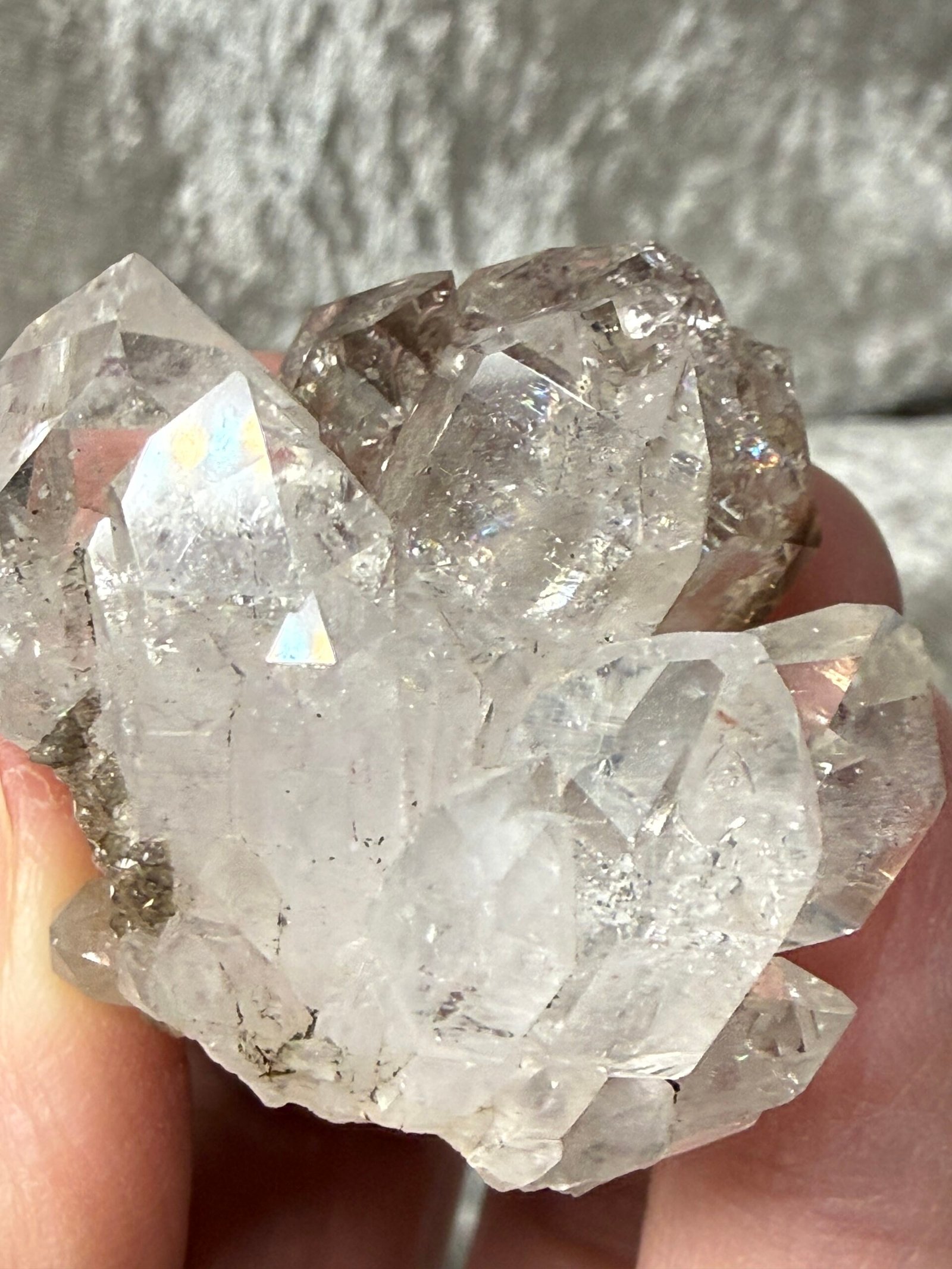 This Brandberg clear quartz has stunning clarity, double terminated points and a beautiful Elestial stacked formation.