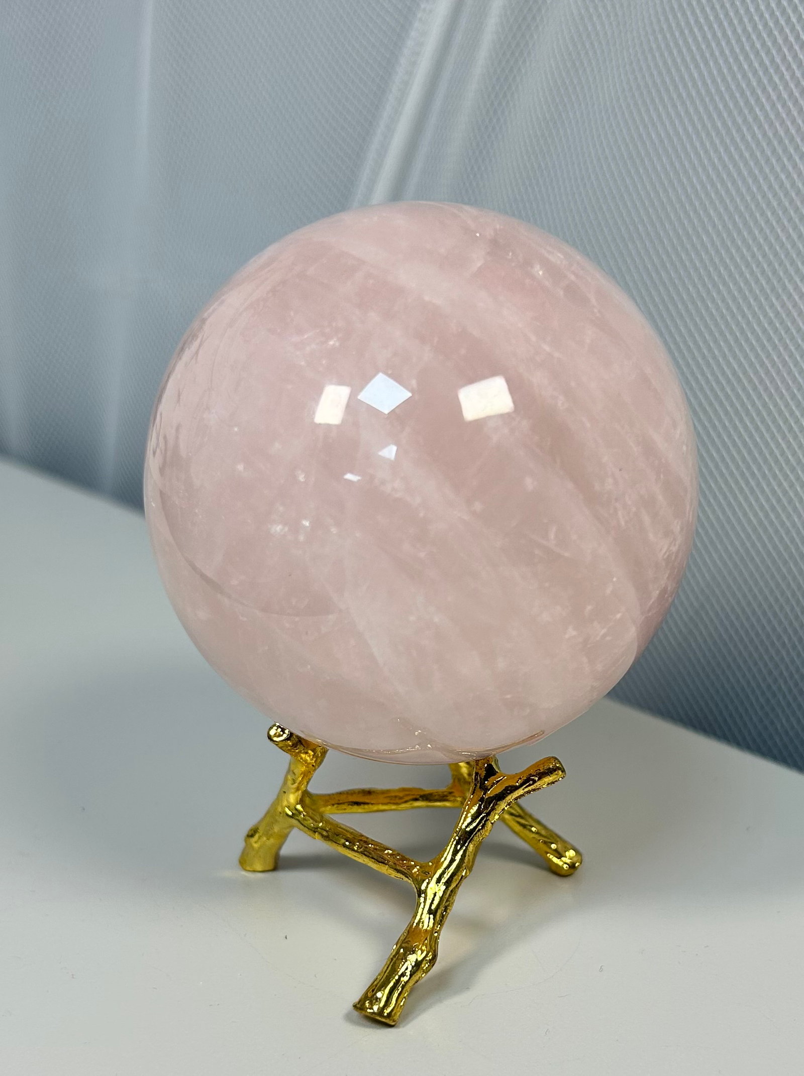 Sphere pictured is a larger rose Quartz but for stability, smaller/ medium spheres are recommended only