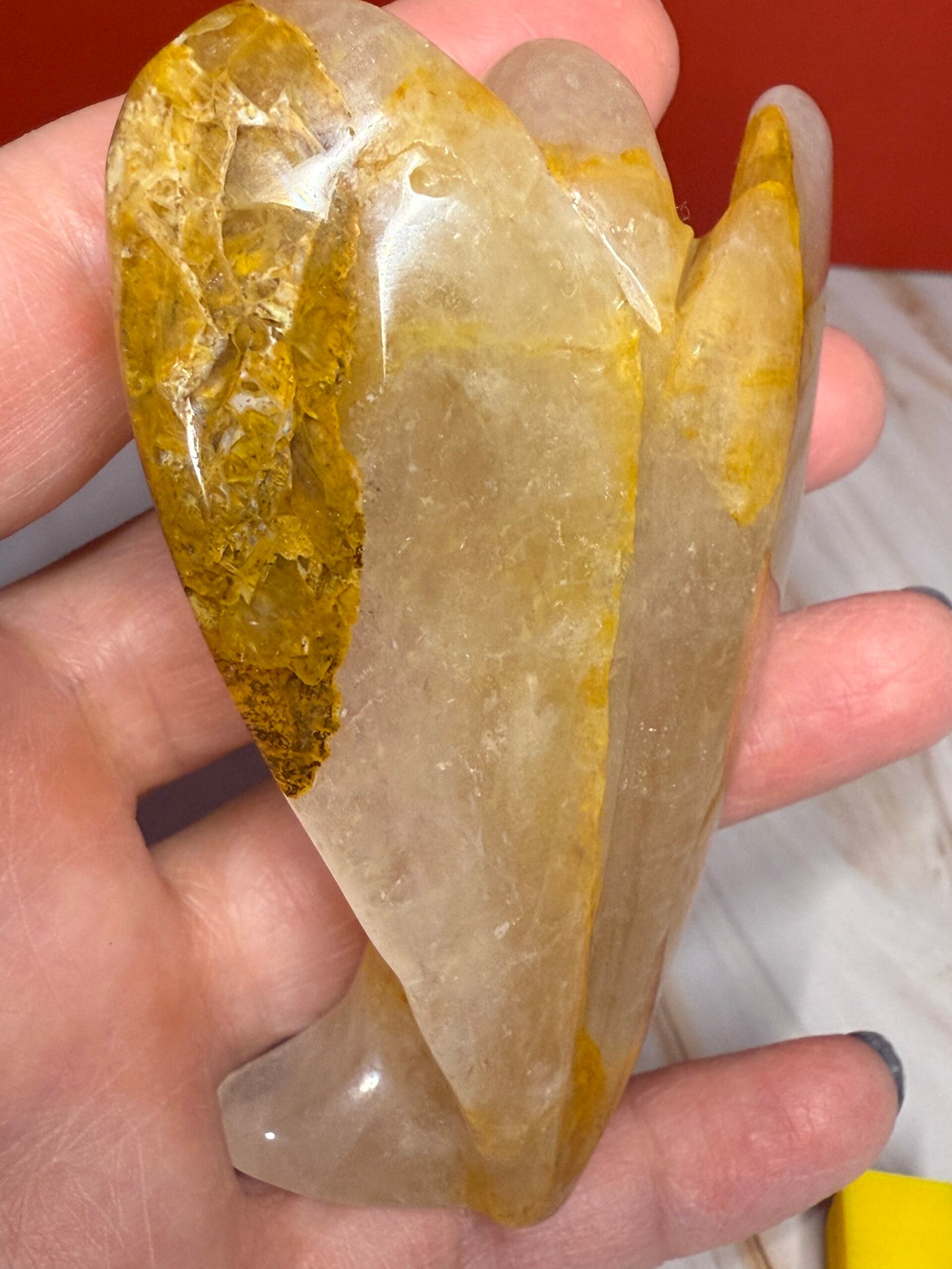 Golden Healer is one of the most powerful stones of the Golden Ray. It clears energy blockages and imbalances within the body. It aligns all the chakras and balances yin and yang energies. It raises one’s energy vibration, which can amplify the power of one’s intentions. Working with Golden Healer is believed to facilitate spiritual communication over a long