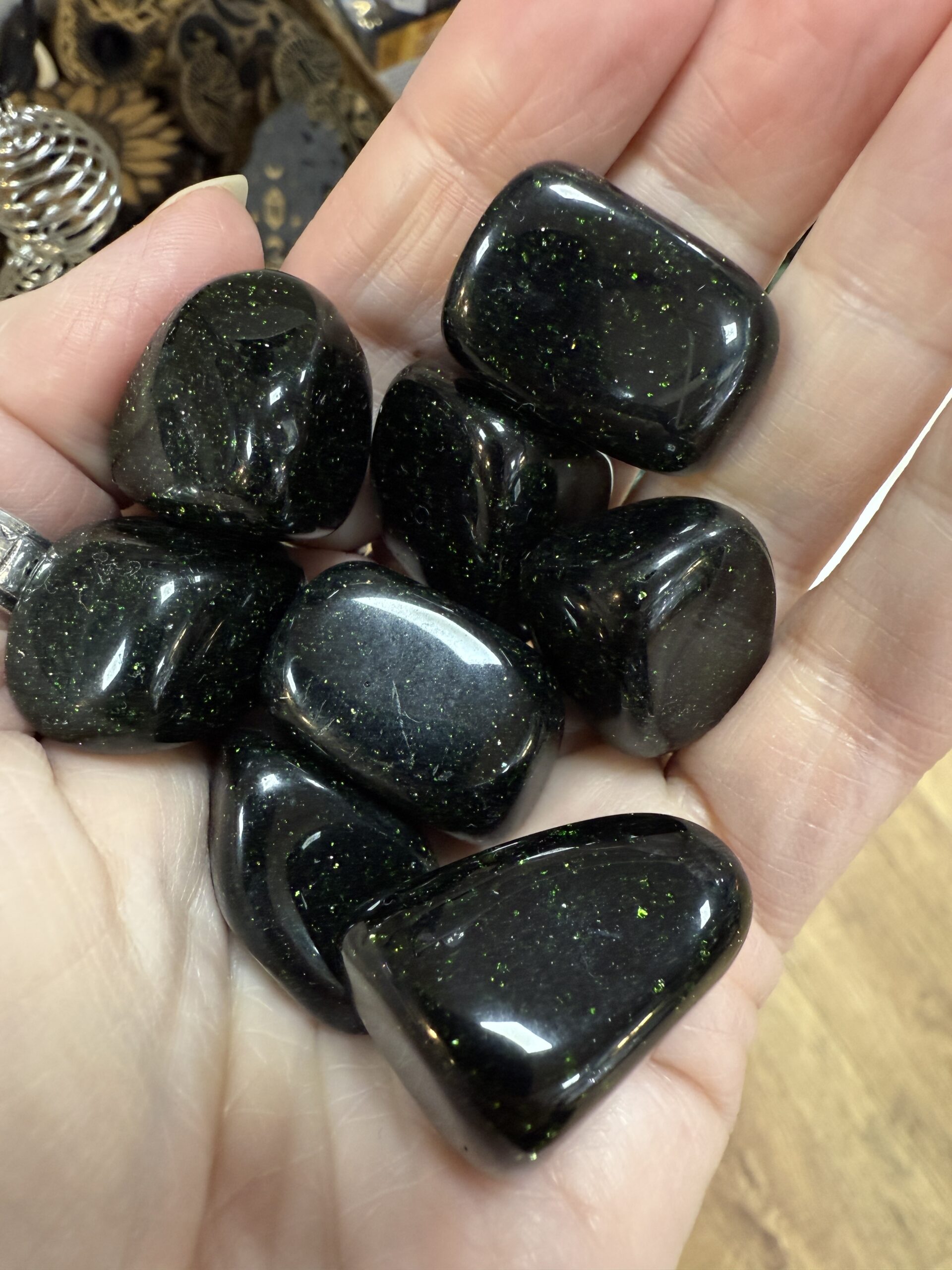 Green Goldstone Tumble Stone quantity